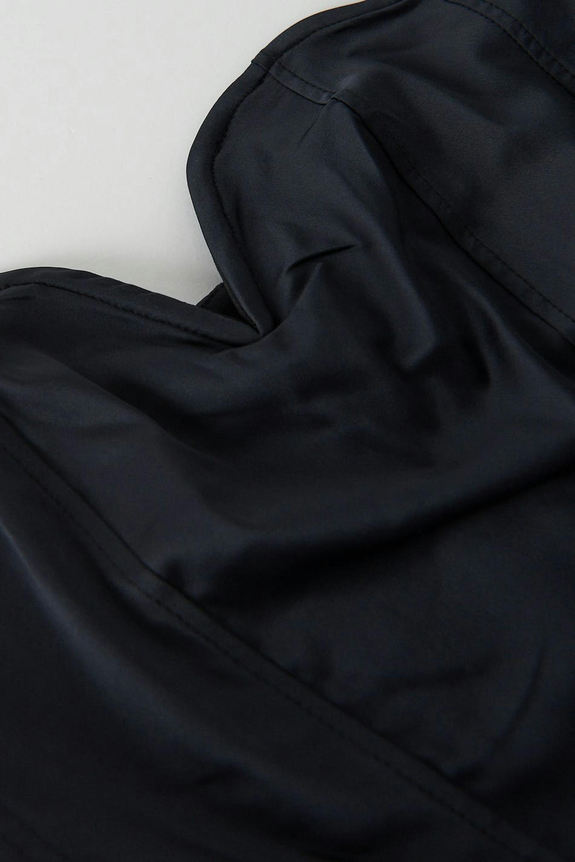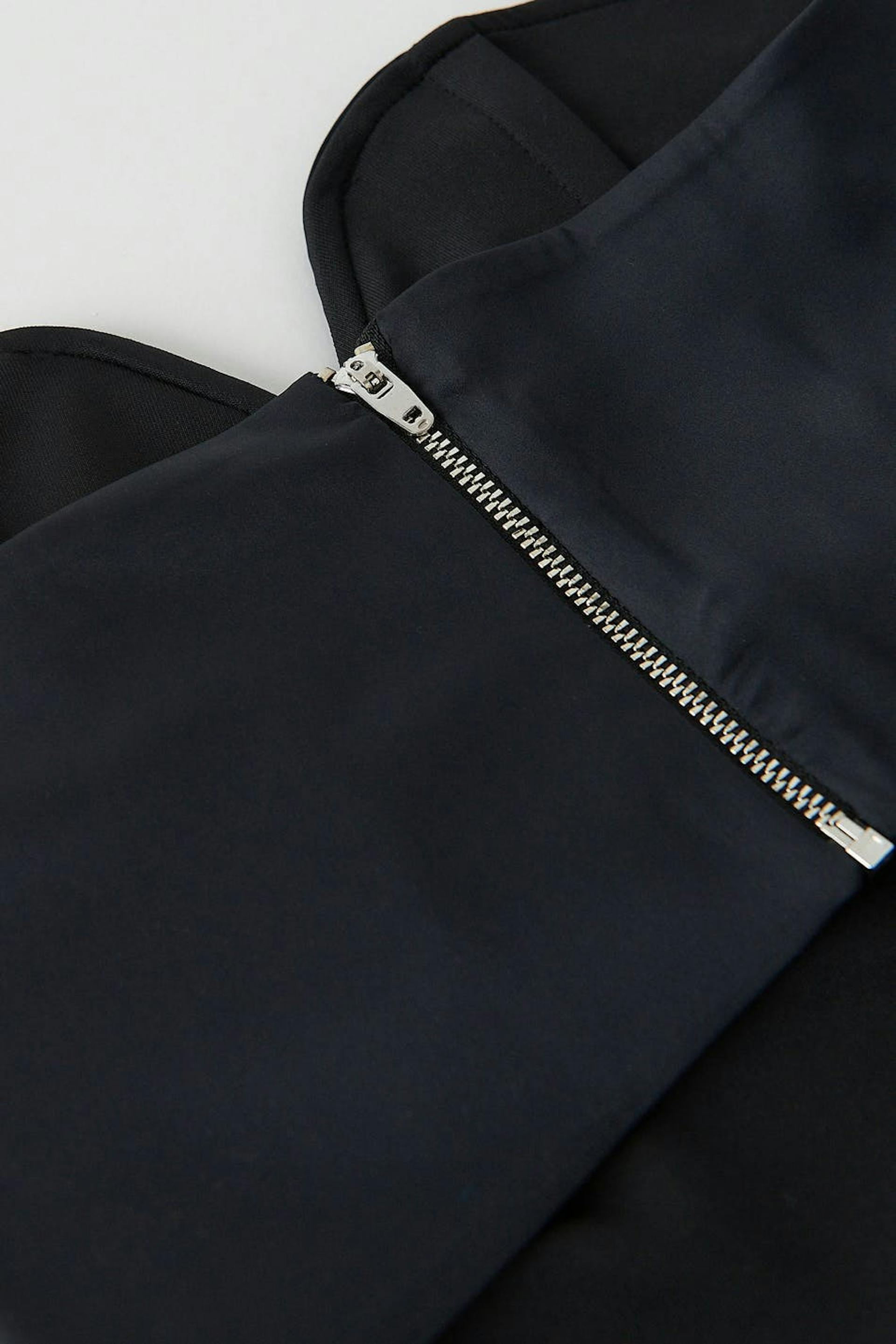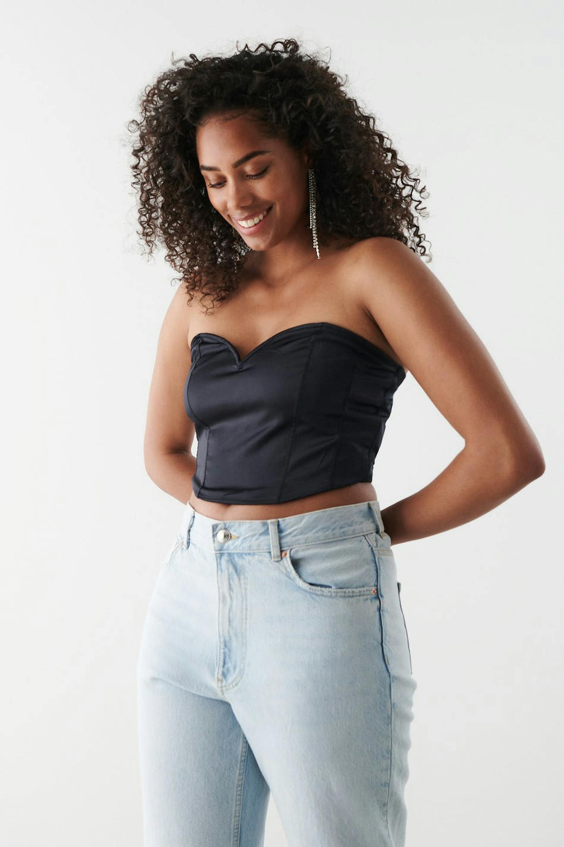 Korsett-topp med dyp utringning. Toppen er perfekt for festen og svart og har et stretchy materiale. Den har en avkortet lengde og glidelåslukking i ryggen.