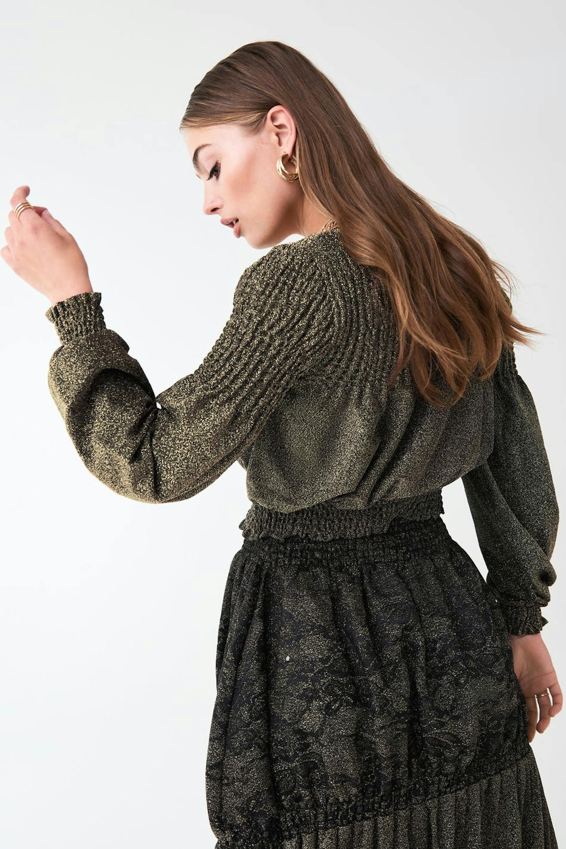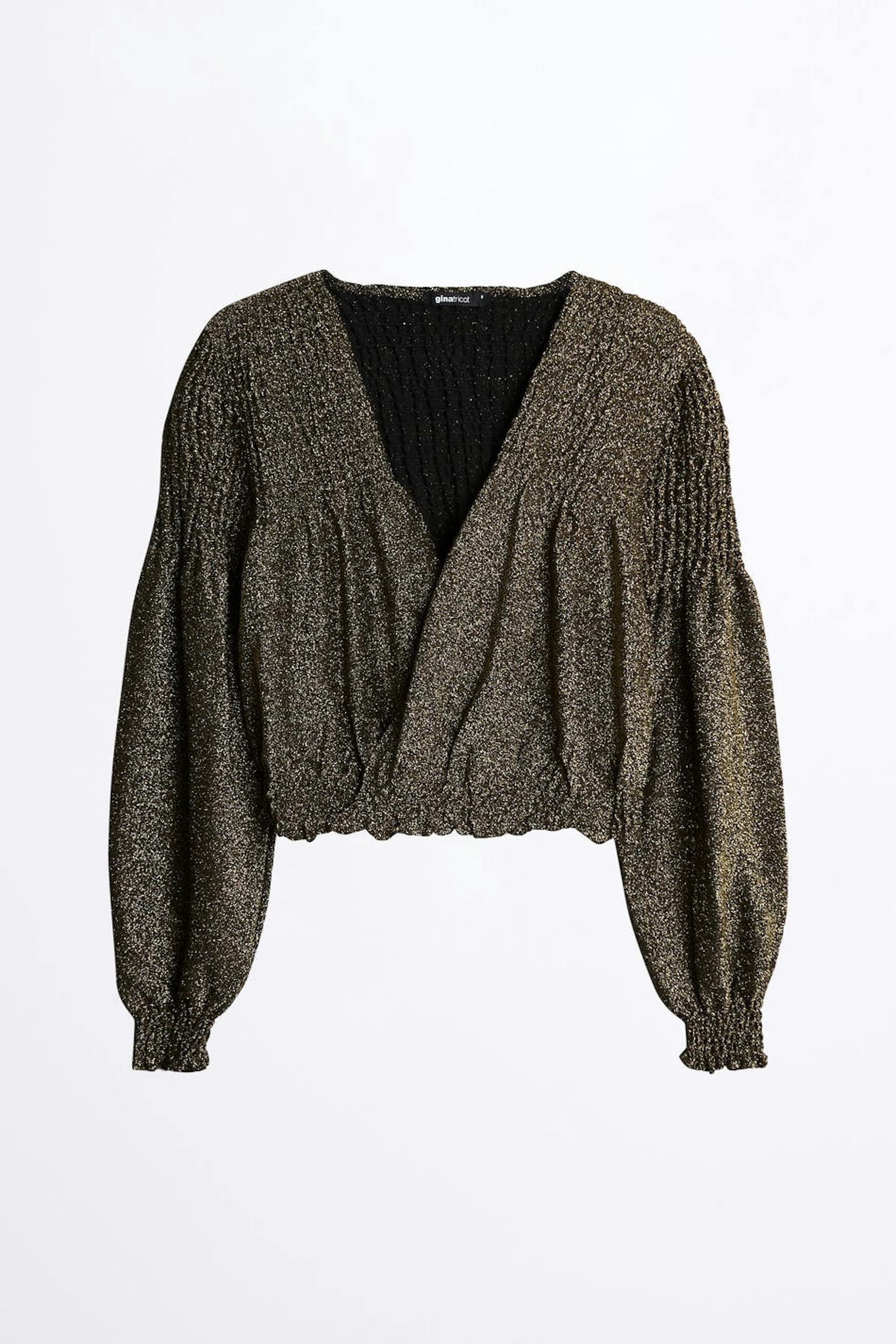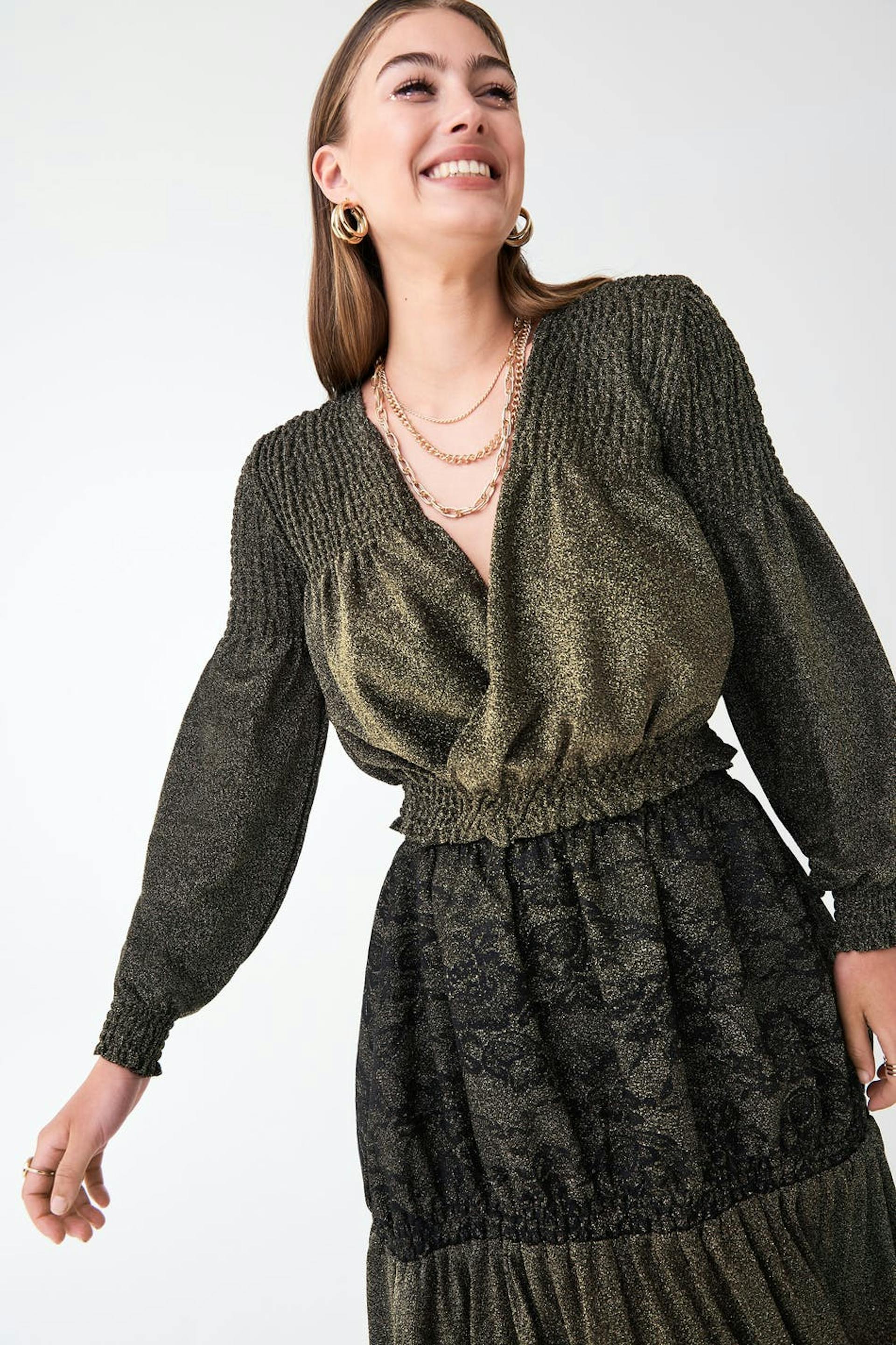 Glitrende bluse med en vanlig passform. Blusen er grønn og har en overlappdetalj.
