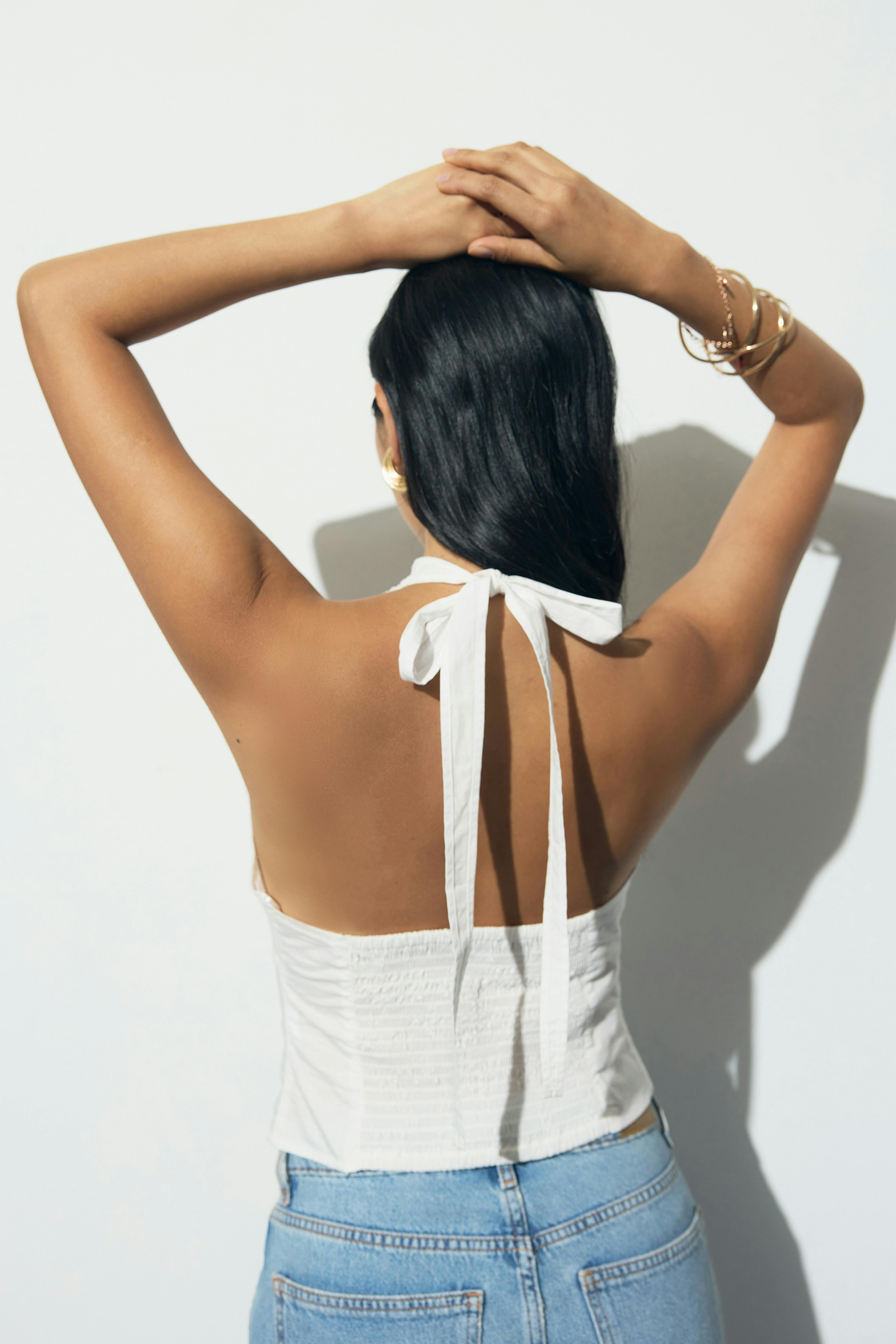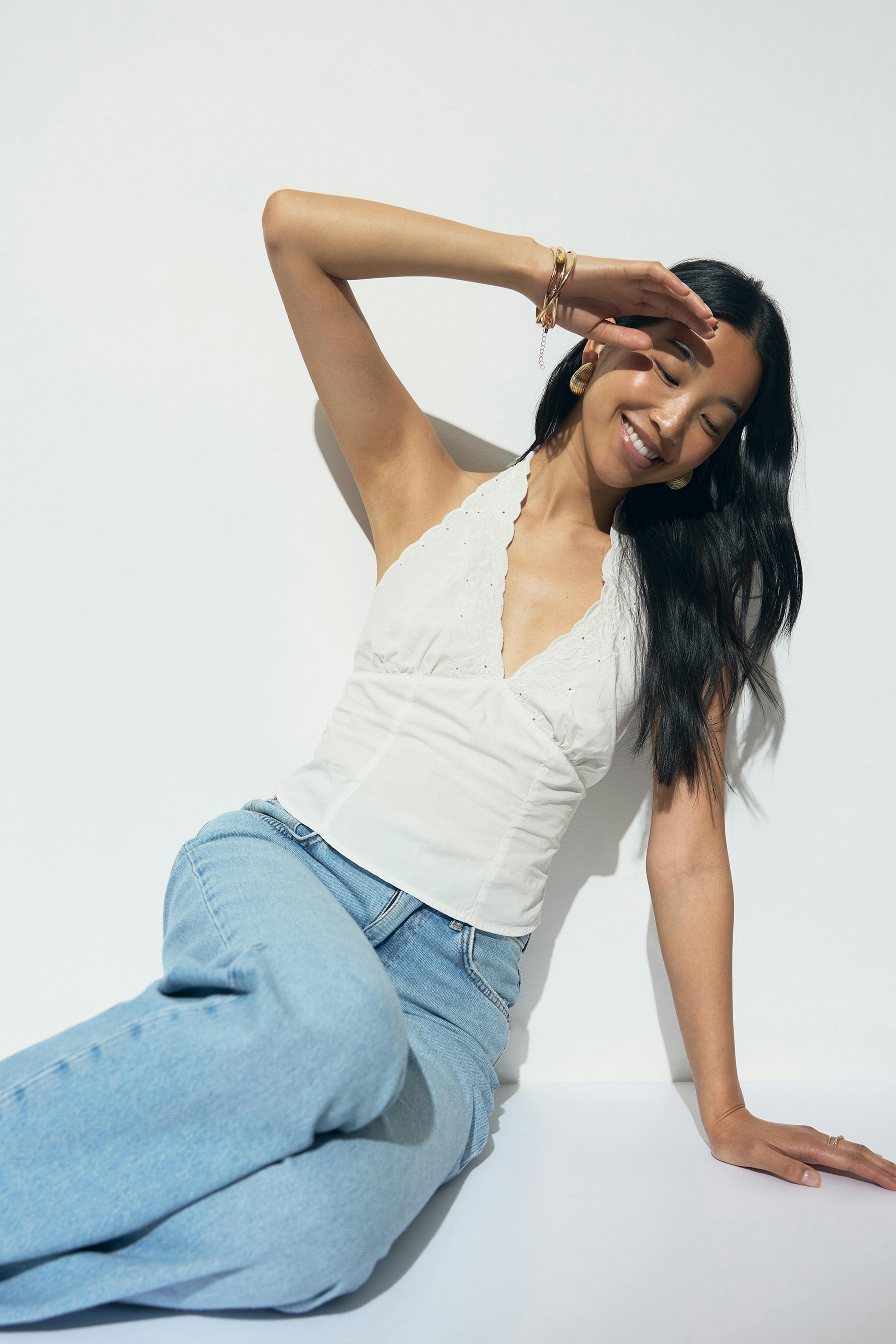 Embroidery halter neck top
