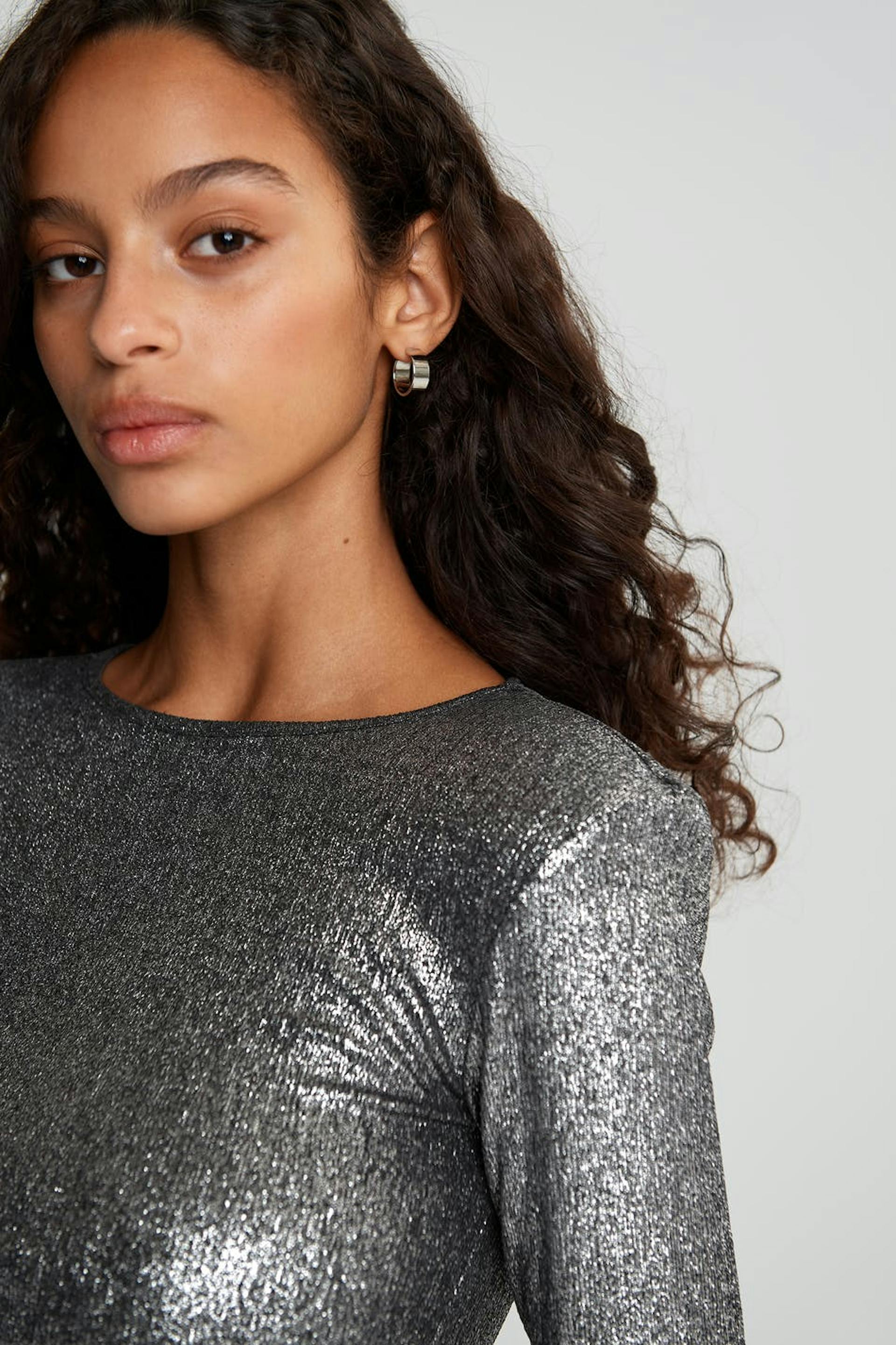Langermet topp med en tilpasset passform. Toppen er perfekt for festen og sølvfarget og har definerte skuldre.