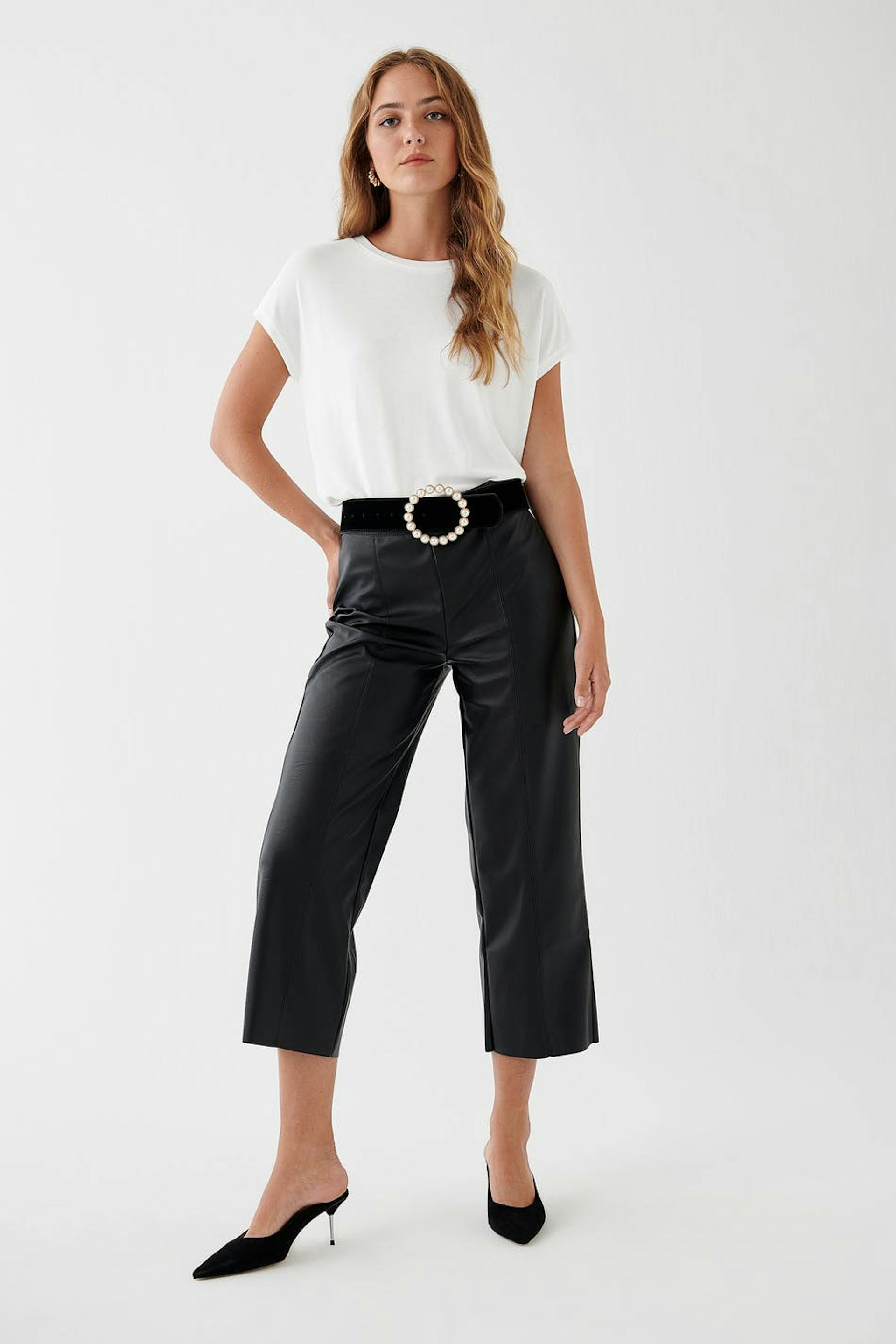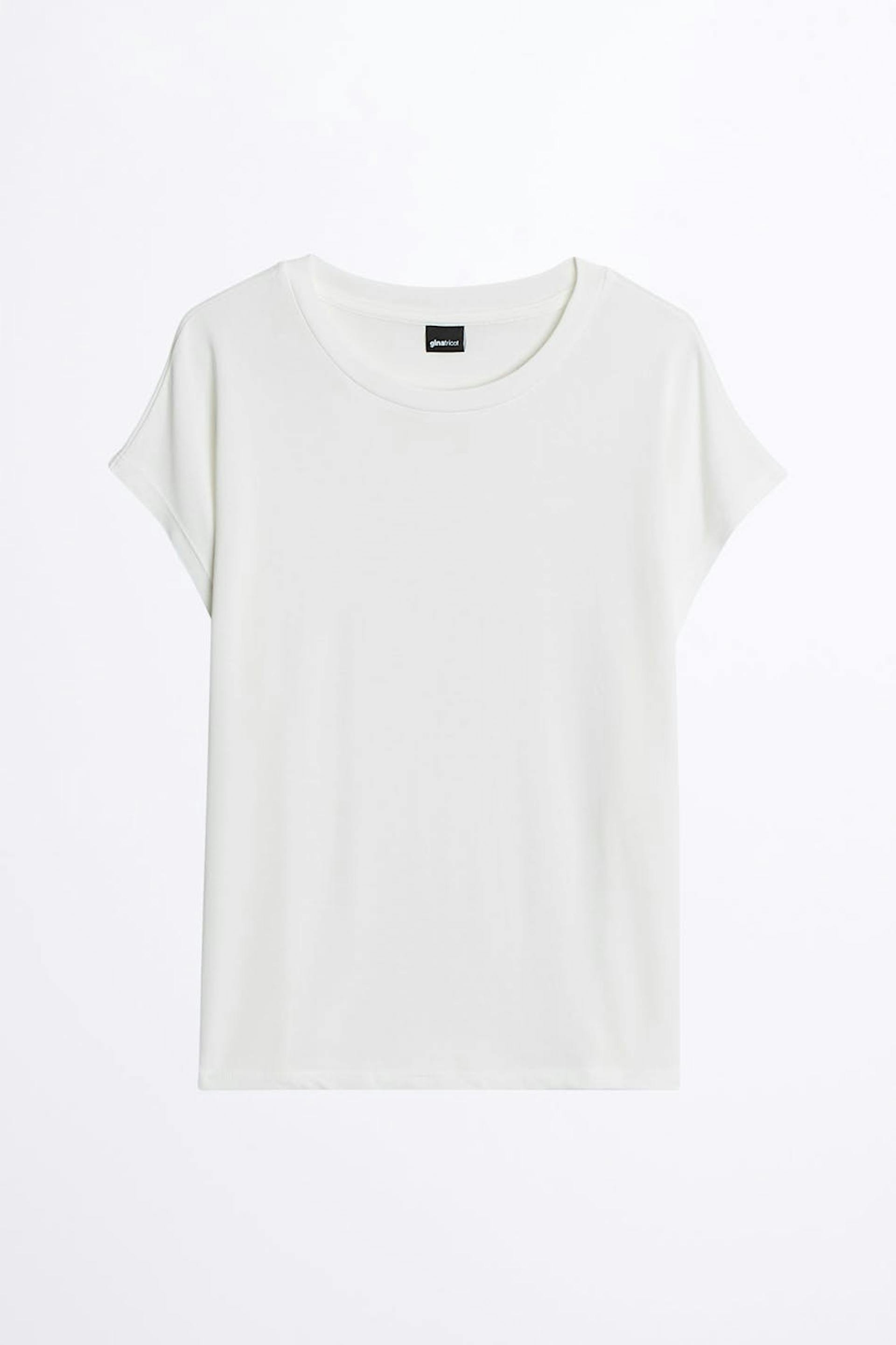 Topp med en vanlig passform. Toppen er hvit og har et t-skjorteerme.