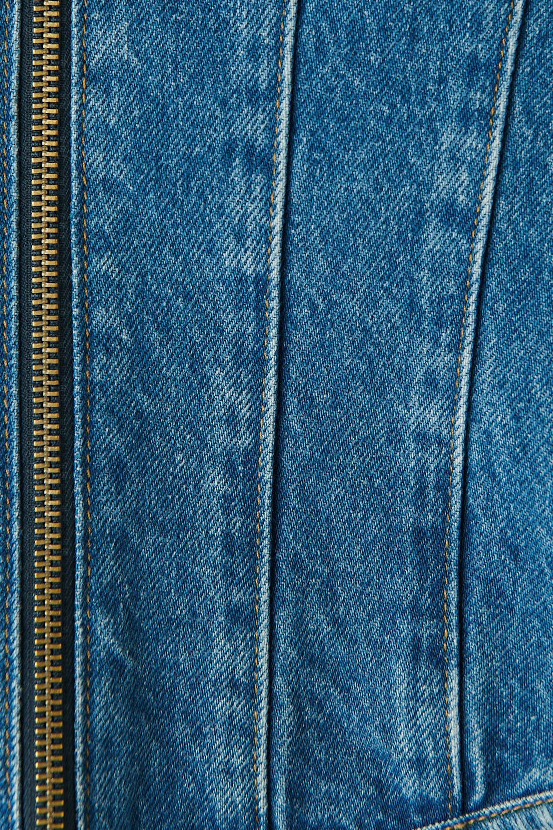 Denimkorsett med glidelås foran. Korsettet er blå og har en tilpasset passform i non-stretch denim.