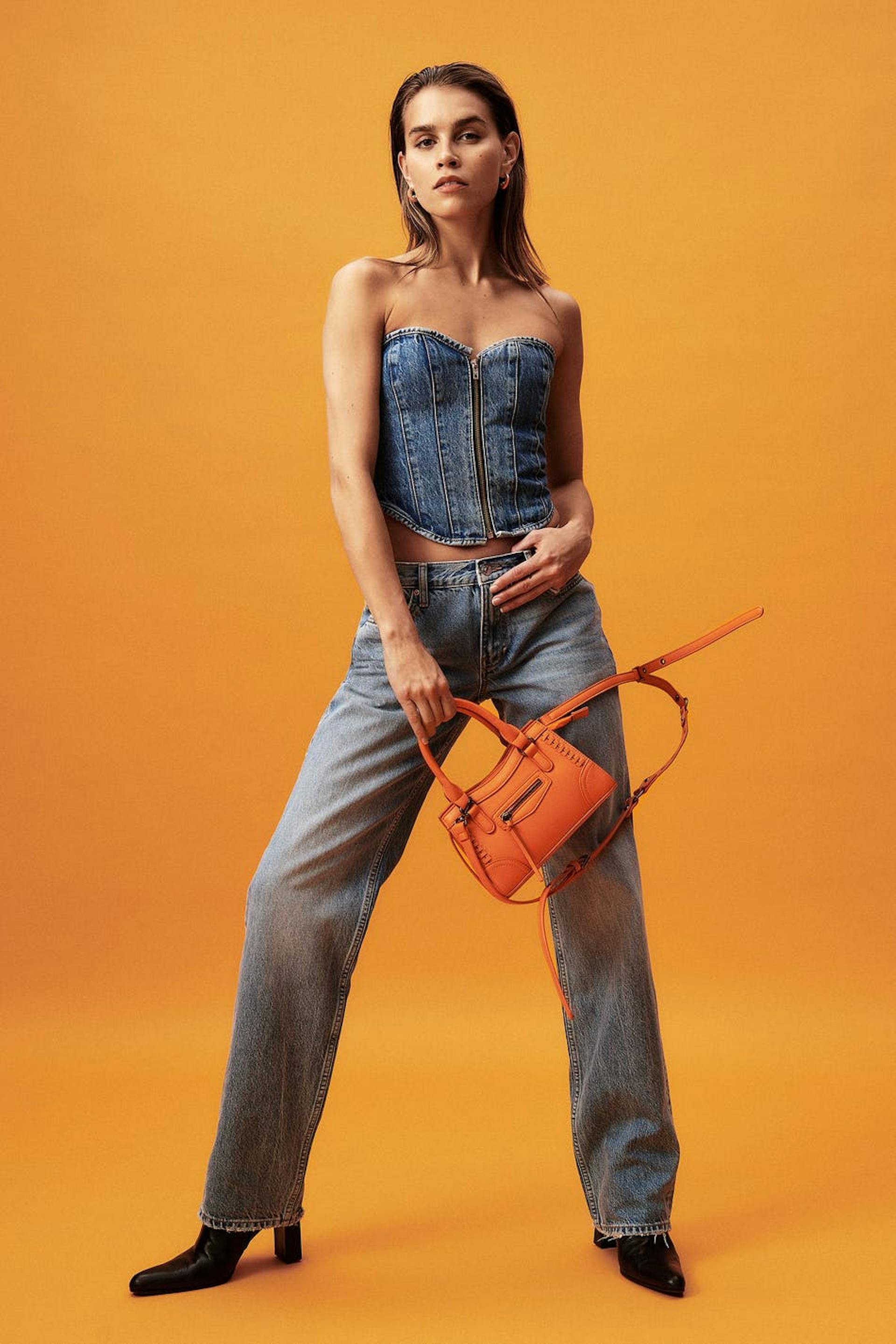 Denim zip corset