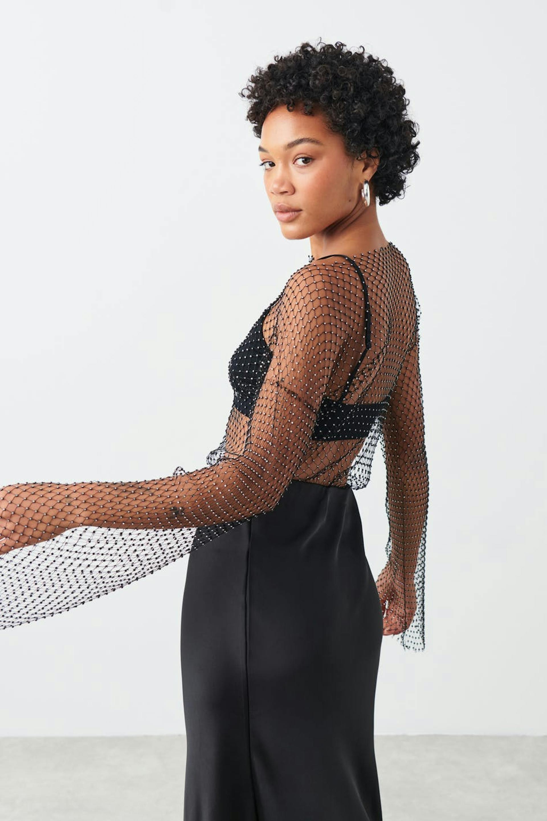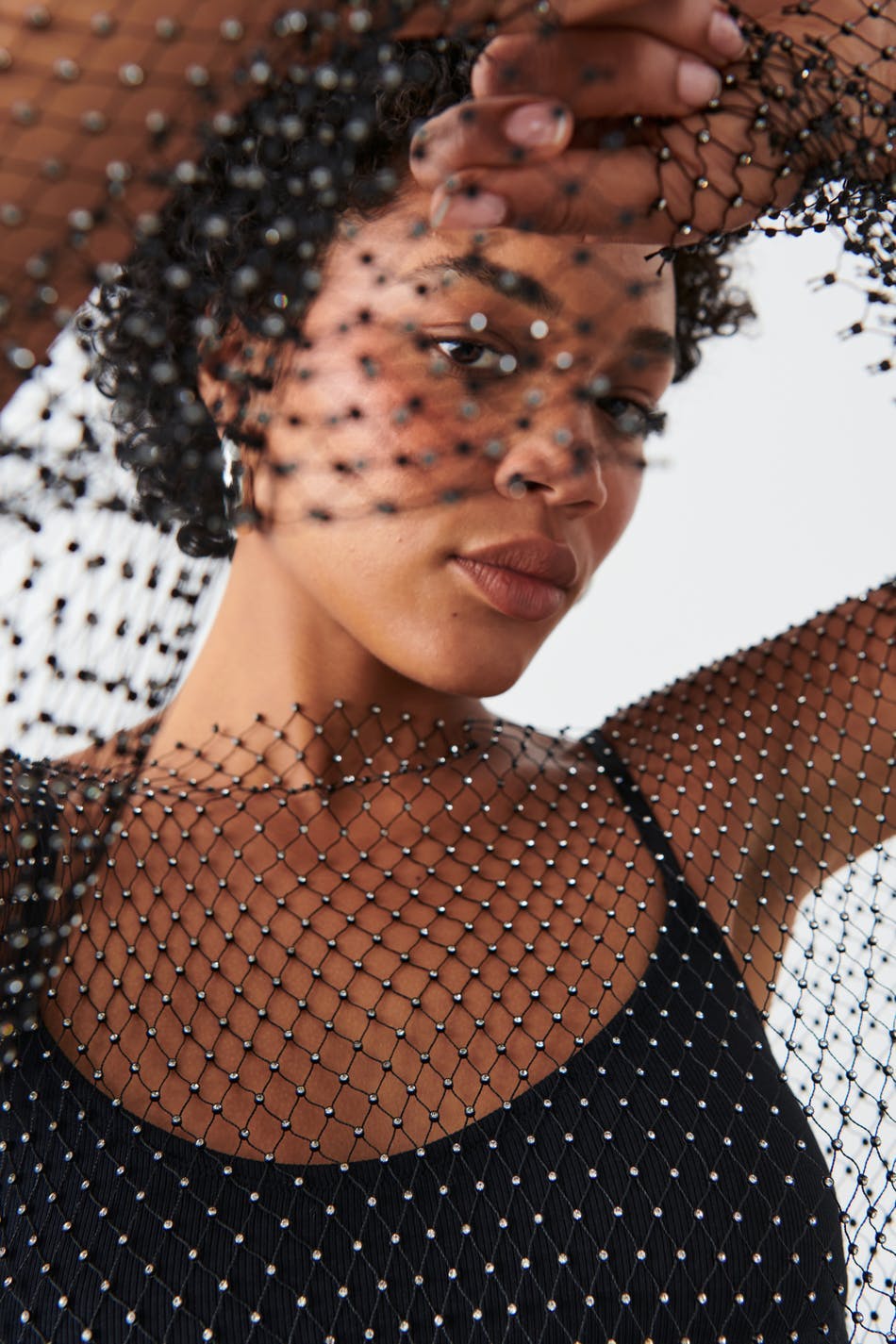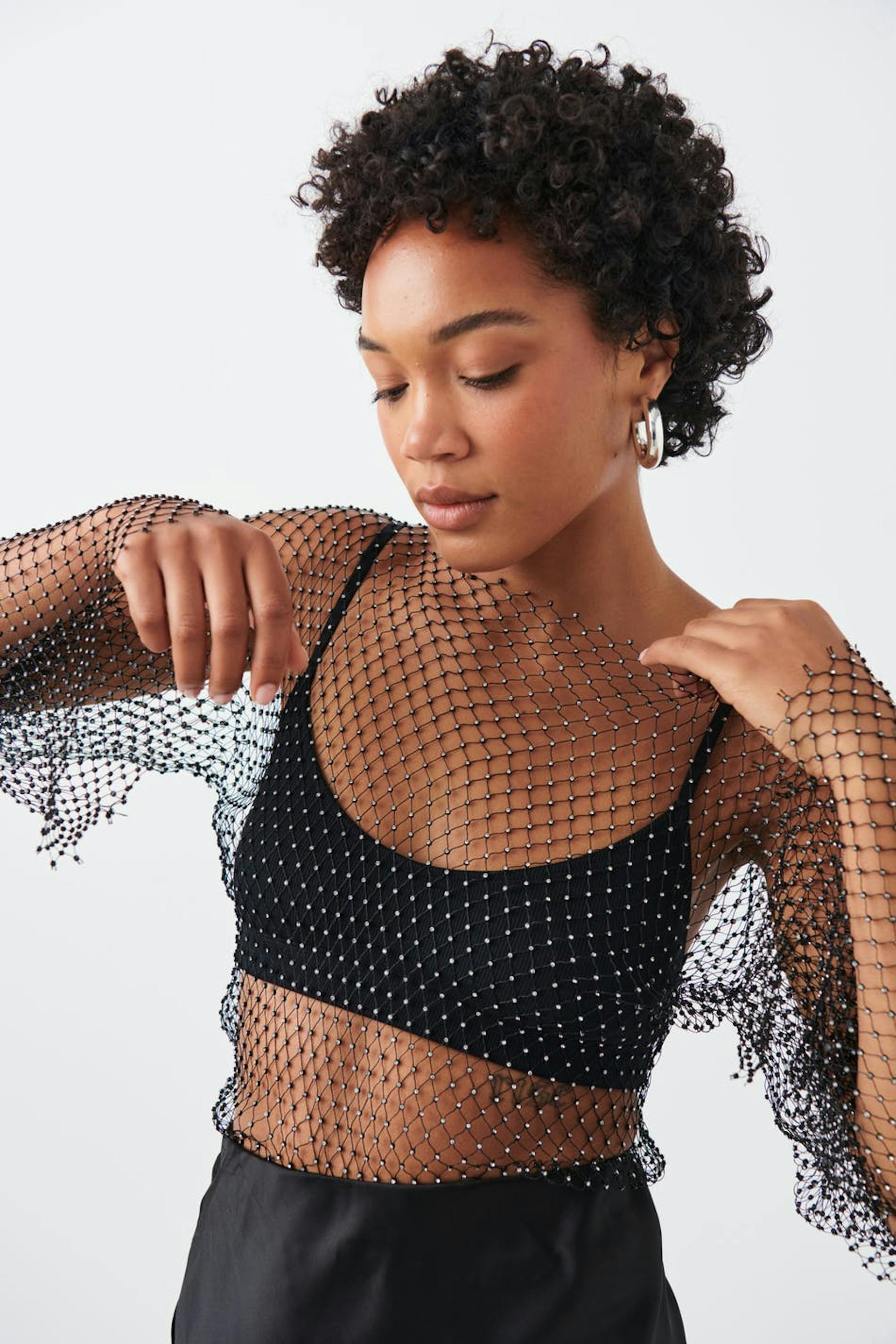 Fishnet rhinestone top