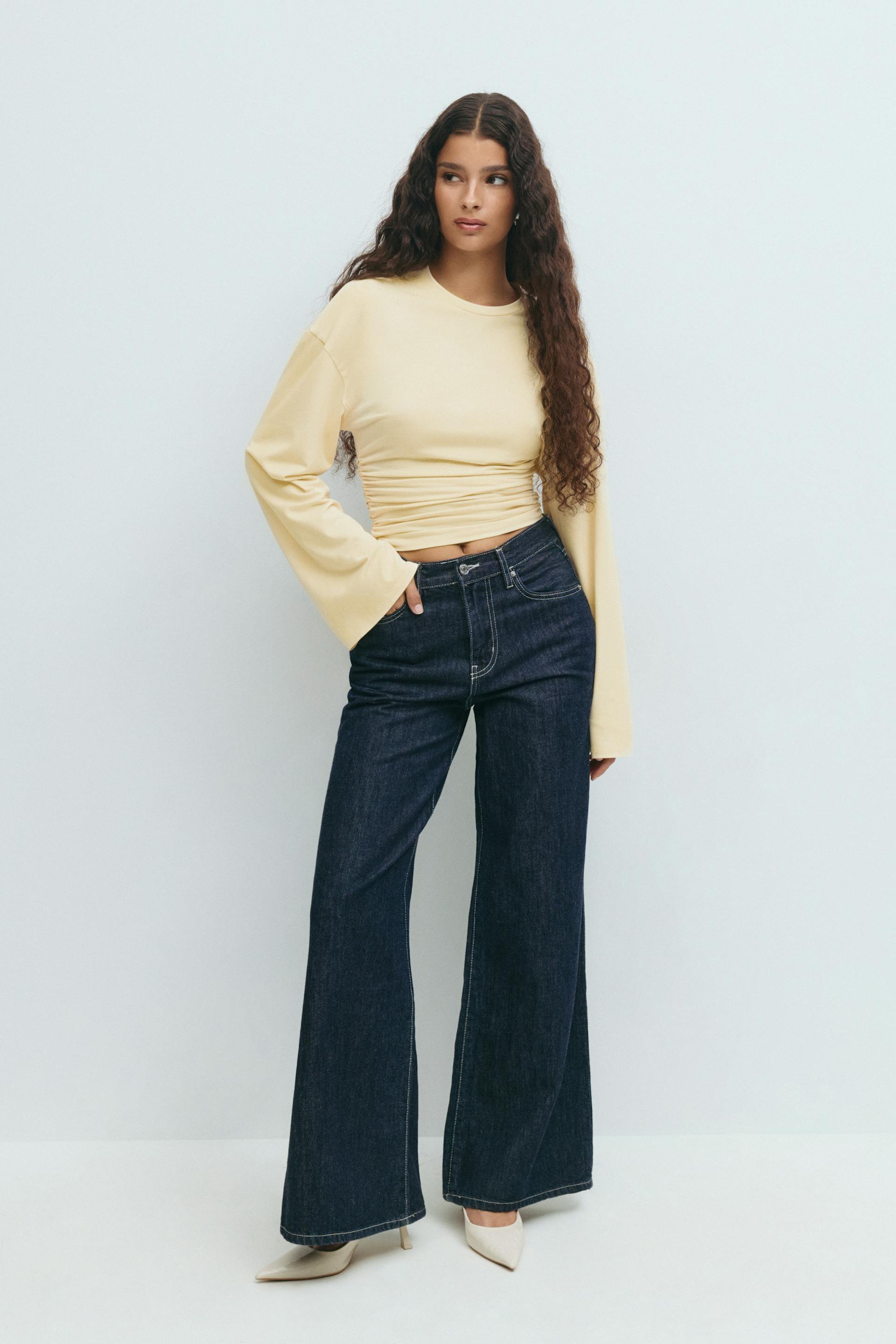 Soft touch wide sleeve top