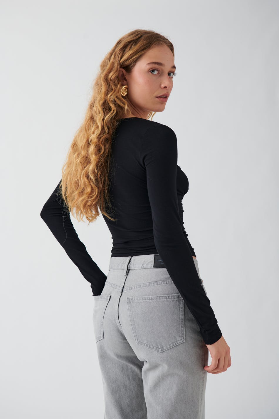 Modellen bruker størrelse S og er 179 cm høy