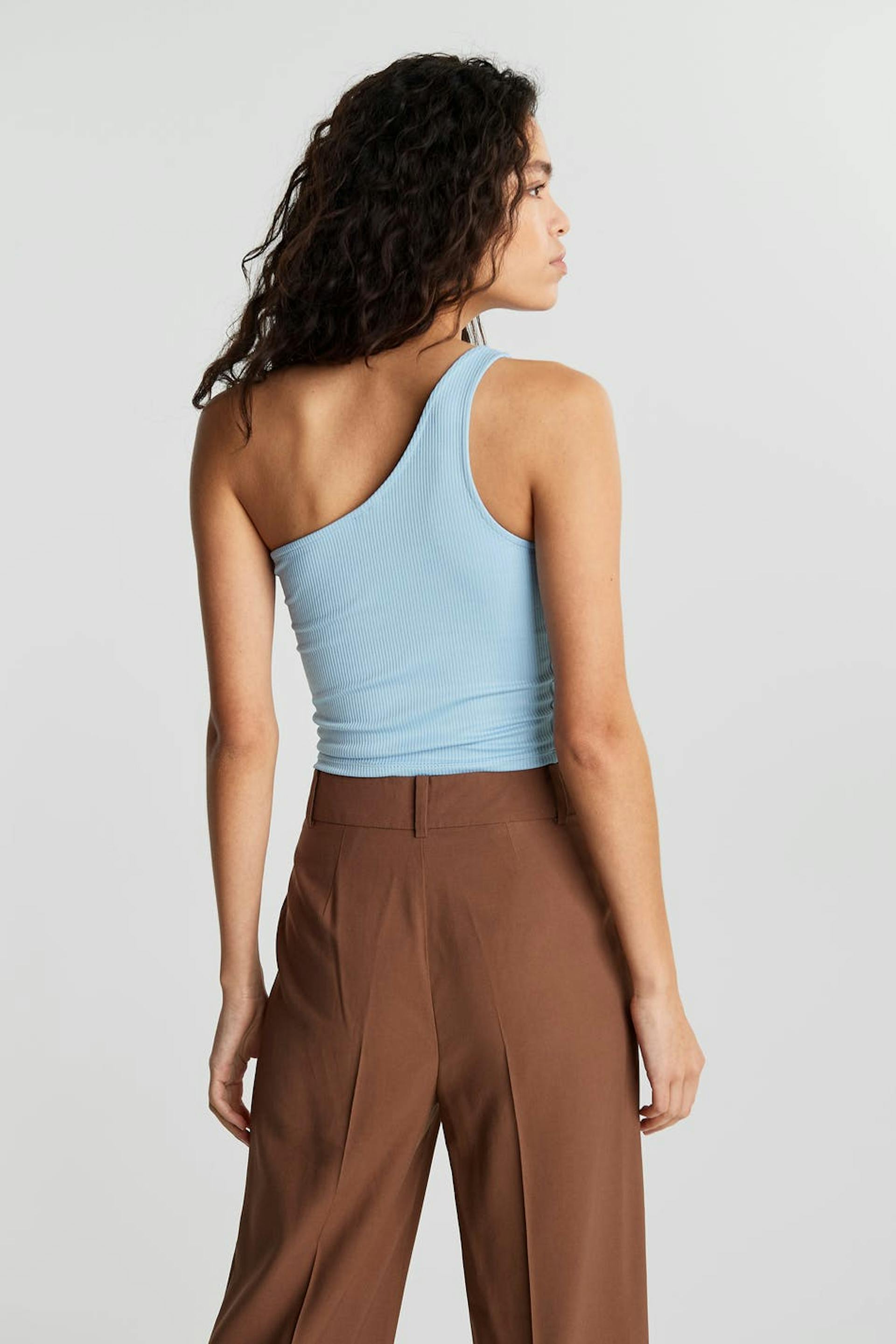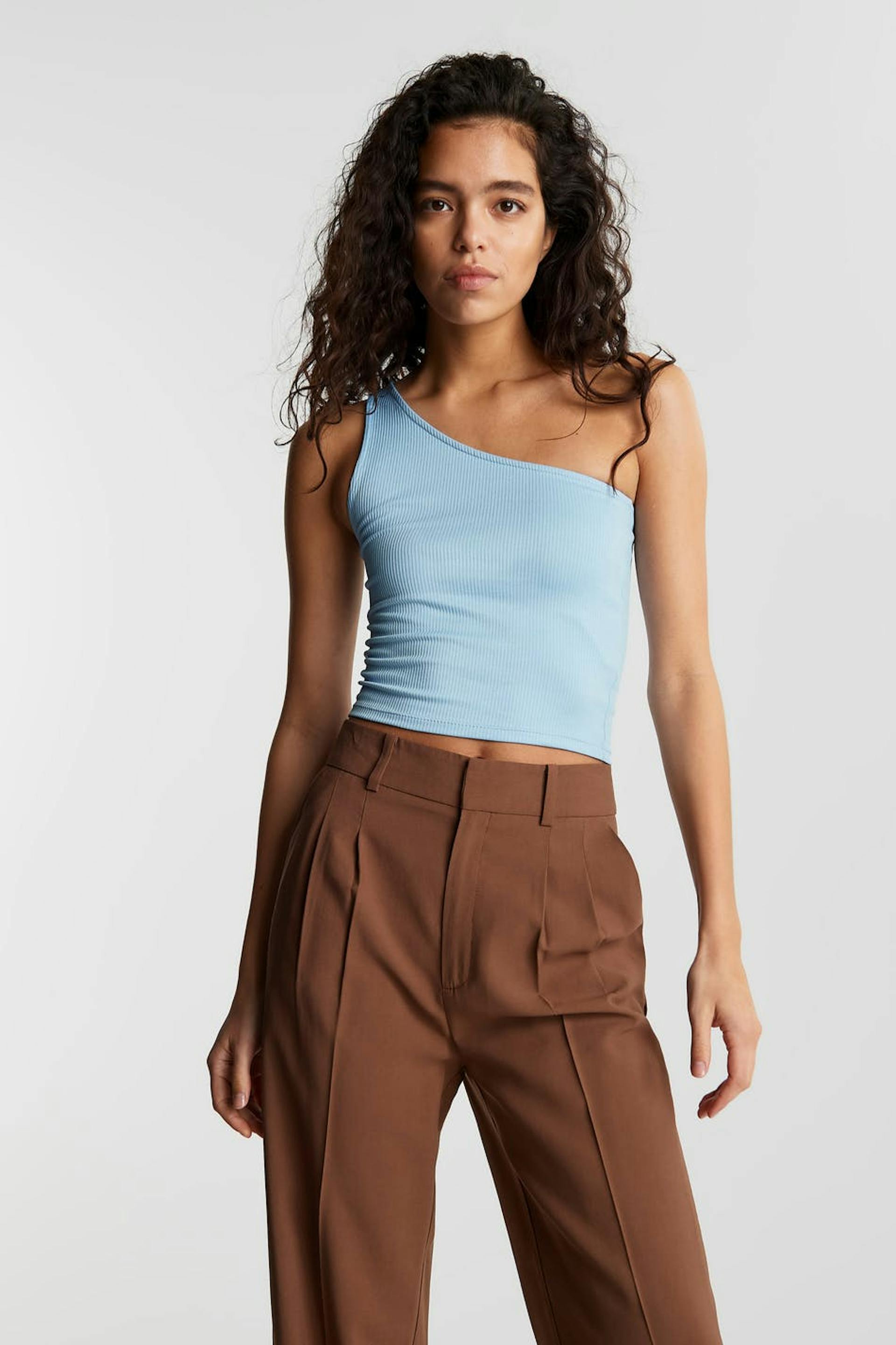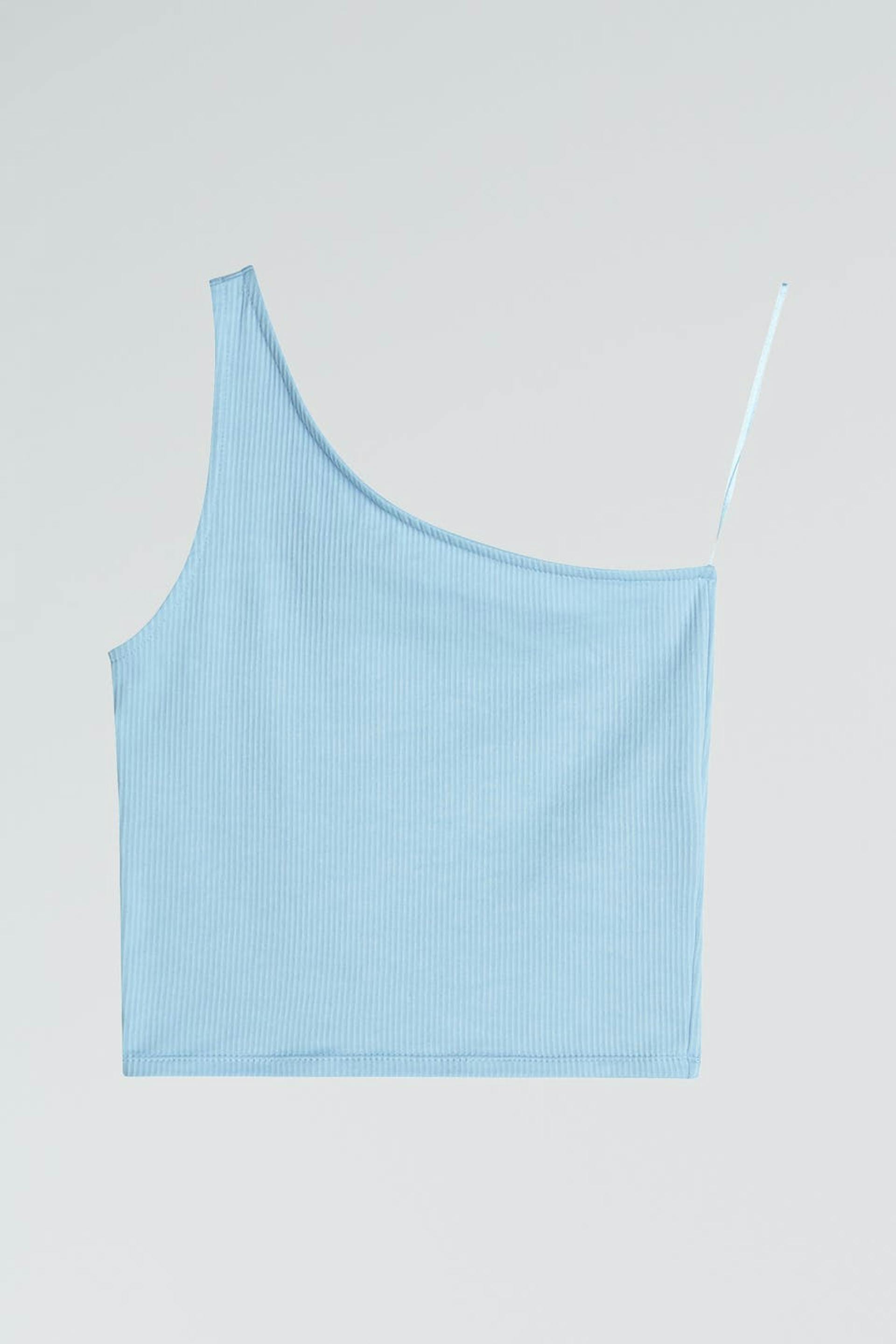 Ribbestrikket one shoulder-topp med en tilpasset passform. Toppen er blå og har en en-skulder-detalj. Den er laget av jersey.