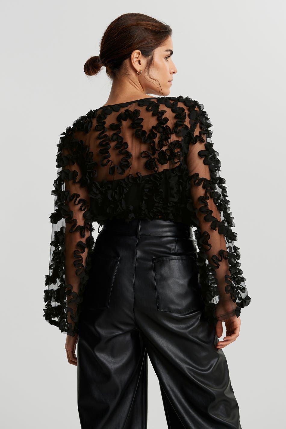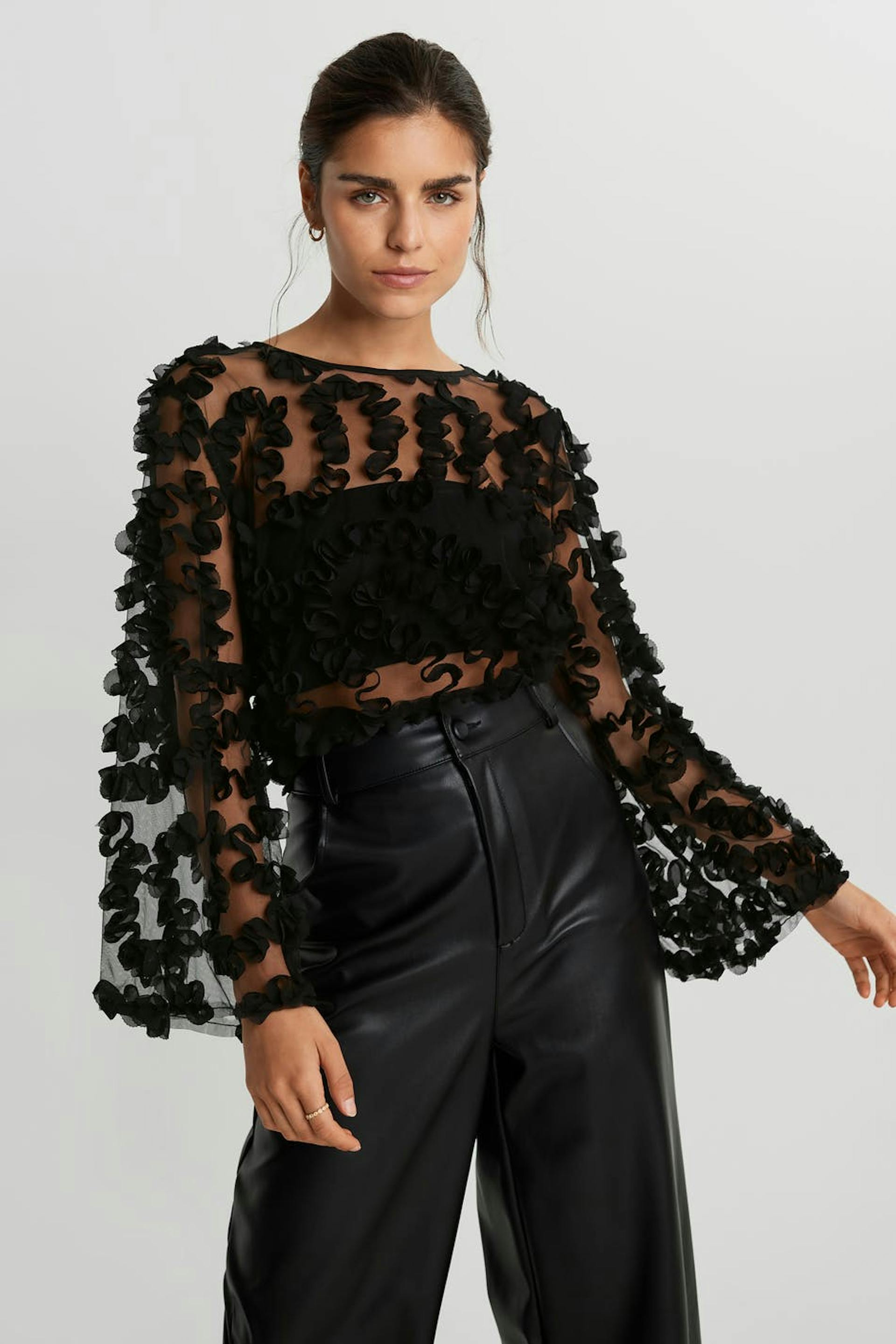Langermet topp med mesh-detaljer overalt. Toppen er perfekt for festen og svart og har romslige armer. Den er laget av mesh.