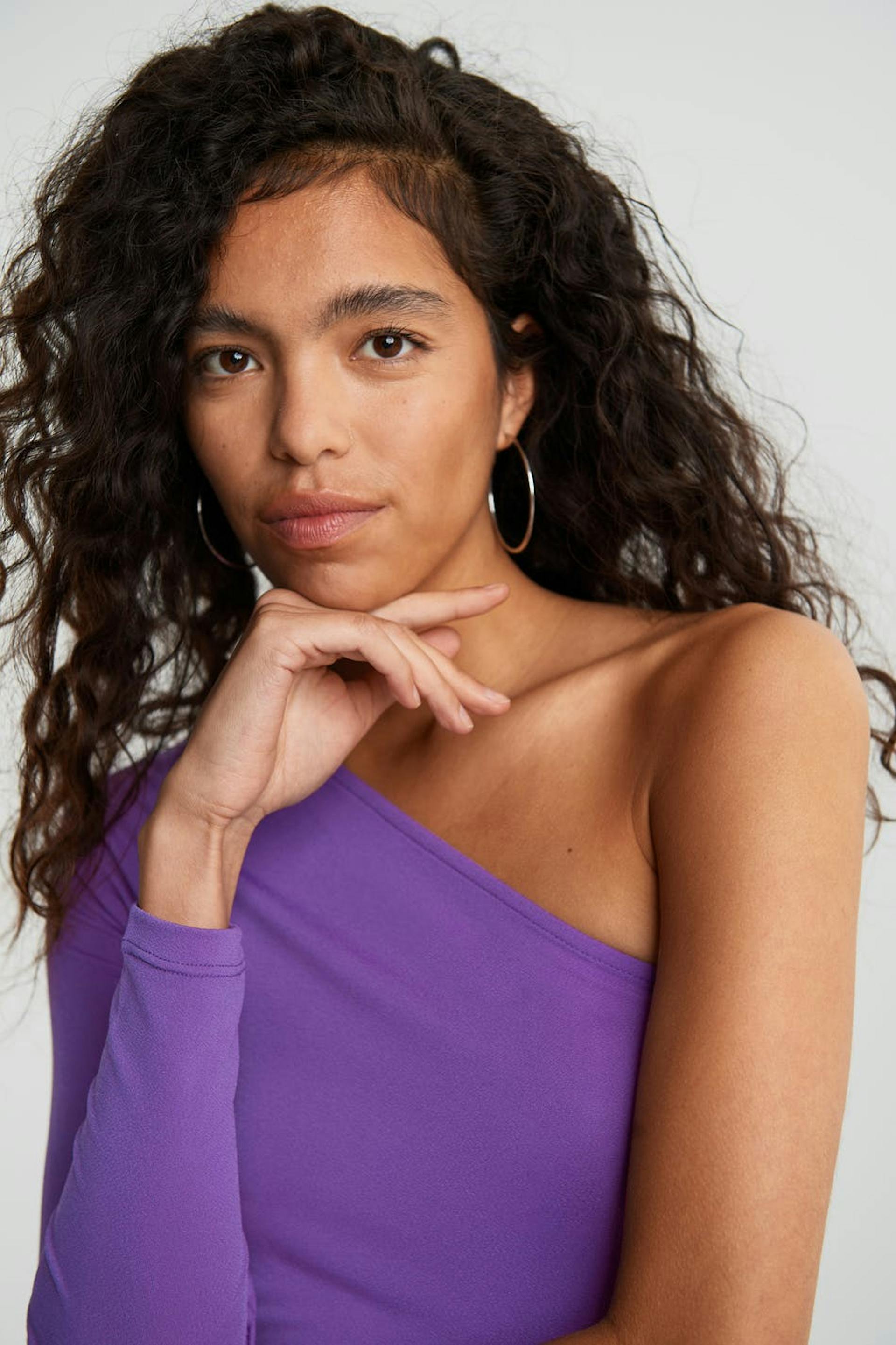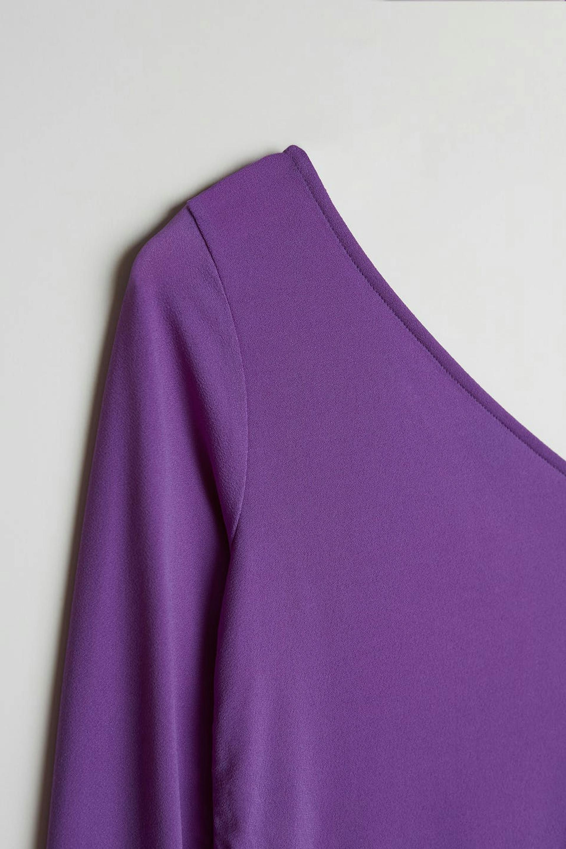 One shoulder-topp med en lang arm. Toppen er perfekt for festen og lilla.