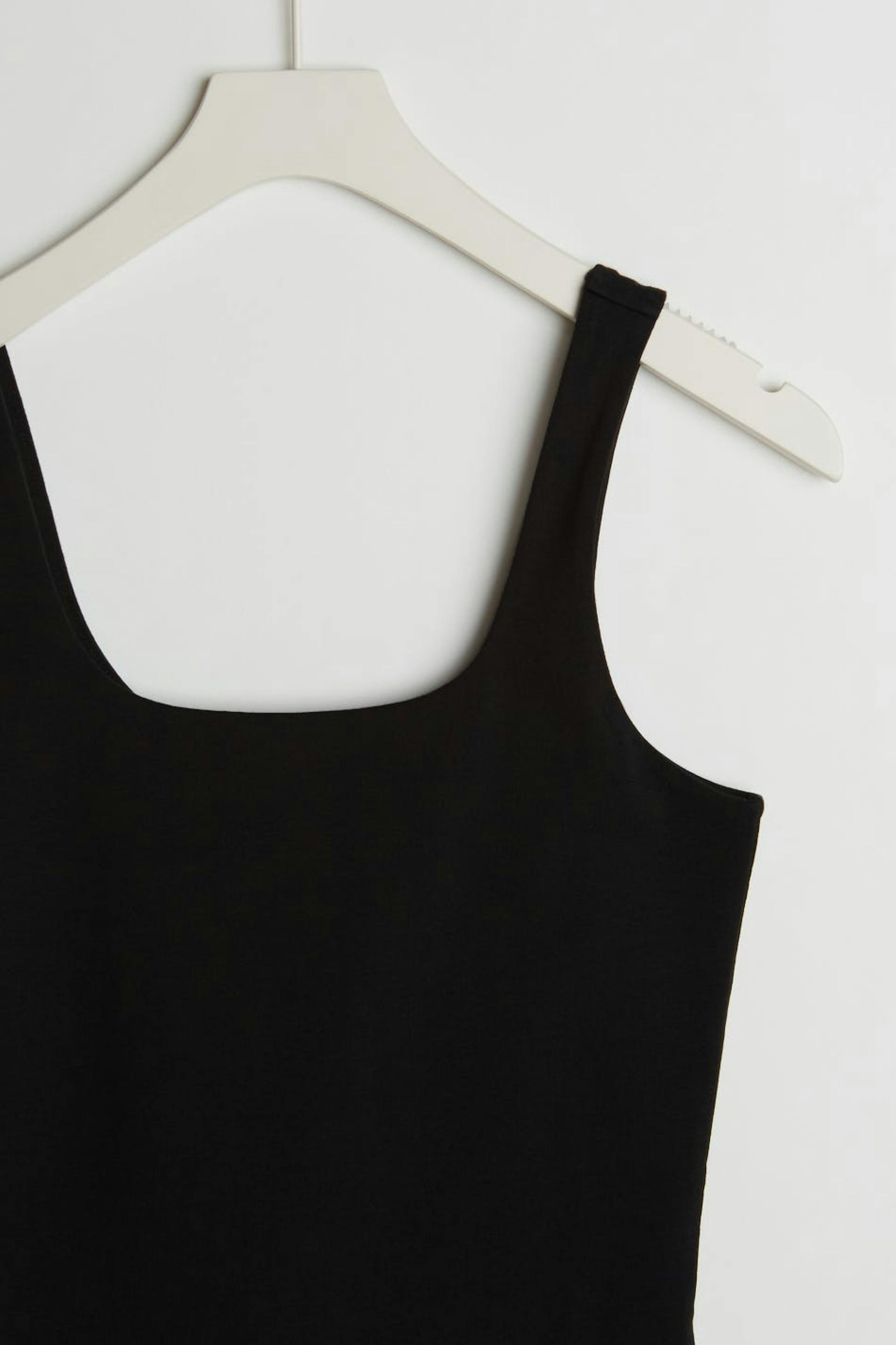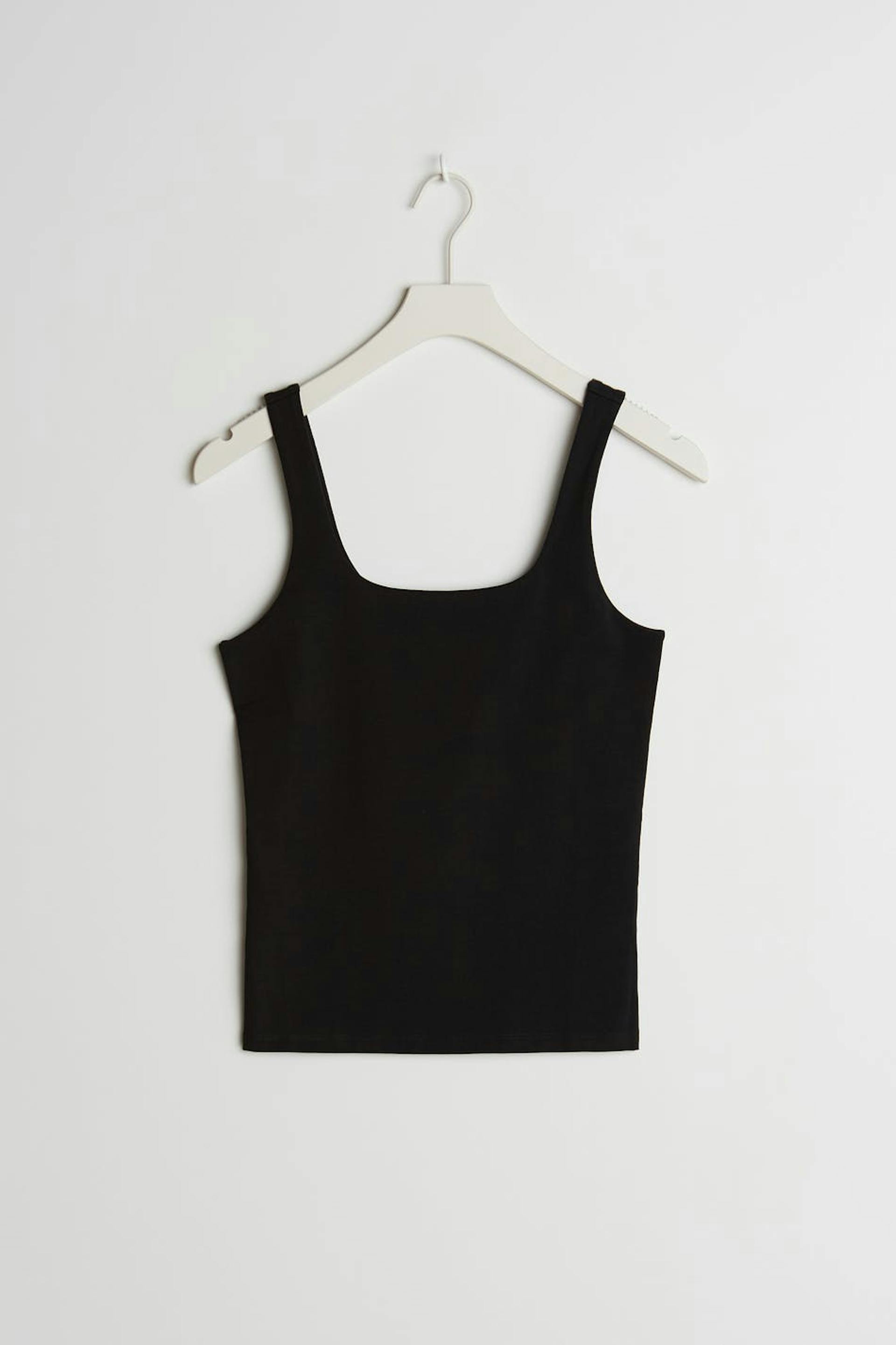Ermeløs toppen med en tilpasset passform. Ermeløs topp er svart.