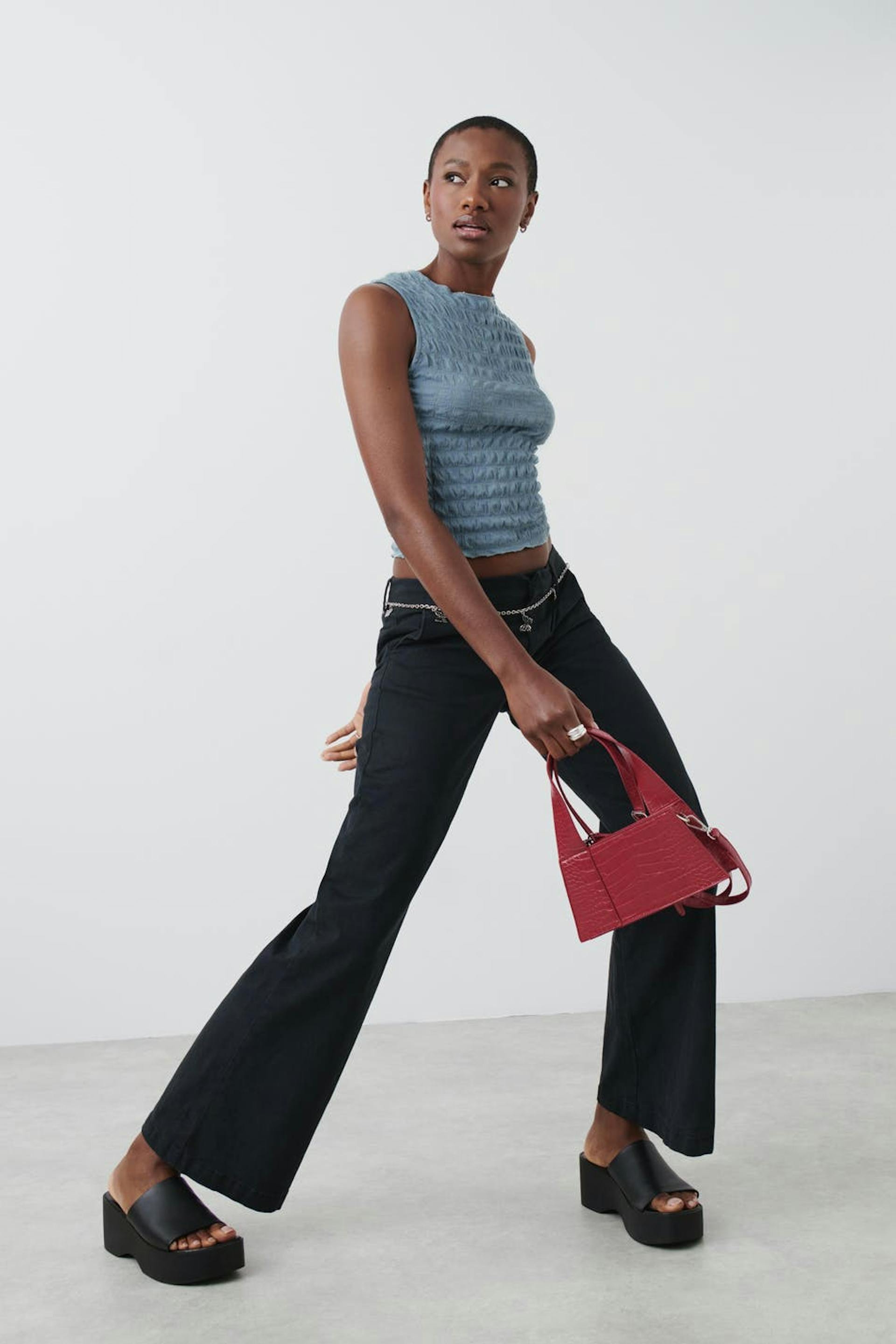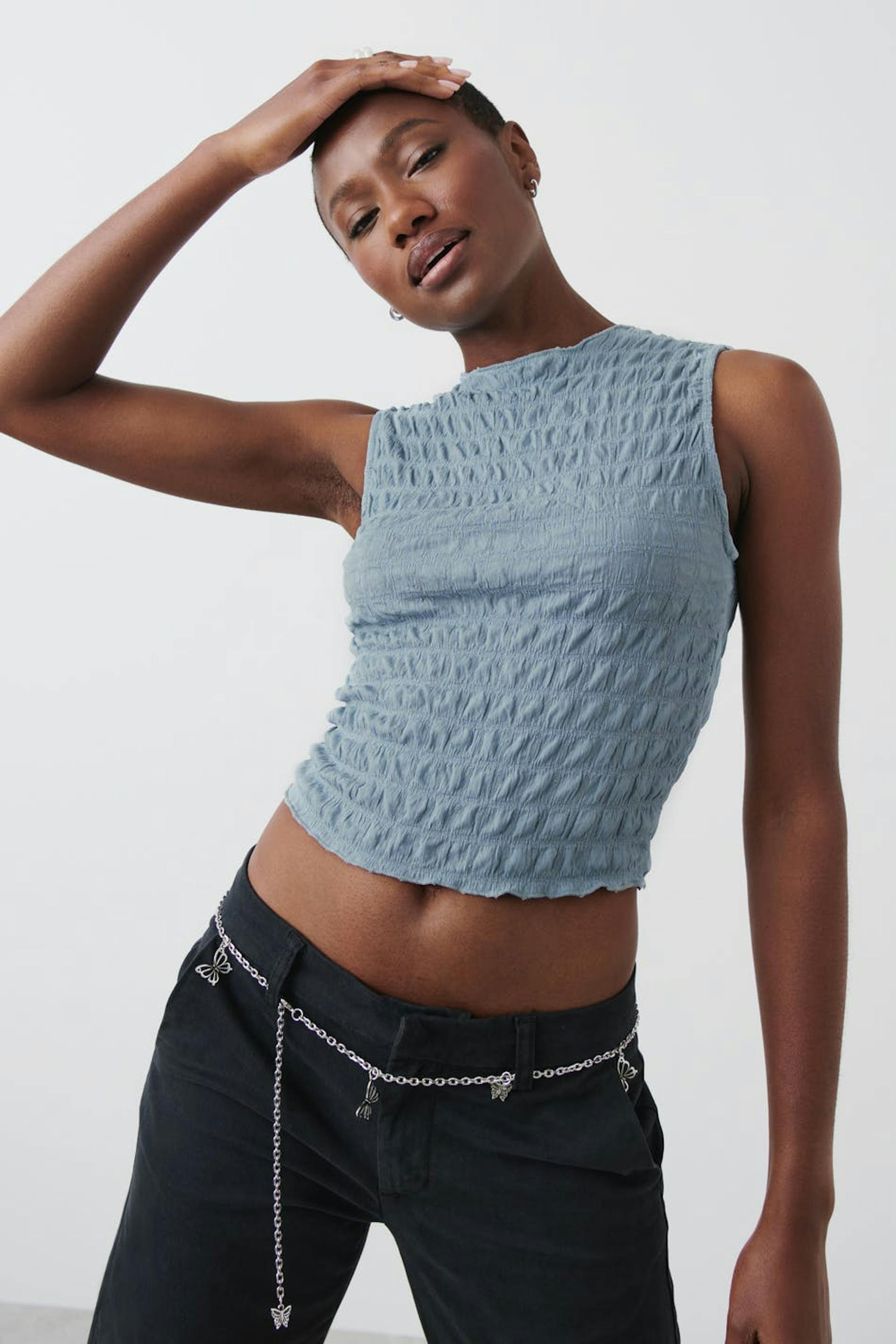 Texture funnel neck top