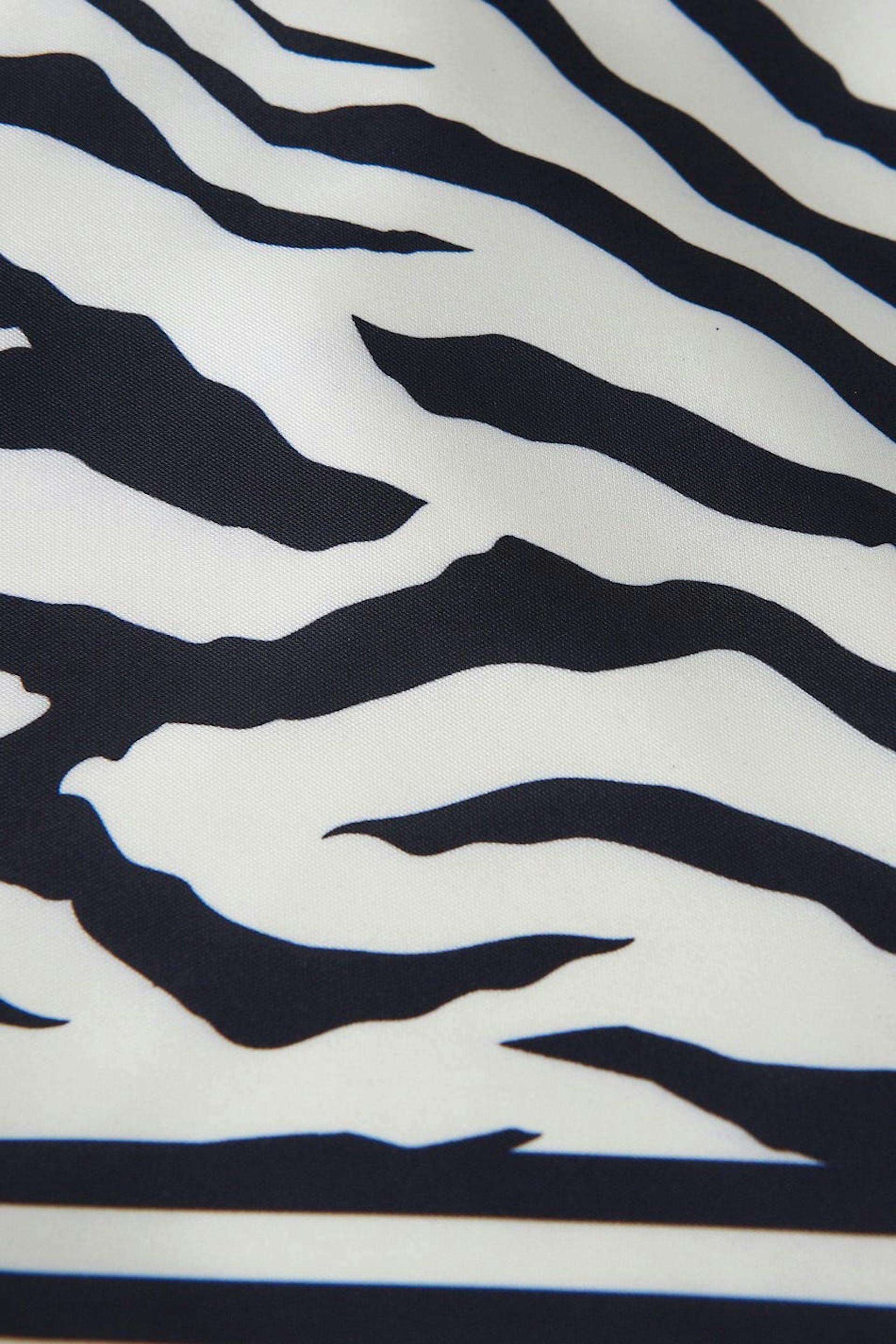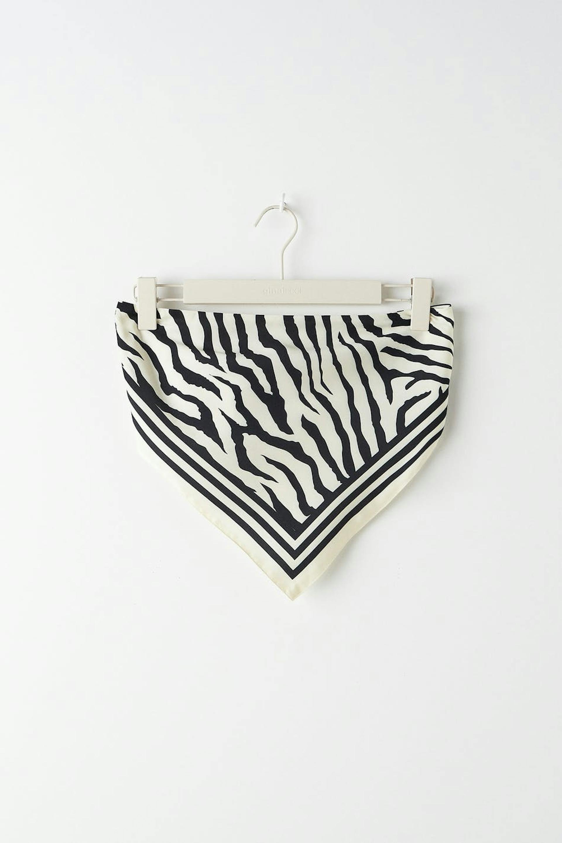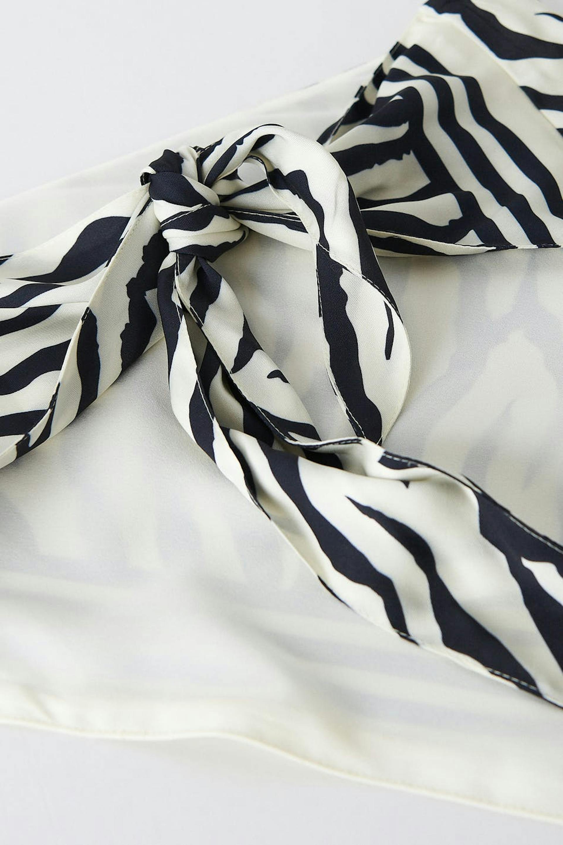 Zebramønstret scarftopp i resirkulert polyester med knyting i ryggen. Toppen er perfekt for festen og svart og har en spiss kant på bunnen.
