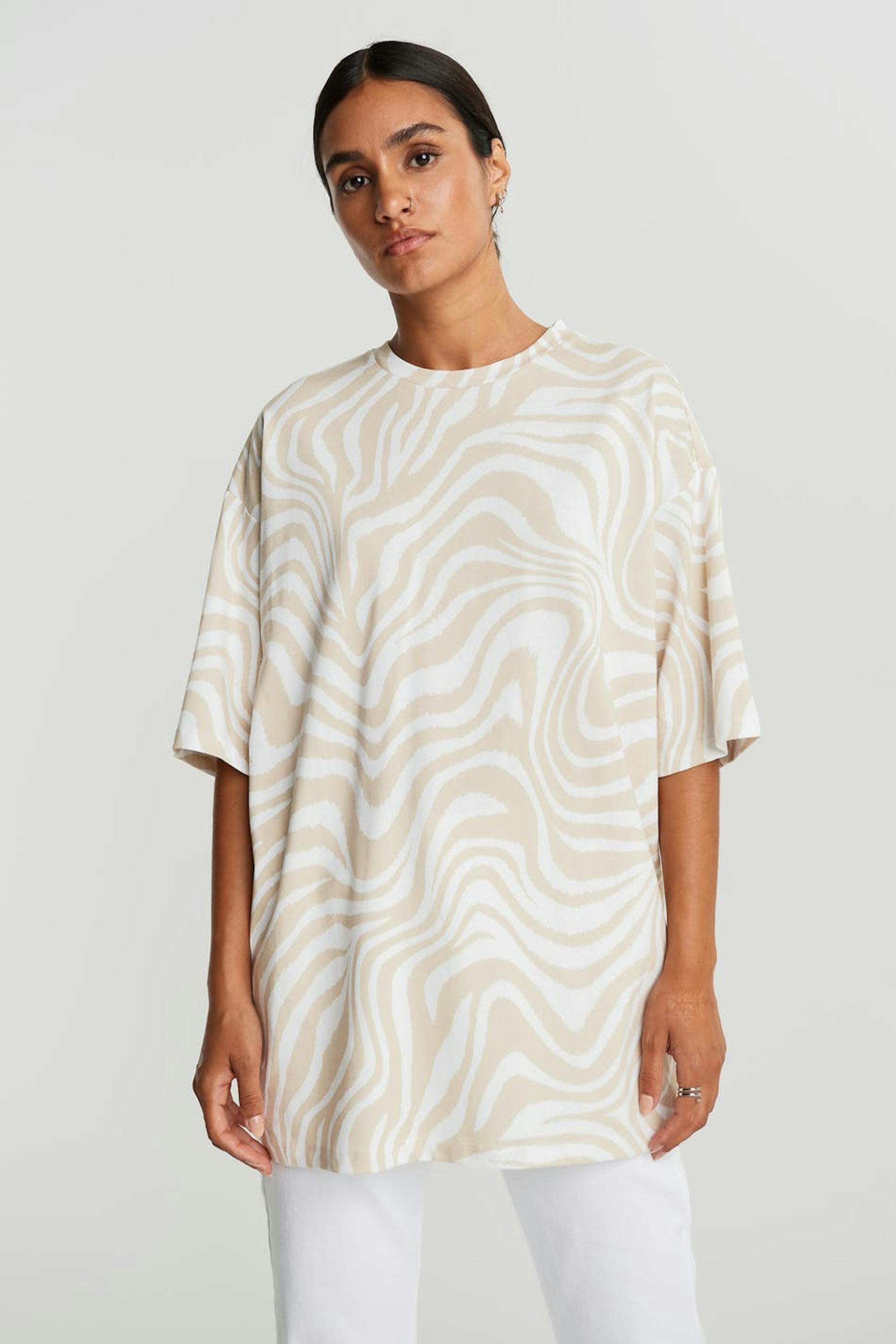T-skjorte med en sjenerøs passform. T-skjorten er beige.