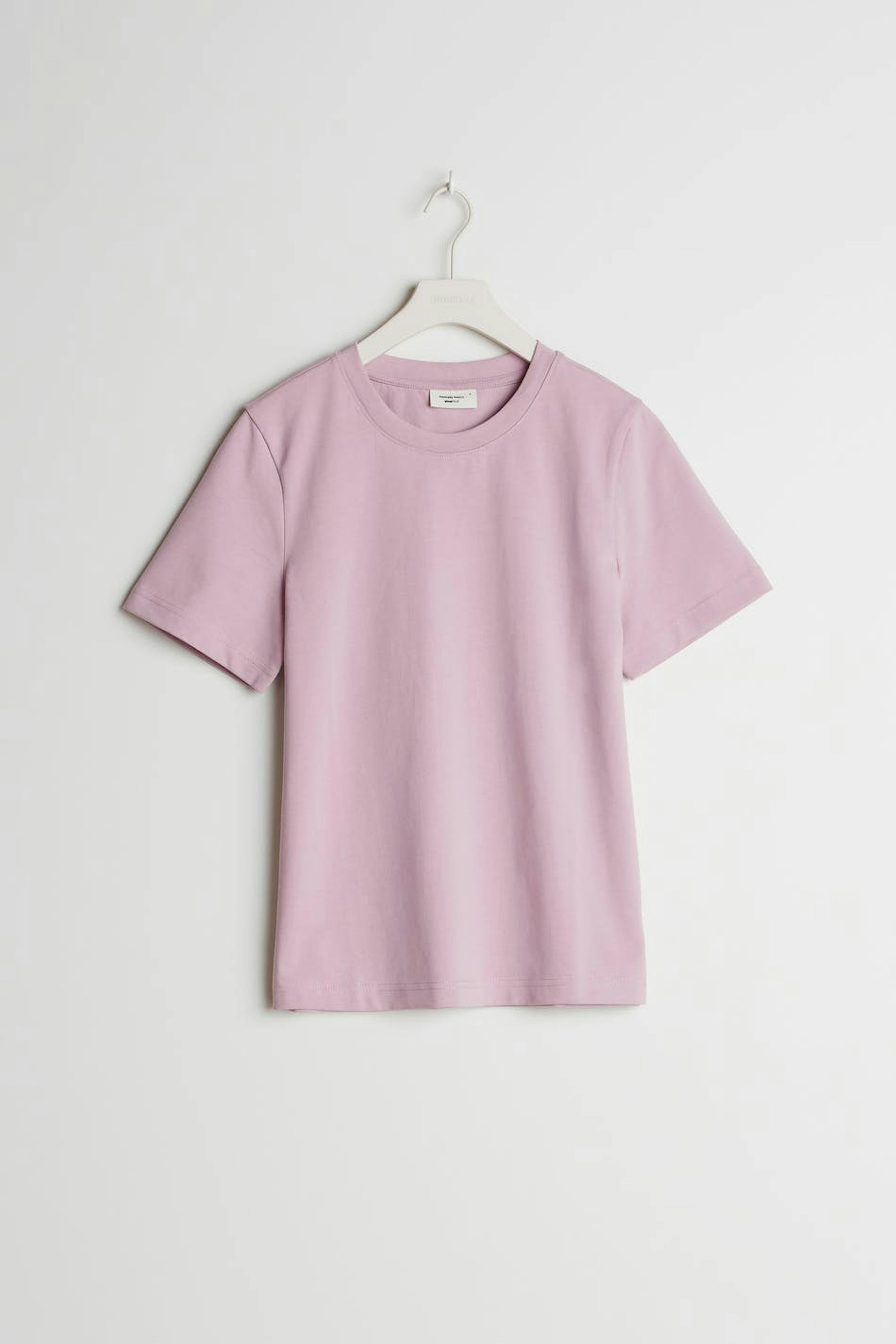 T-skjorte med en rett passform. T-skjorten er lilla og har en høy hals. Den er laget av jersey.