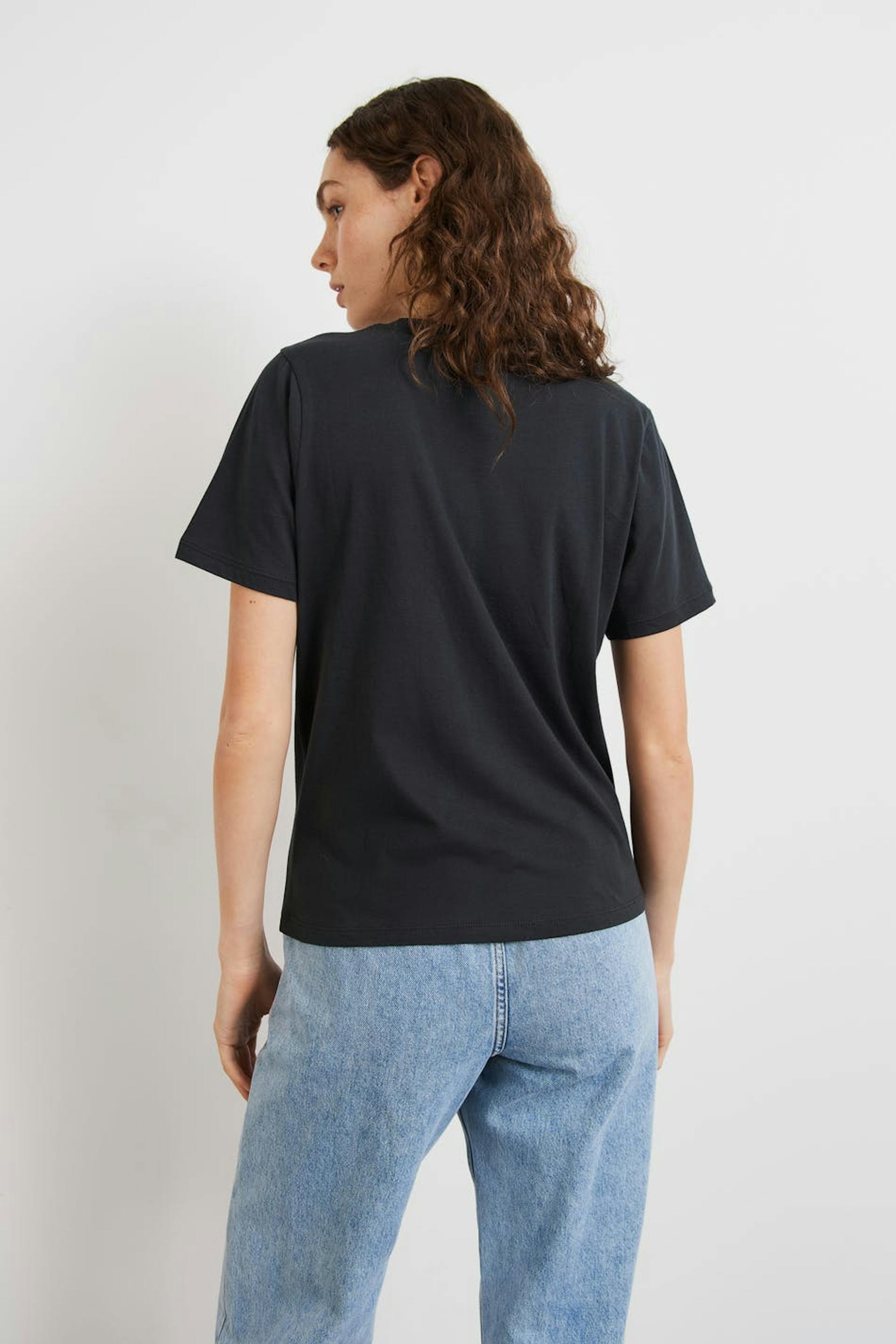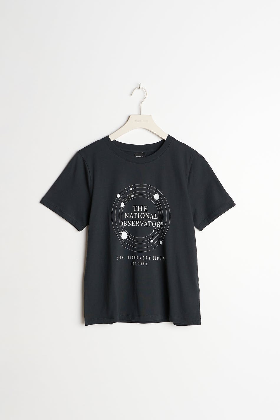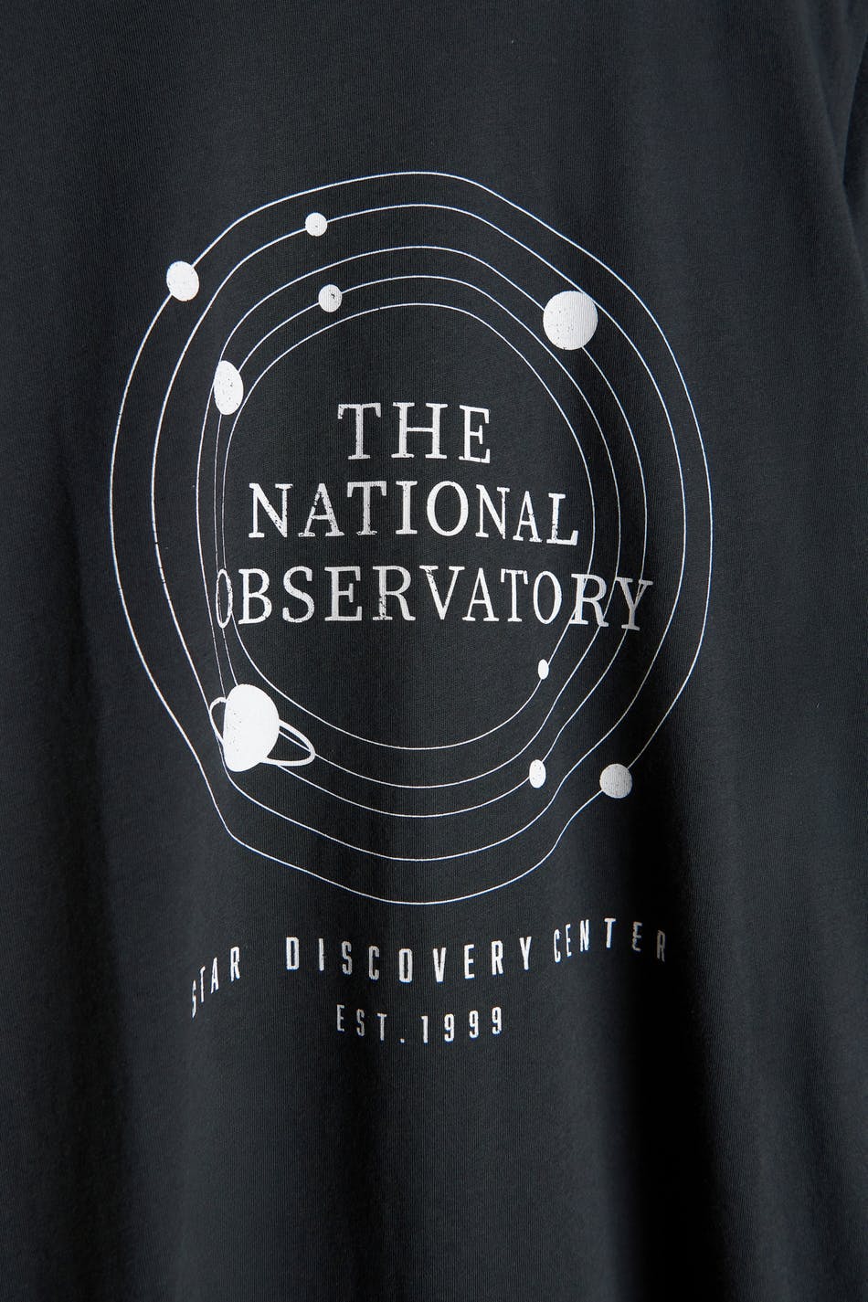 T-skjorte med et verdensrom-inspirert trykk. T-skjorten er svart og har en vanlig passform. Den har en rund halsringning med en smal, ribbet mansjett og et mykt materiale i jersey.