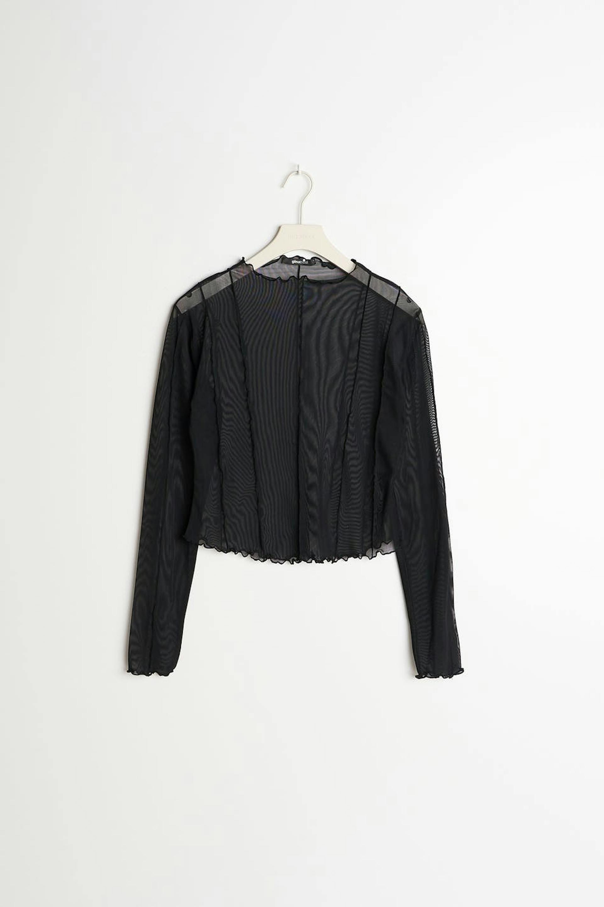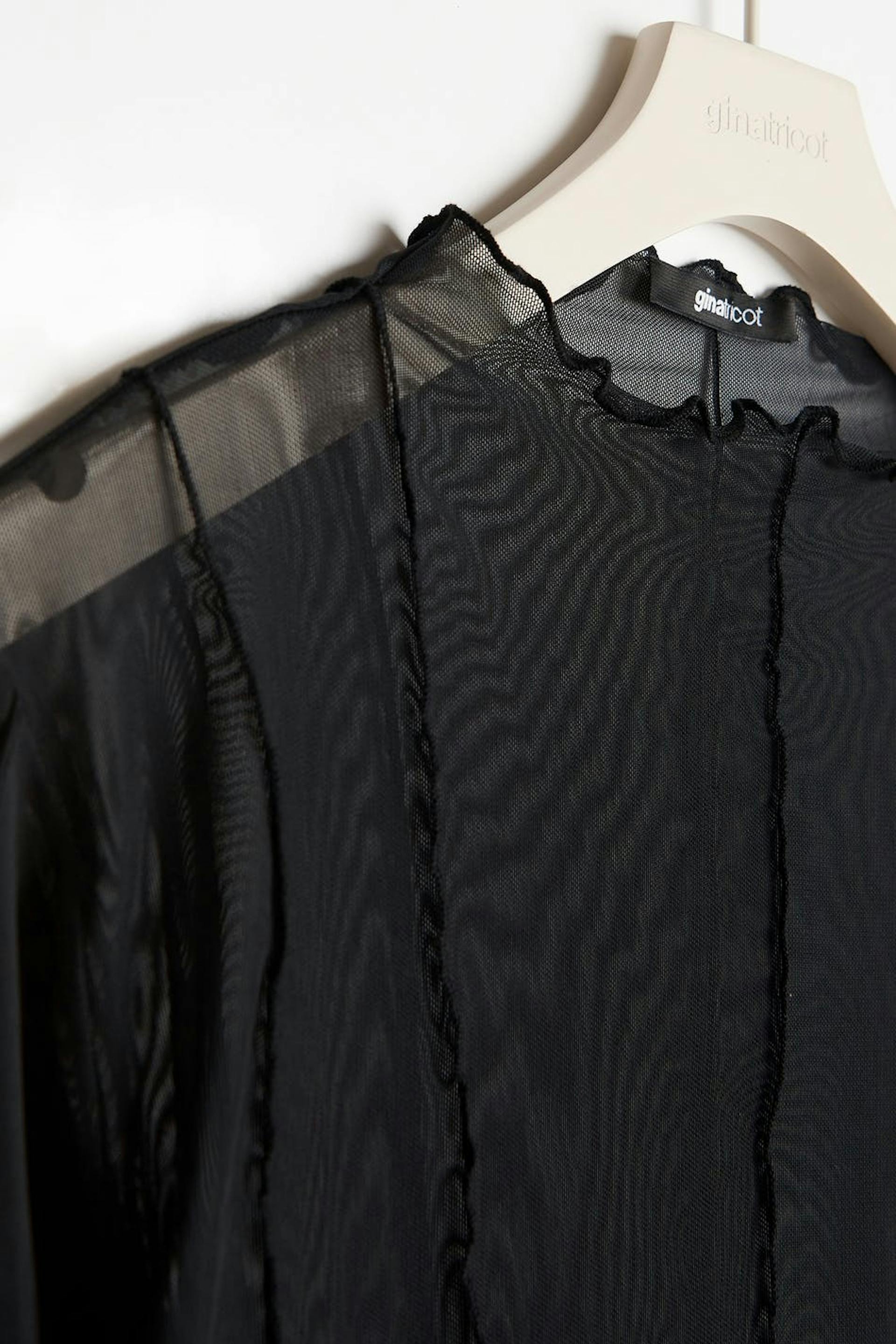 Nettingtopp med volangdetaljer. Toppen er perfekt for festen og svart og har en tilpasset passform.