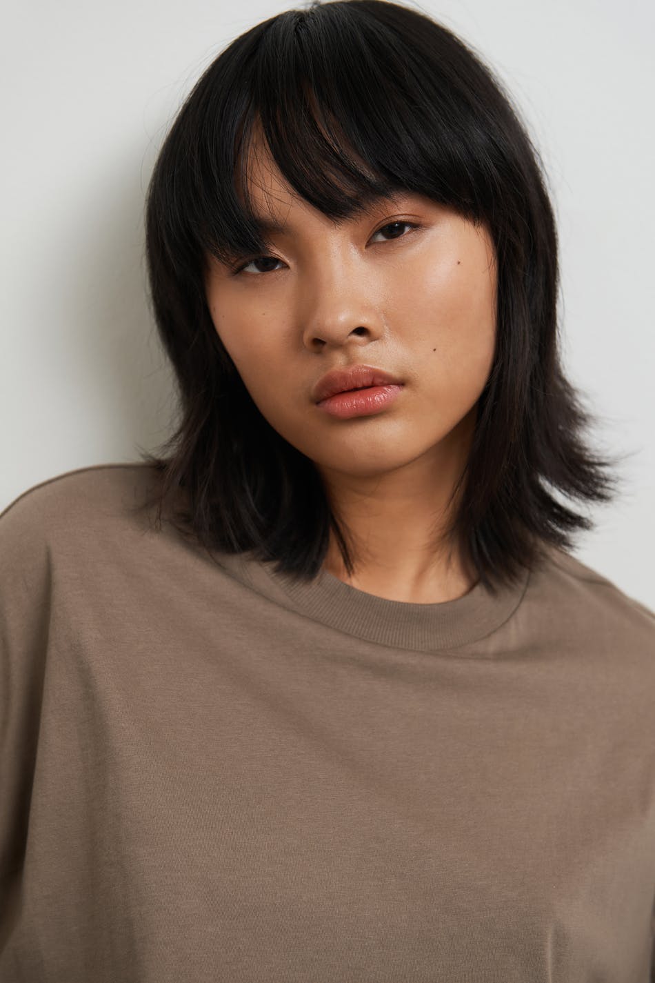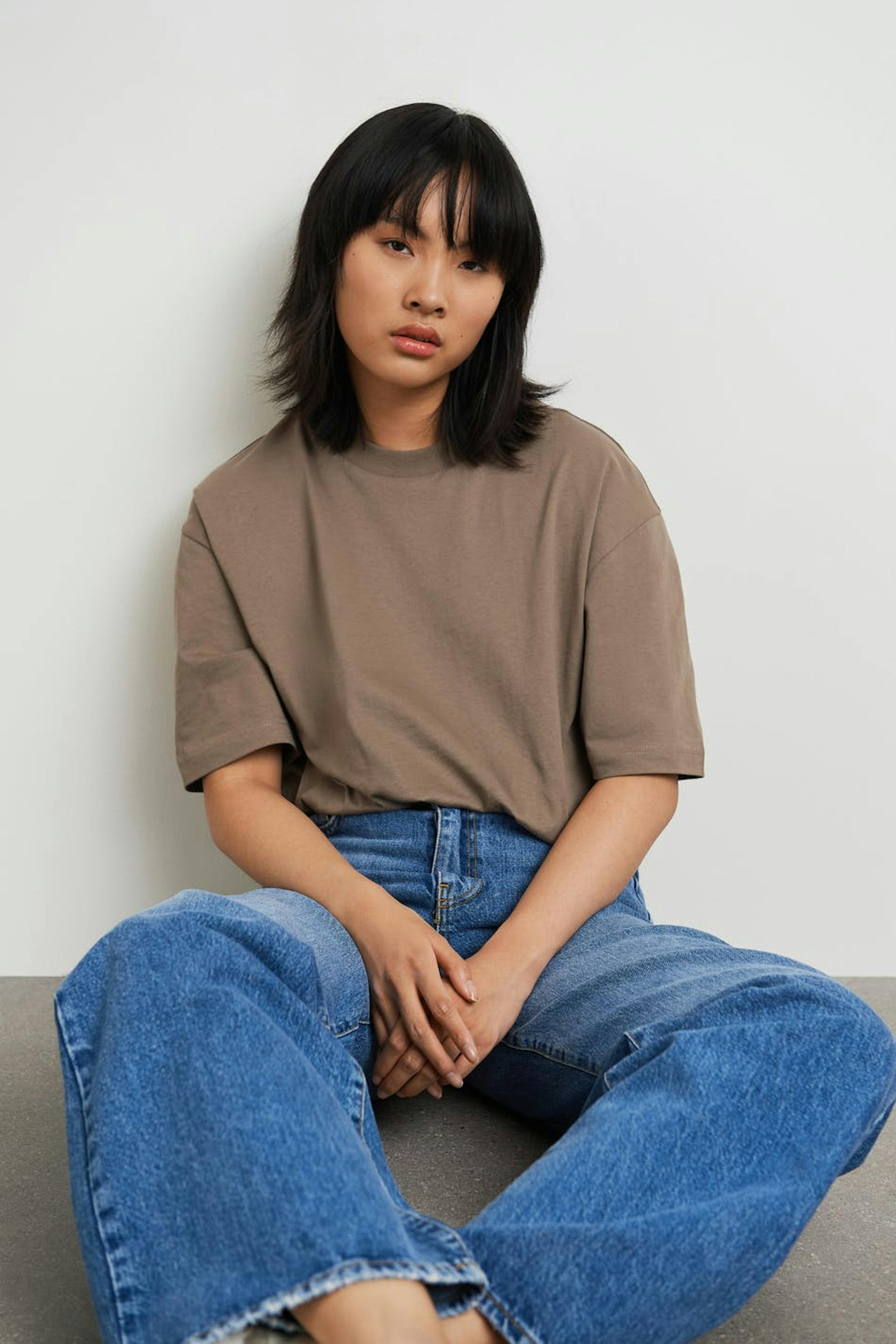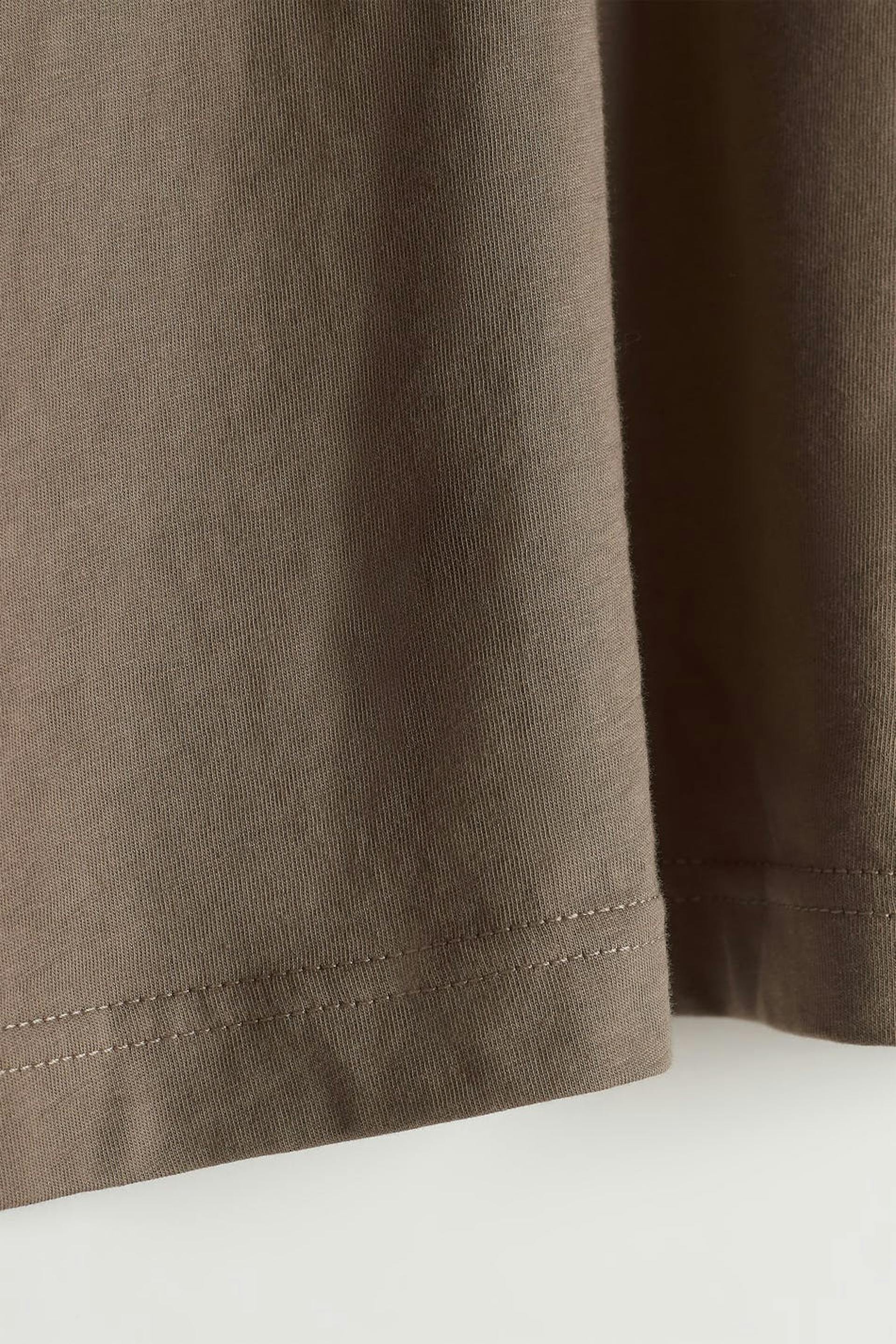 Kortermet t-skjorte med en oversized passform. T-skjorten er brun og har et mykt materiale i bomull. Den har en ribbet mansjett på halslinjen.
