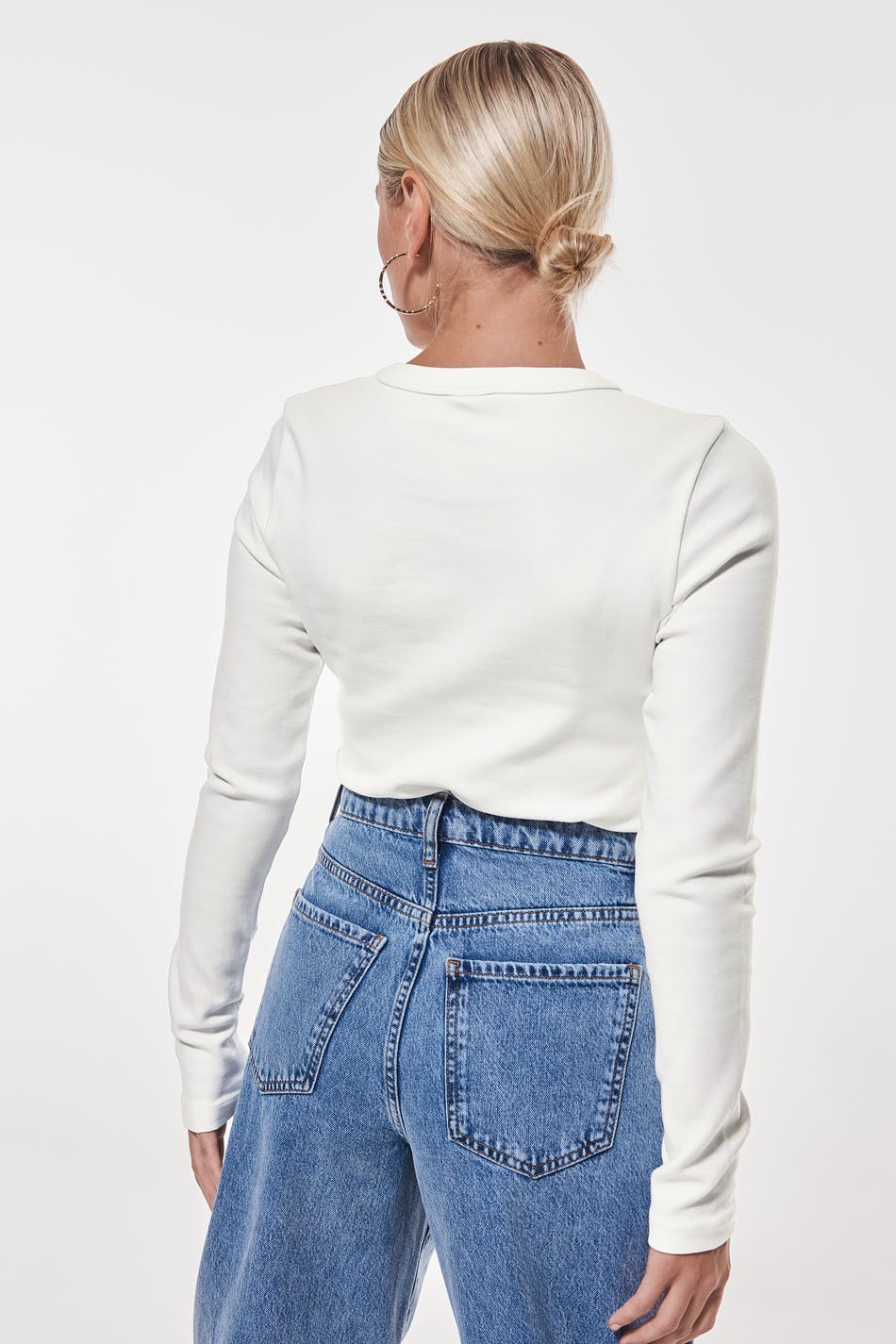 Langermet topp med en tilpasset passform. Toppen er hvit og superstretch og har en rund hals. Den er laget av jersey.