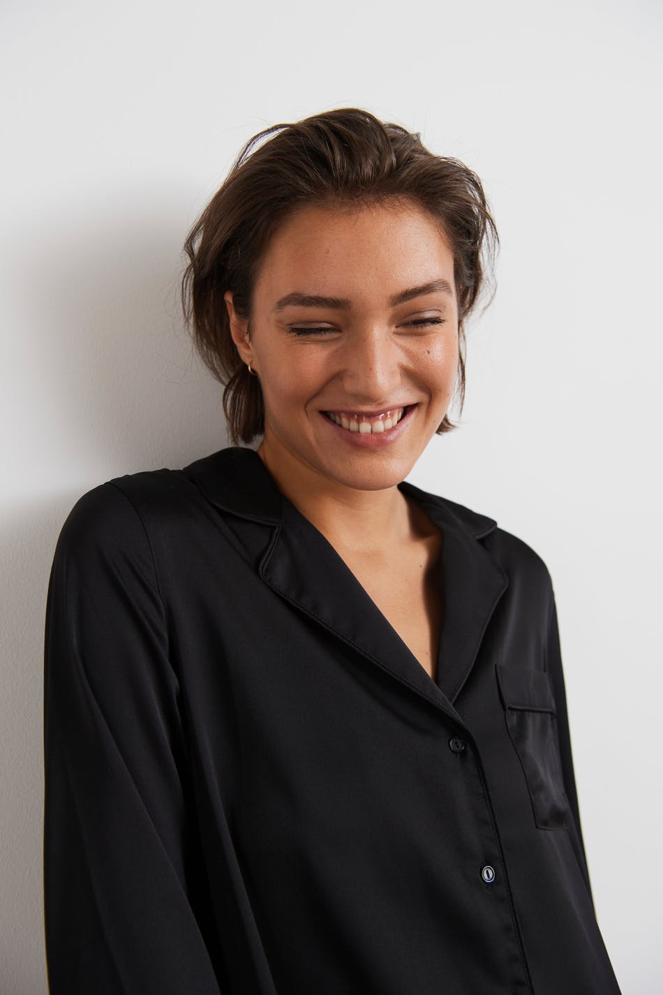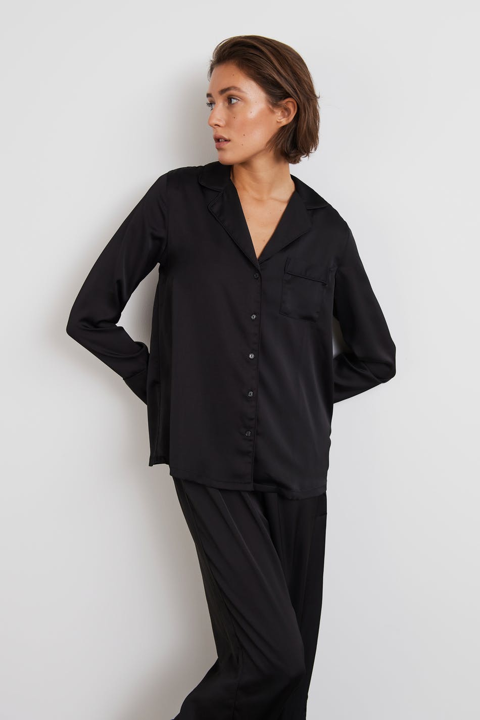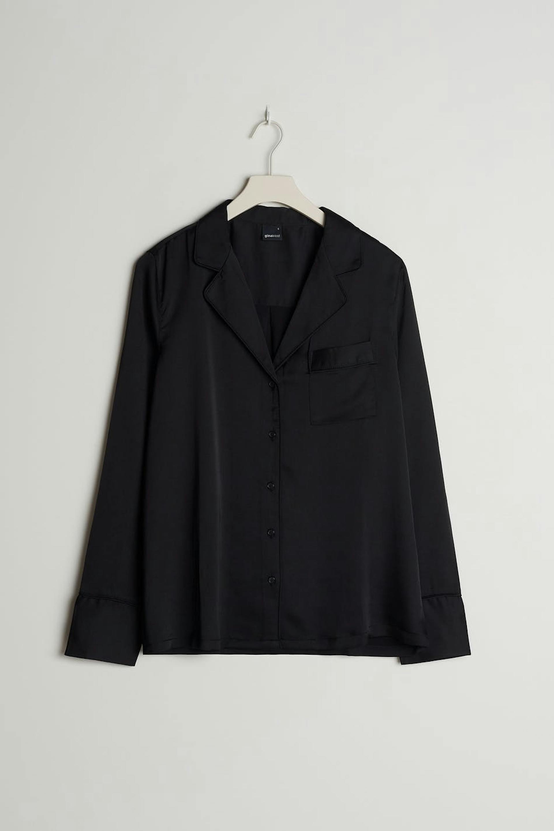 Pysjamasskjorte med en vanlig passform. Skjorten er svart og har en brystlomme. Den har lange, romslige armer.