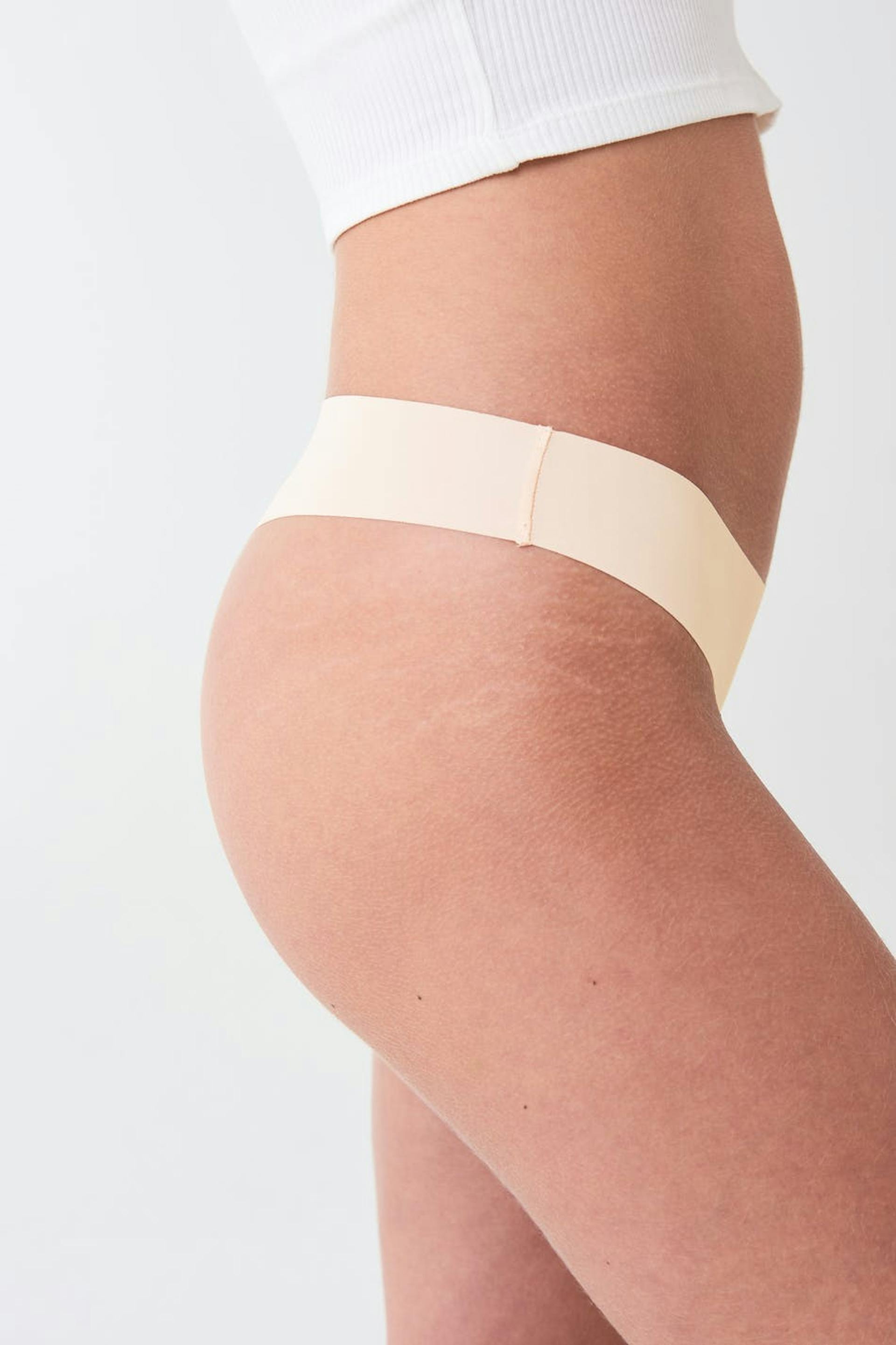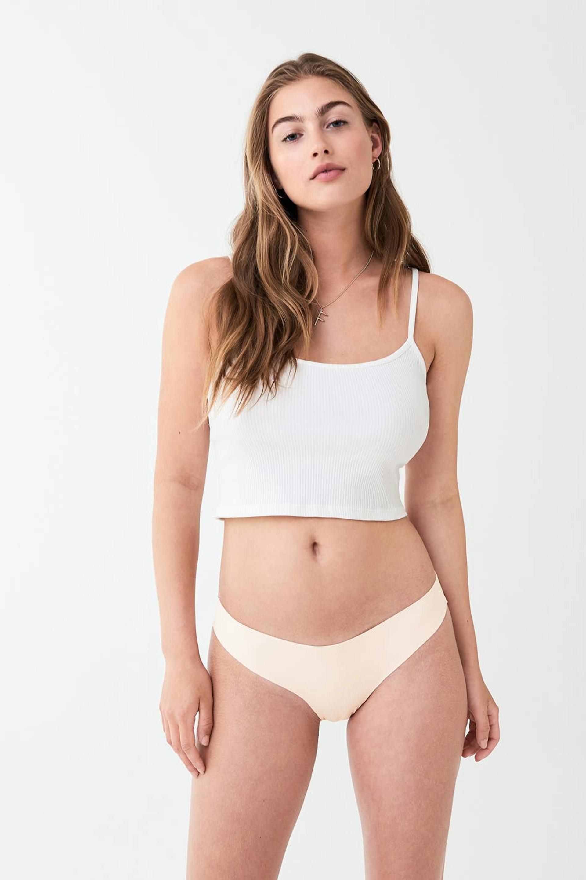 Stringtruse med en foring i bomull mellom bena. Stringtrusen er rosa. Den er laget av mikrofiber.