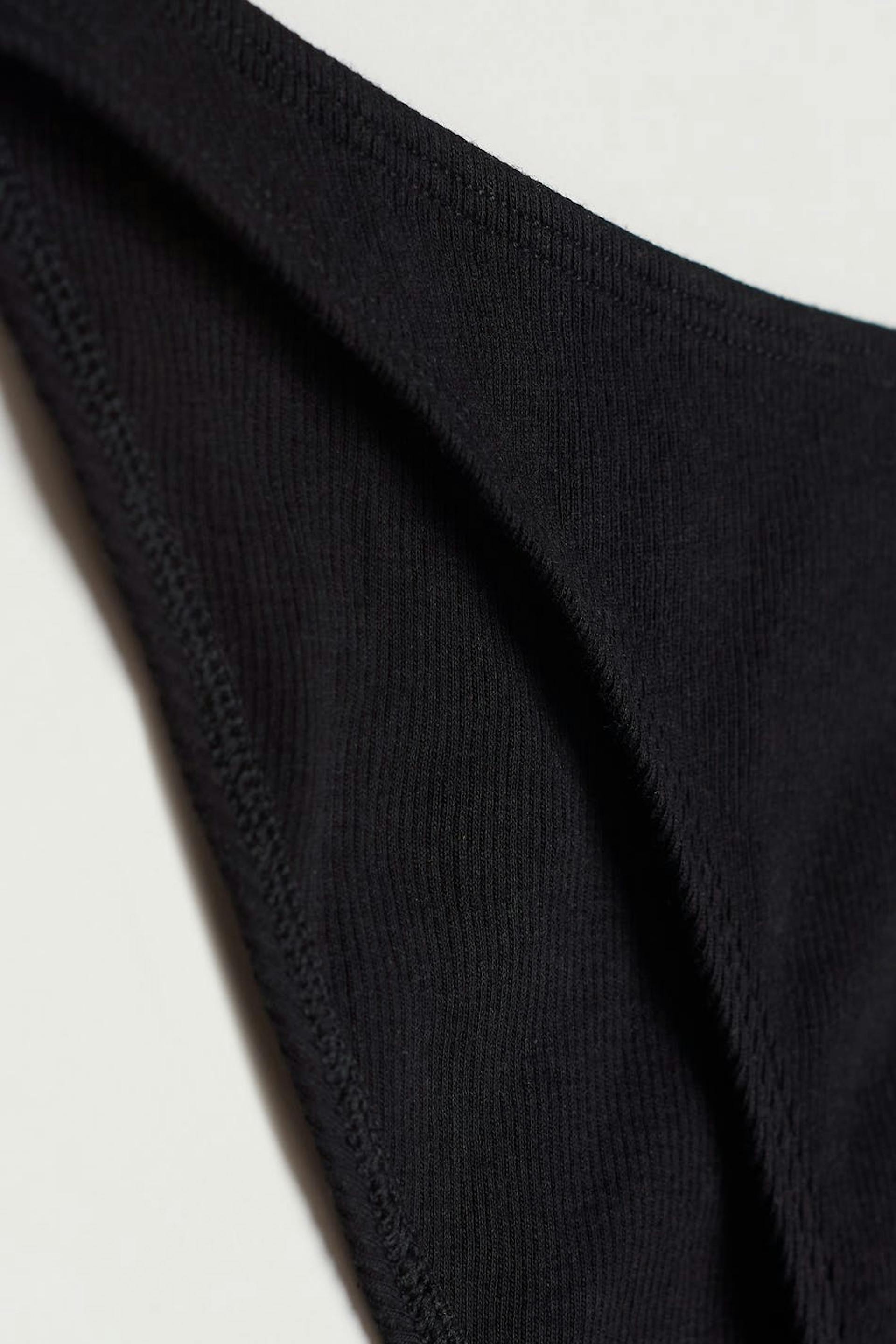 Ribbet truser med et mykt materiale i bomull. Trusene er svarte.