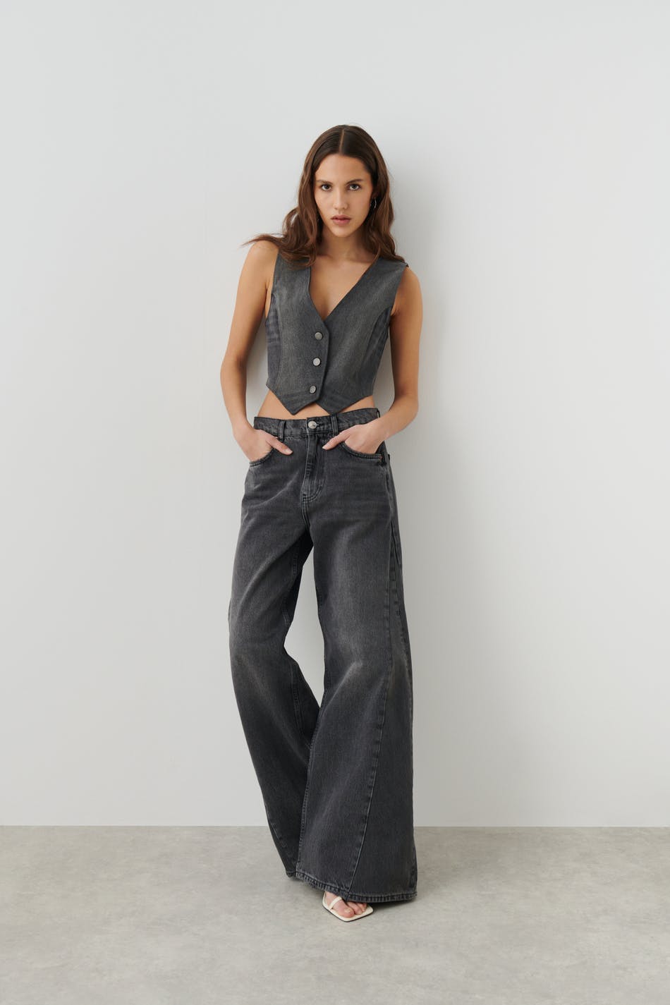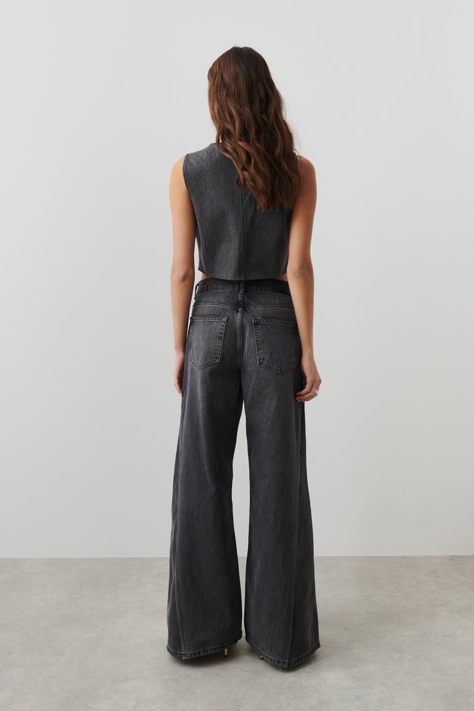 REMADE DENIM COLLECTION. Jeans med høy midje i non-stretch denim. Jeansene er grå og har brede bein med full lengde.
