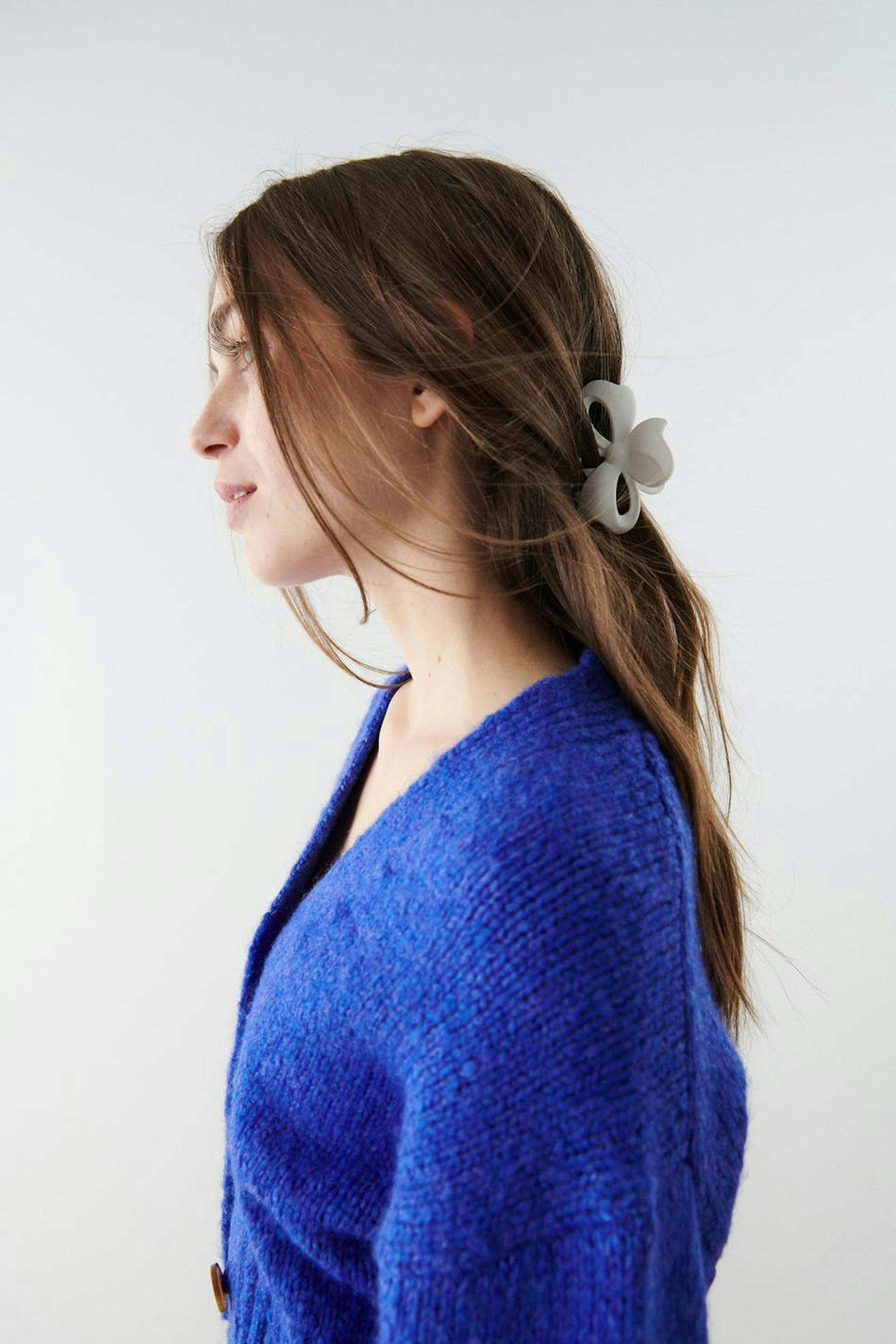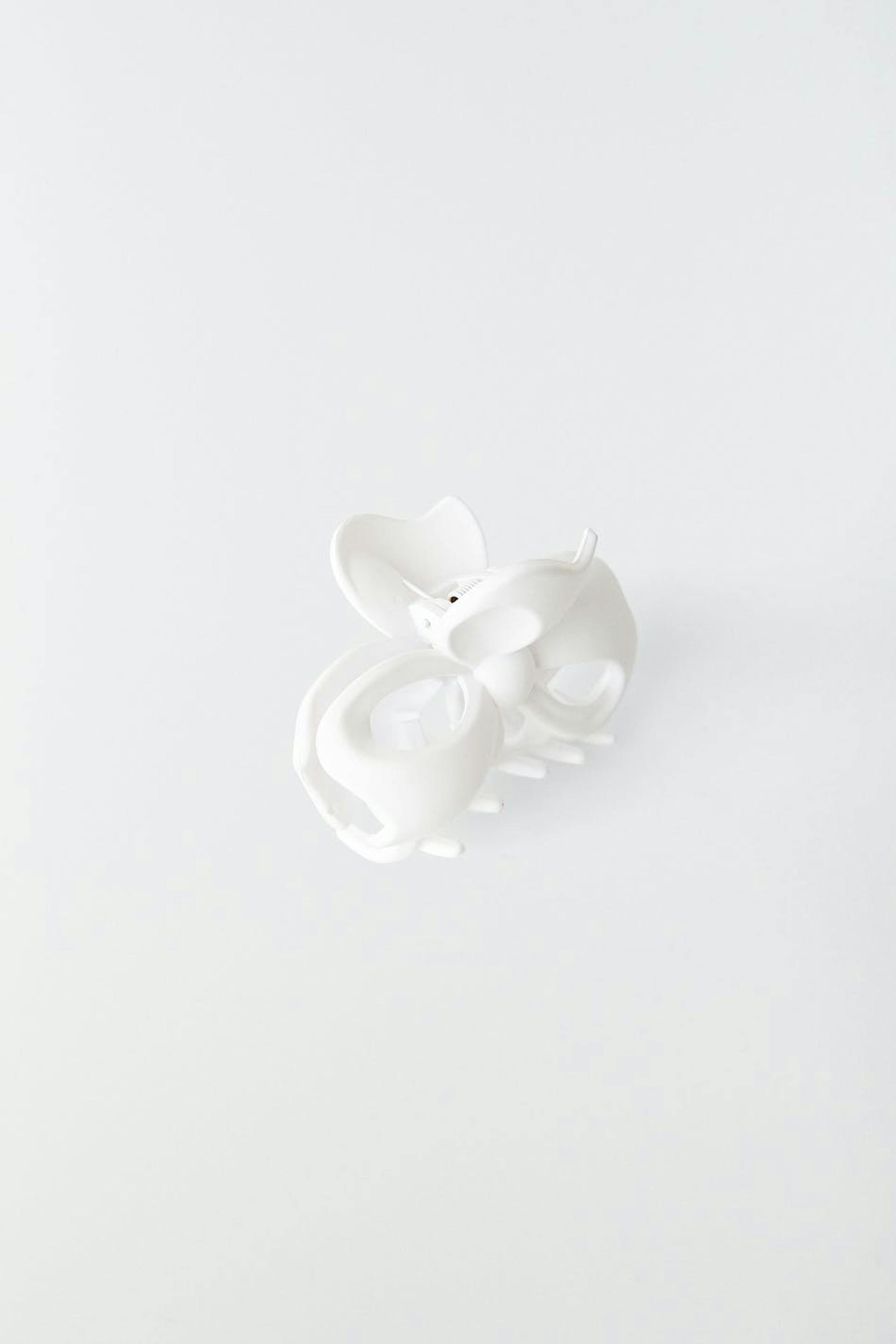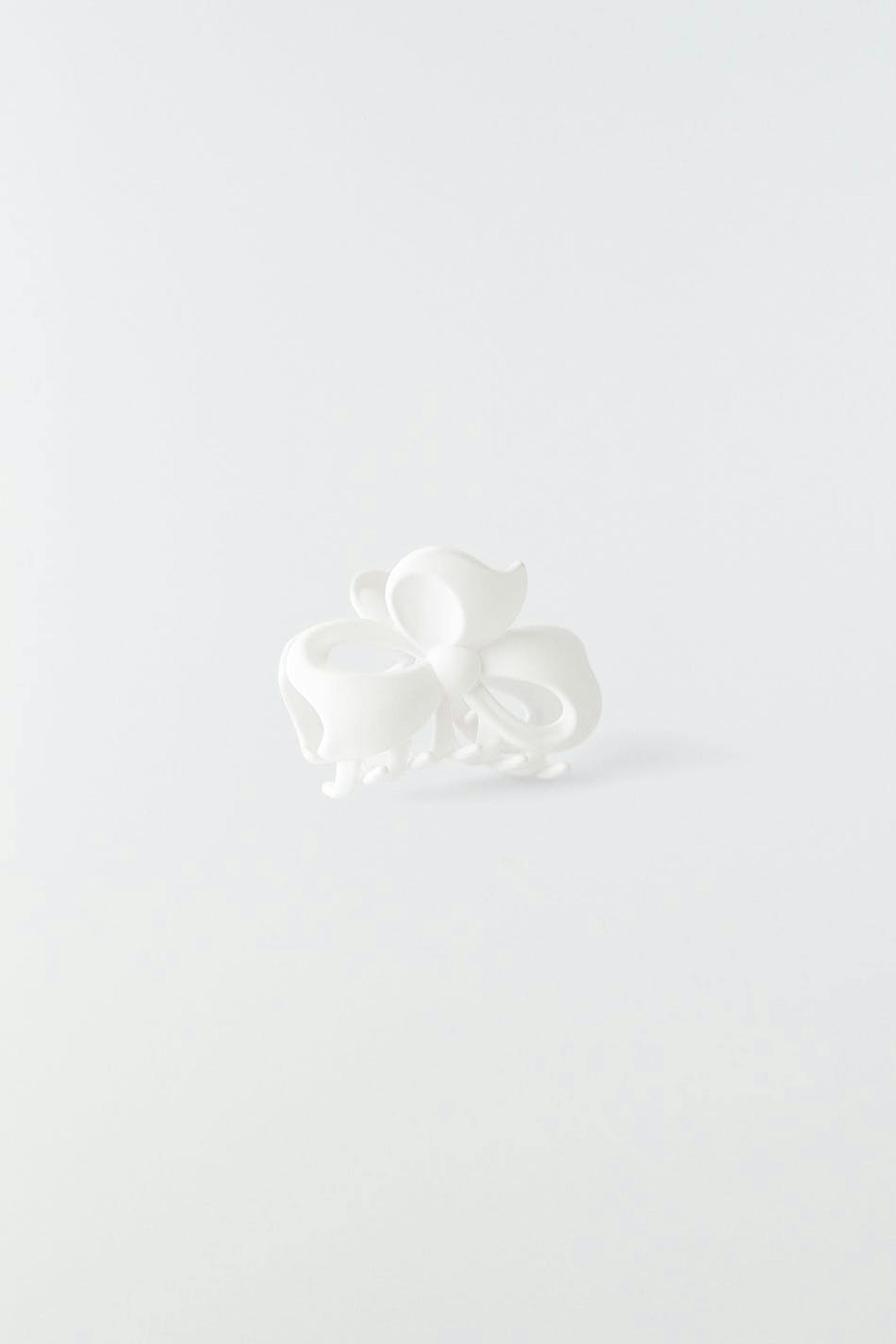 Sløyfeformet hårklemme. Hårklypen er hvit.