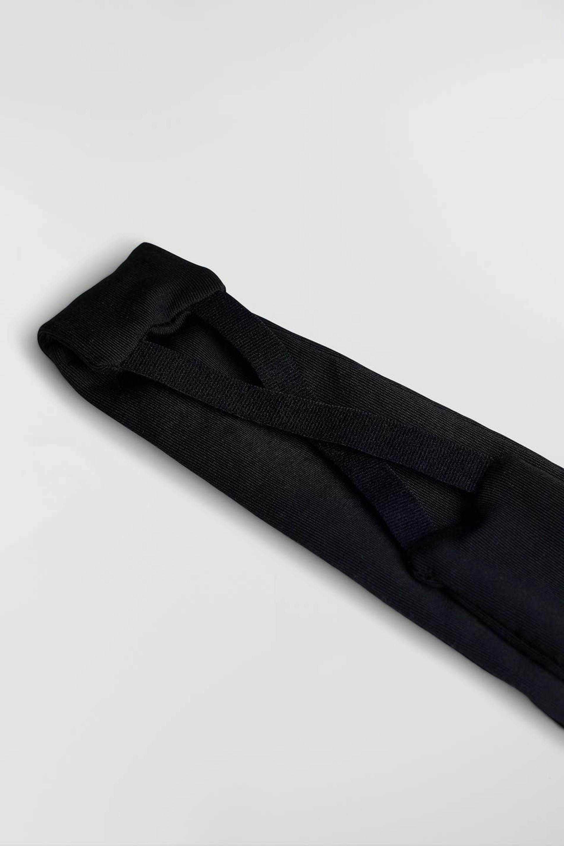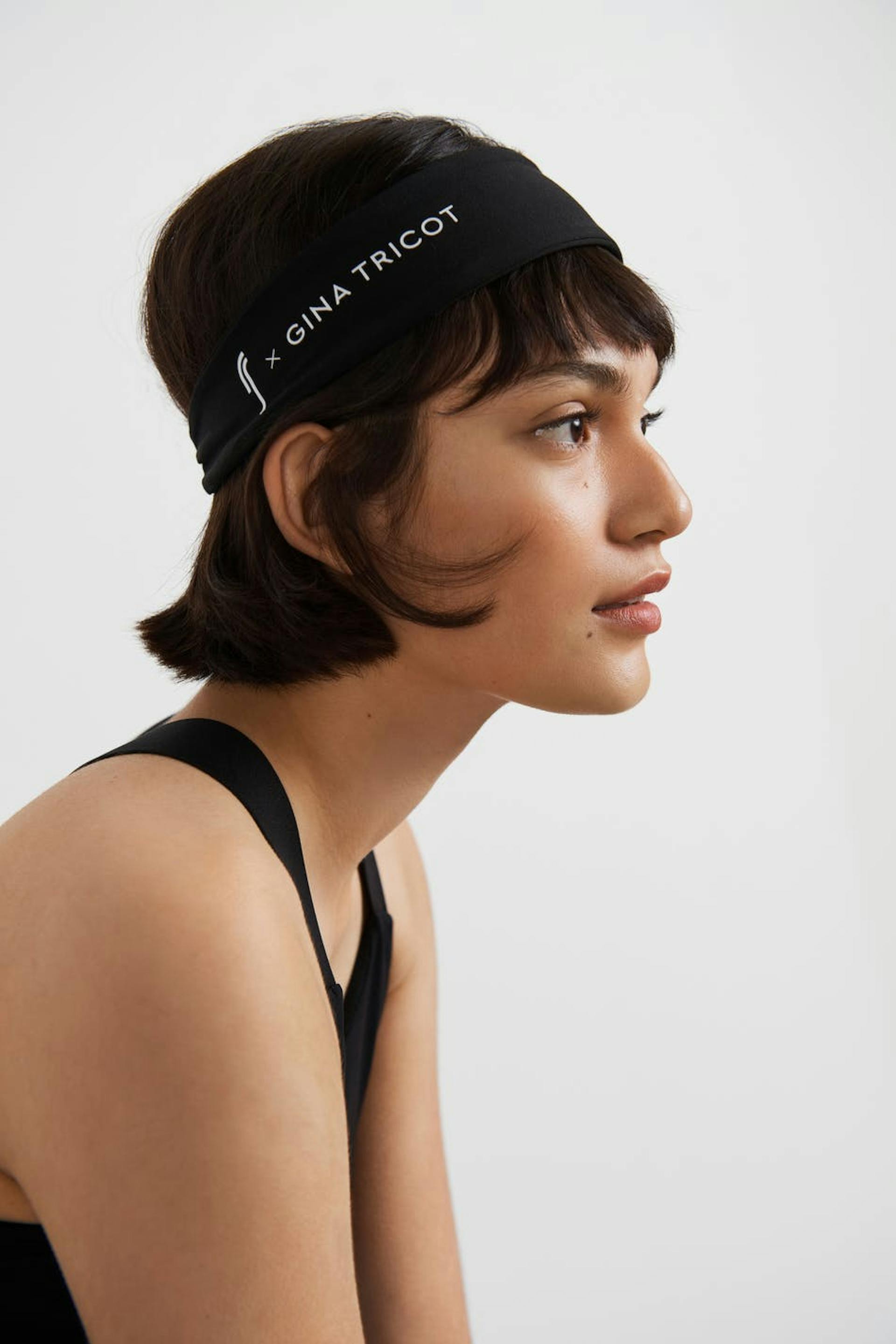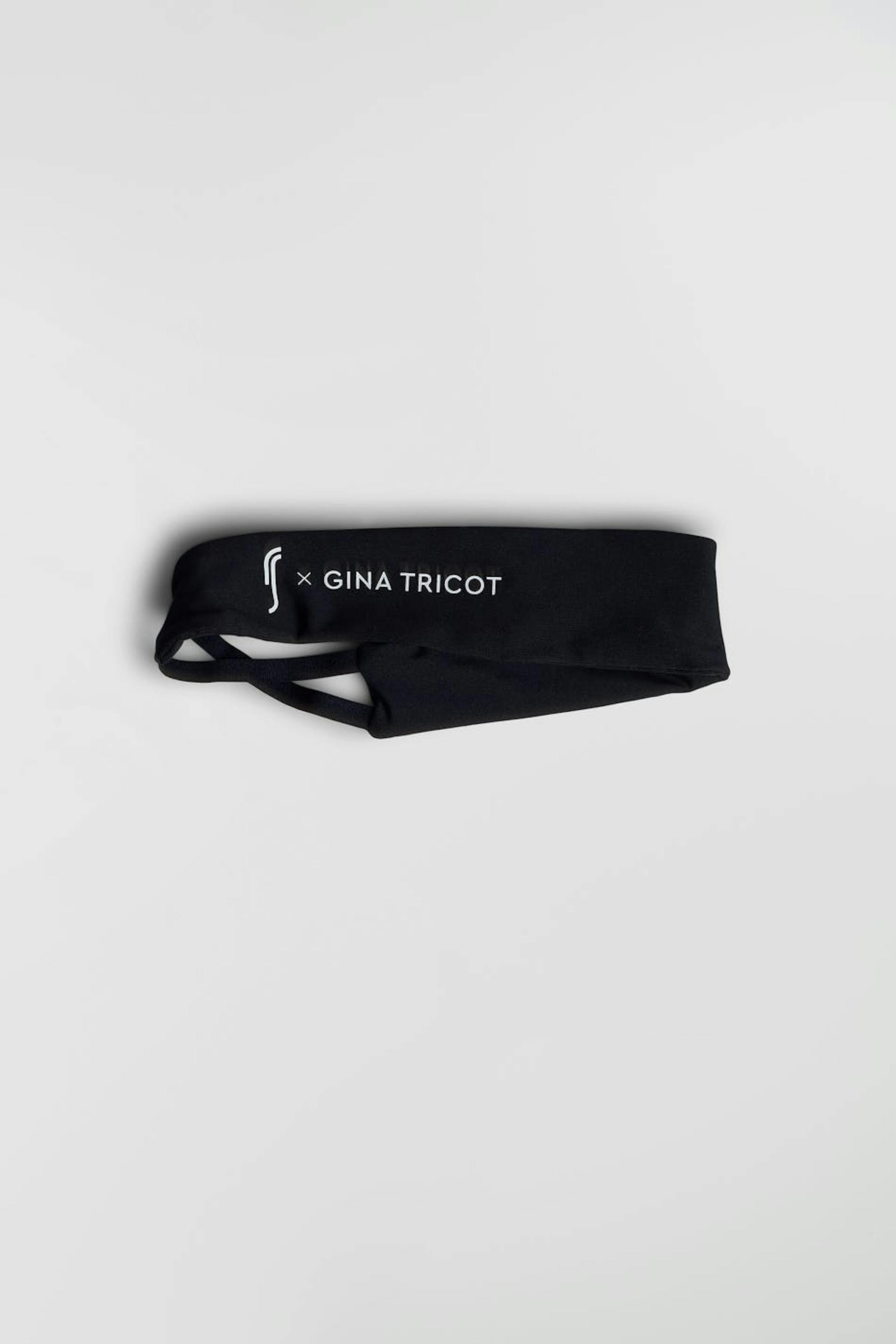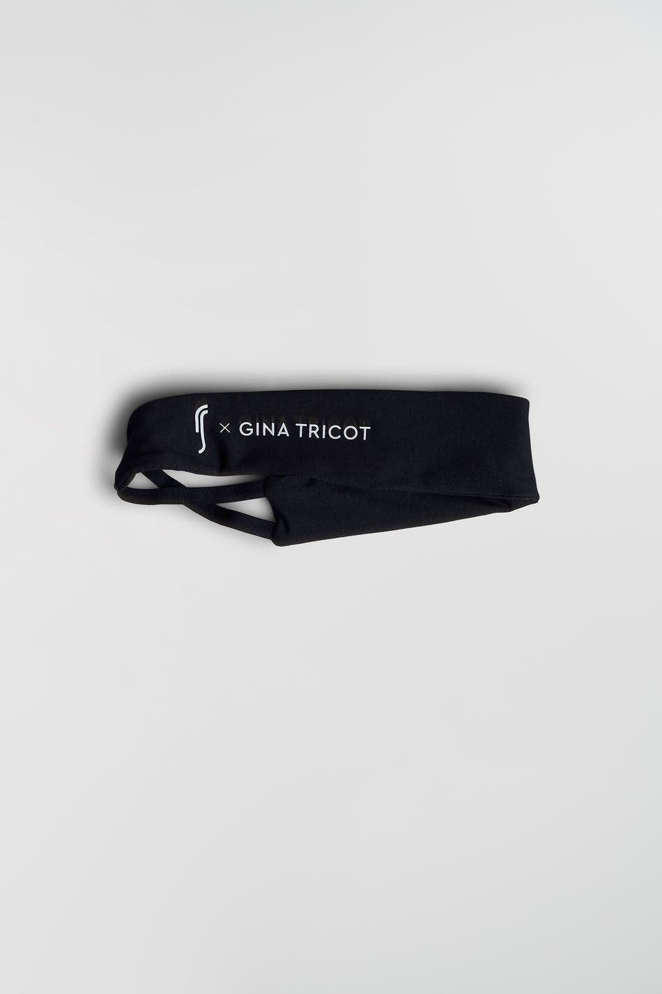 RS X Gina Tricot. Pannebånd med kryssende bånd bakpå. Tilbehøret er svart og har en hvit, trykket logo med en framside.