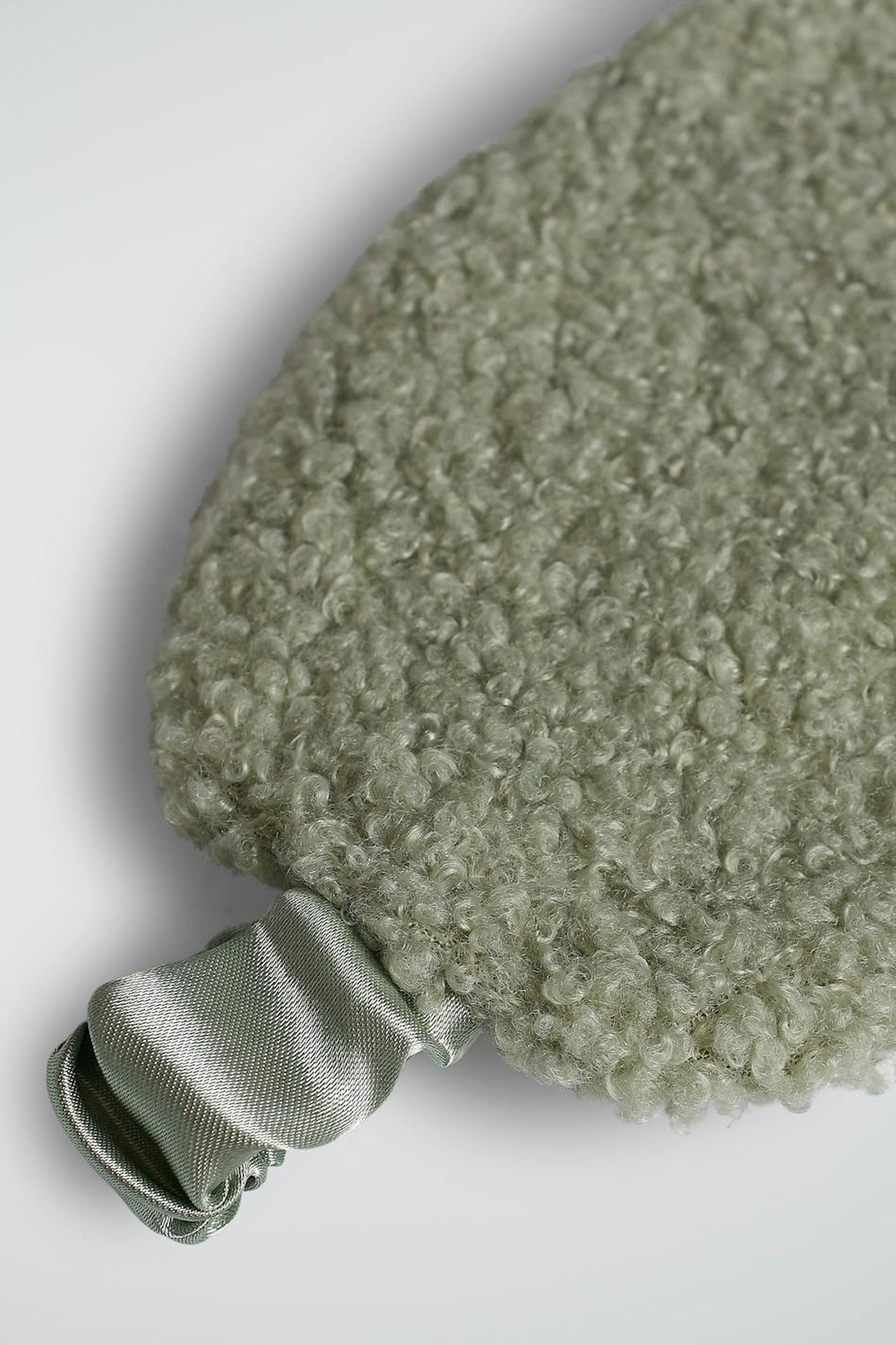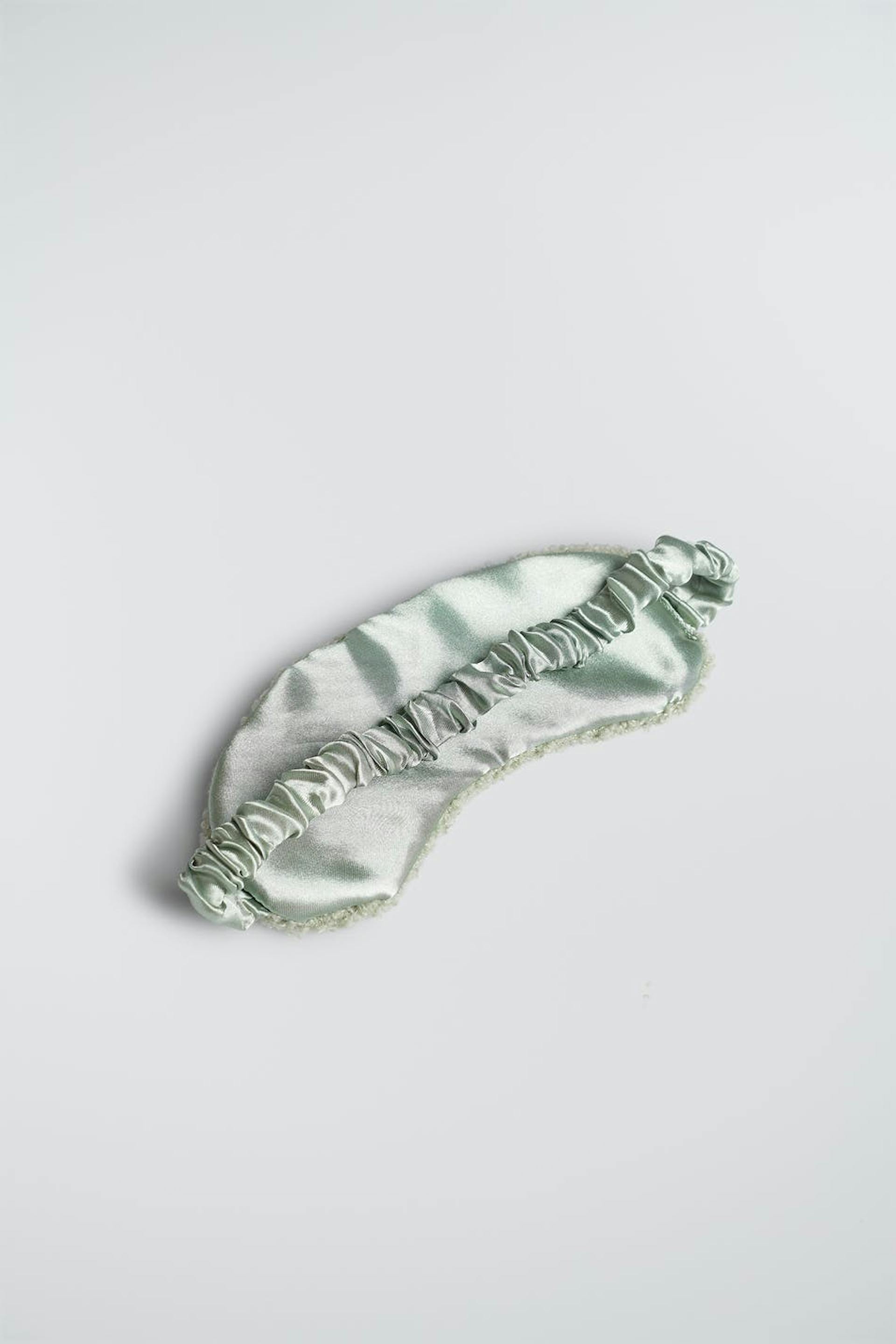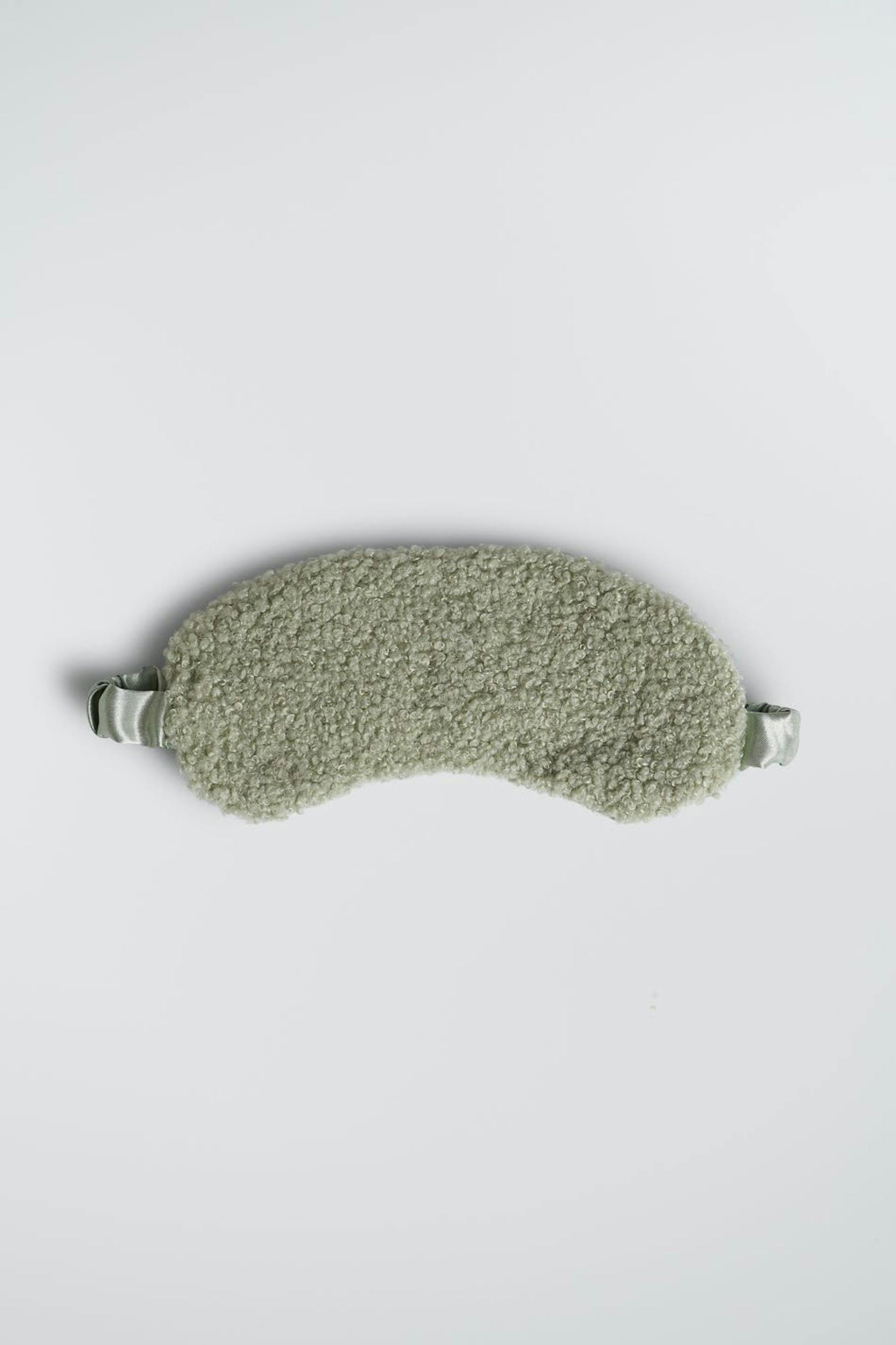 Myk øyenmaske med et innvendig materiale i sateng. Øyenmasken er perfekt for soving og grønn og har et teddy-material på utsiden.