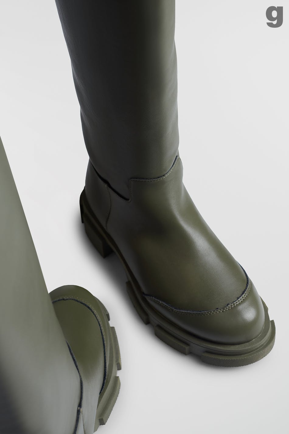 Knehøye boots med et chunky design. Bootsene er grønne og har tykke såler.