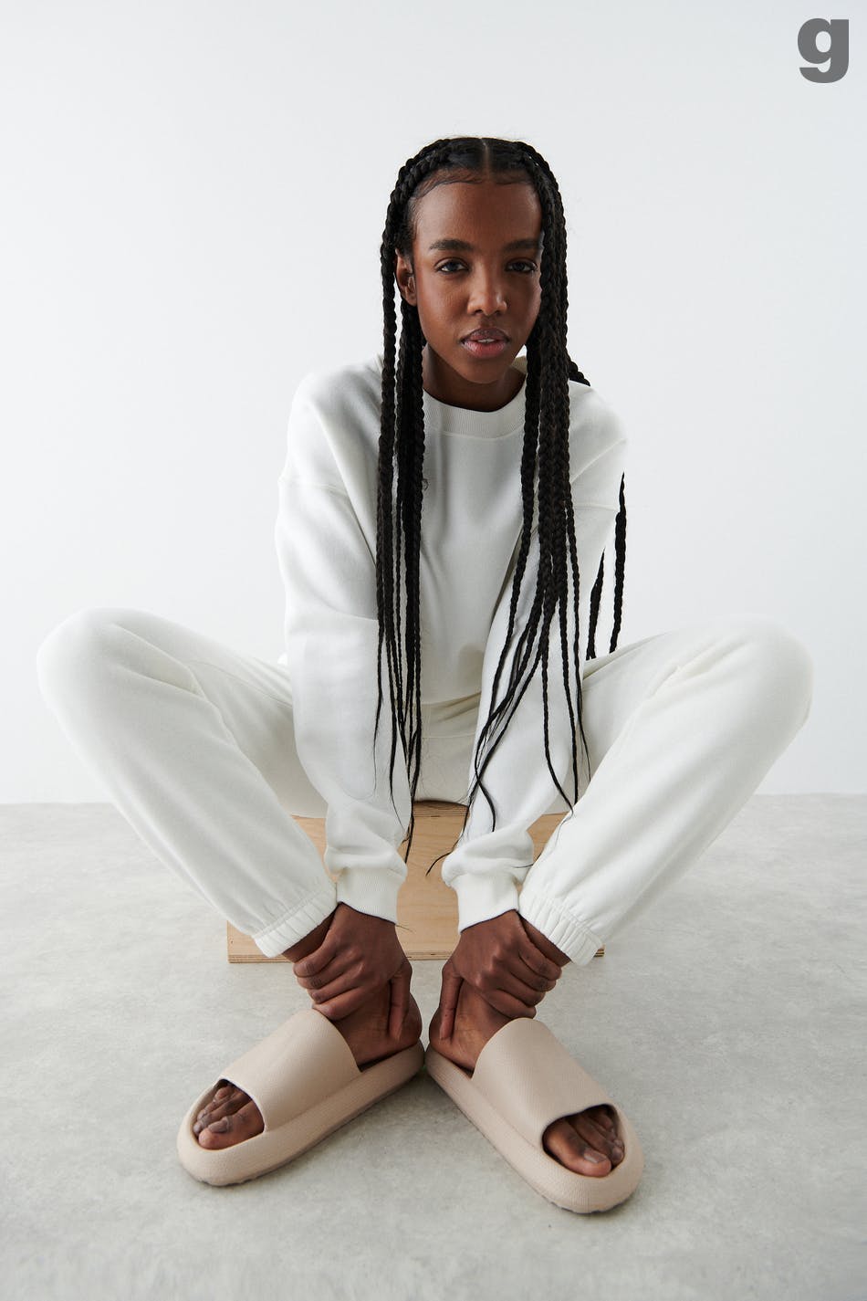 Tøfler med slip in-design. Tøffelene er beige og har chunky fit med høy såle. De har åpen tå og brede fotreimer.