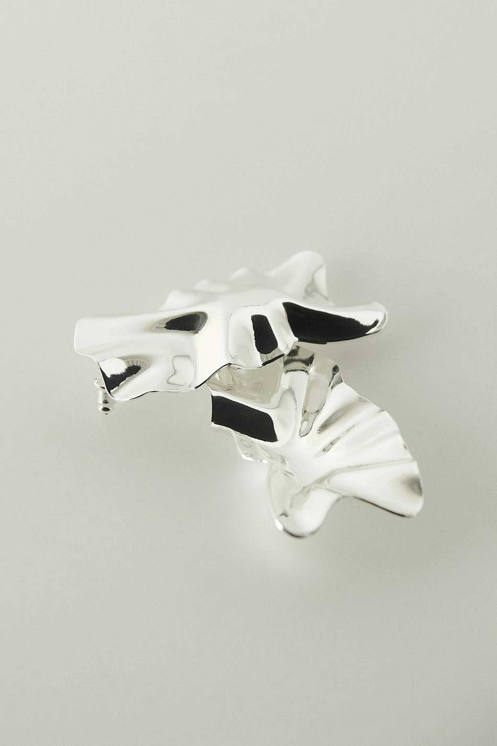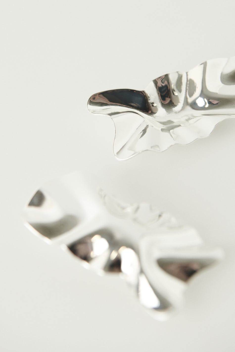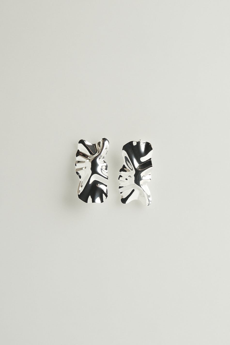 Øreringer med rynket design. Øreringene er sølvfargede.