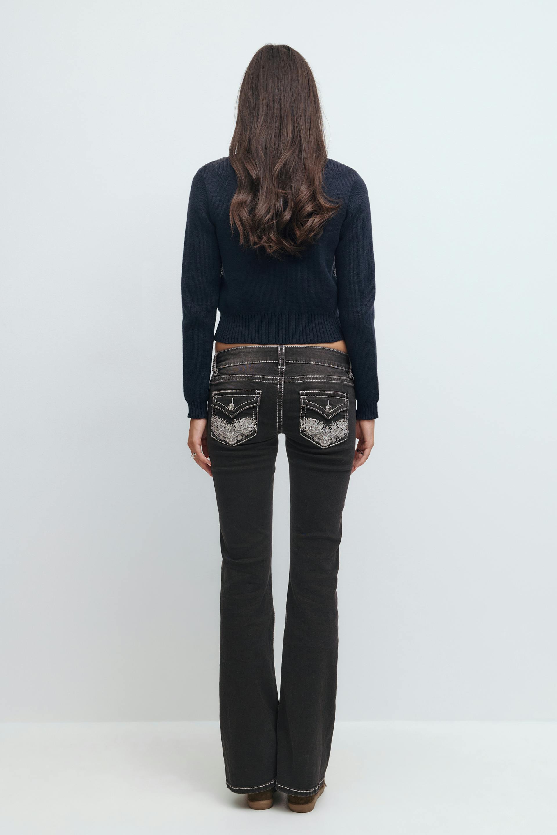 Decorated low flare jeans