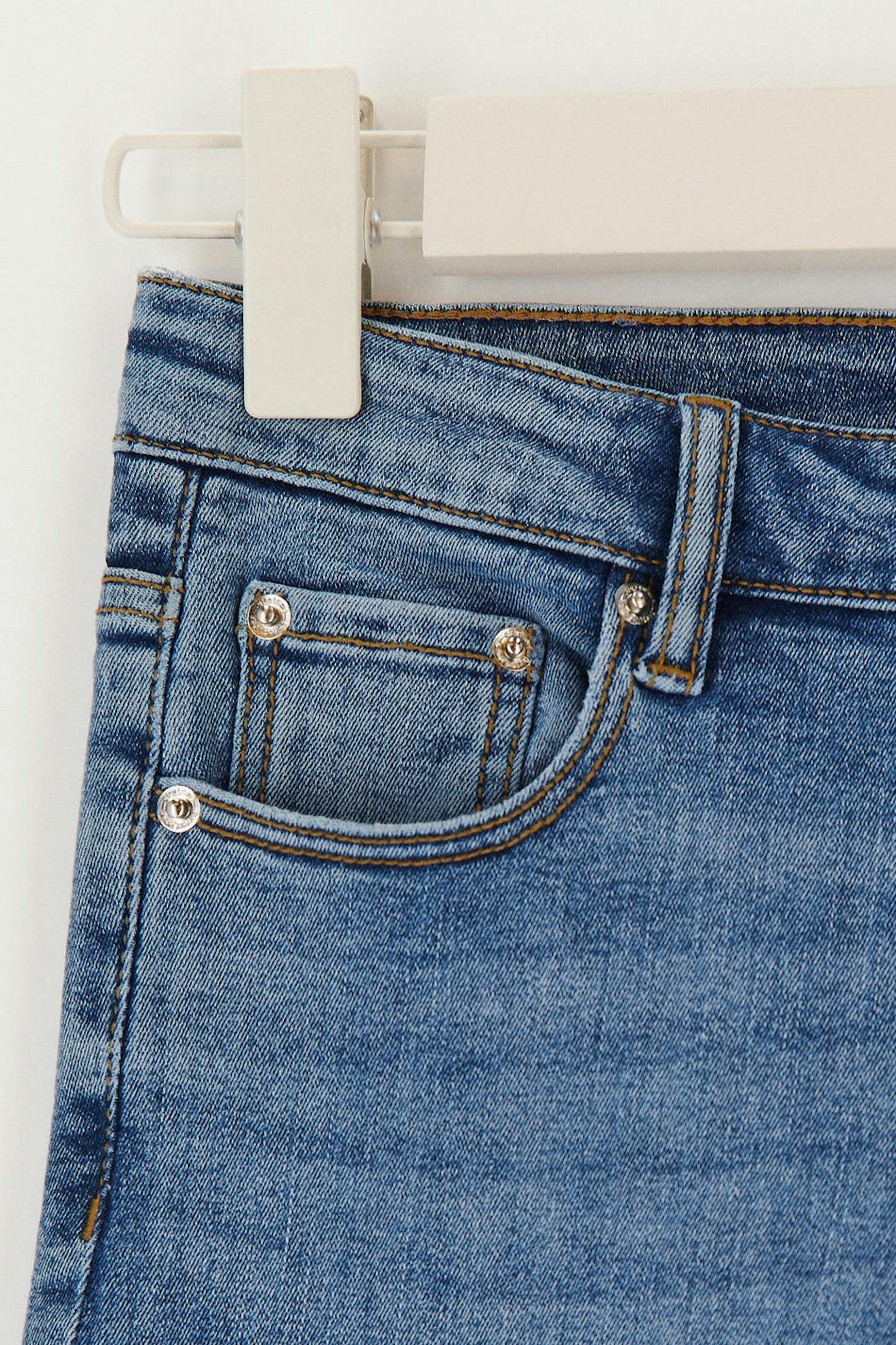 Boot cut jeans fra Gina Tricot Young med lav midje. Jeansene er blå og har utsvingte ben med full lengde. De har frontlommer, Y2K-inspirerte baklommer og justerbar gummistrikk ved midjen.