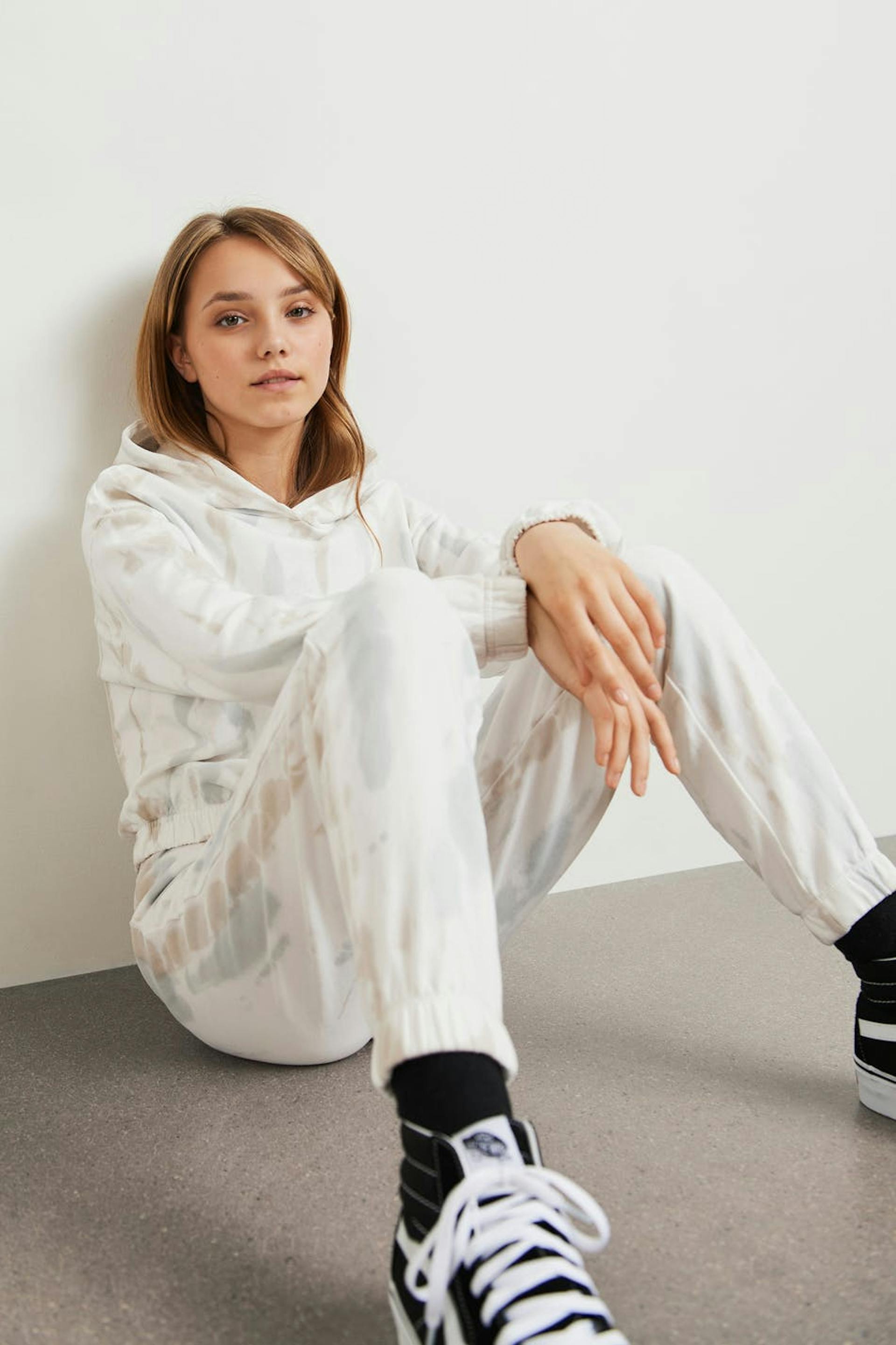 Tie dyee treningsbukser fra Young-sortimentet vårt med en vanlig passform. Buksene har en gummistrikk ved midjen og i enden av benet.