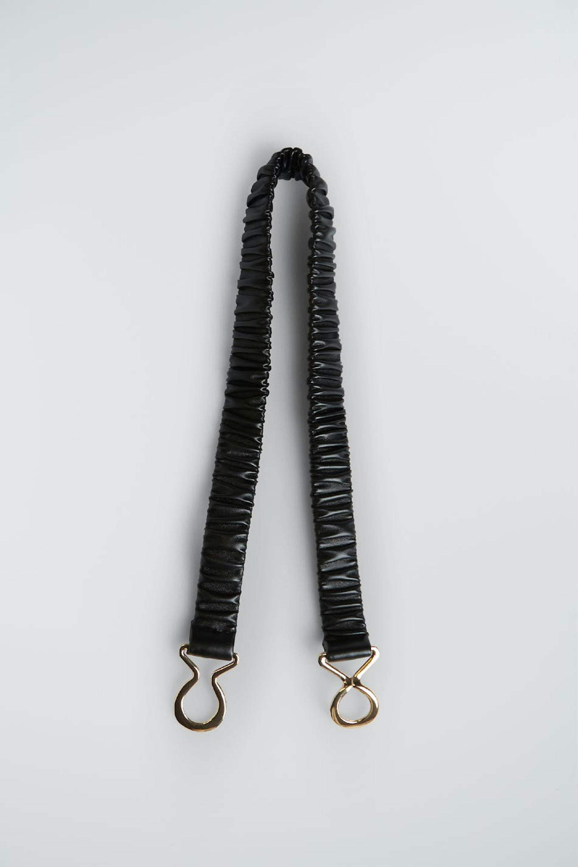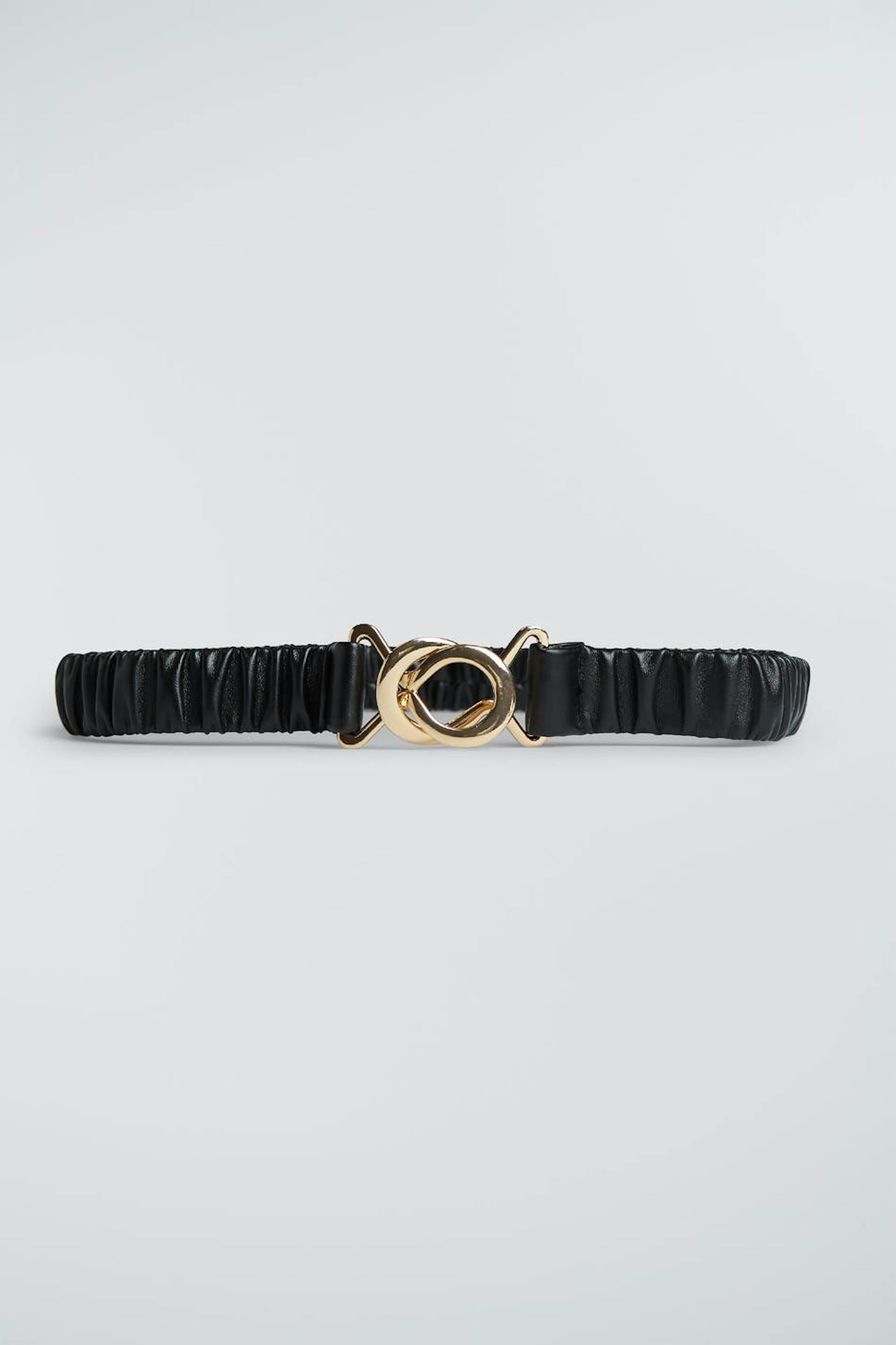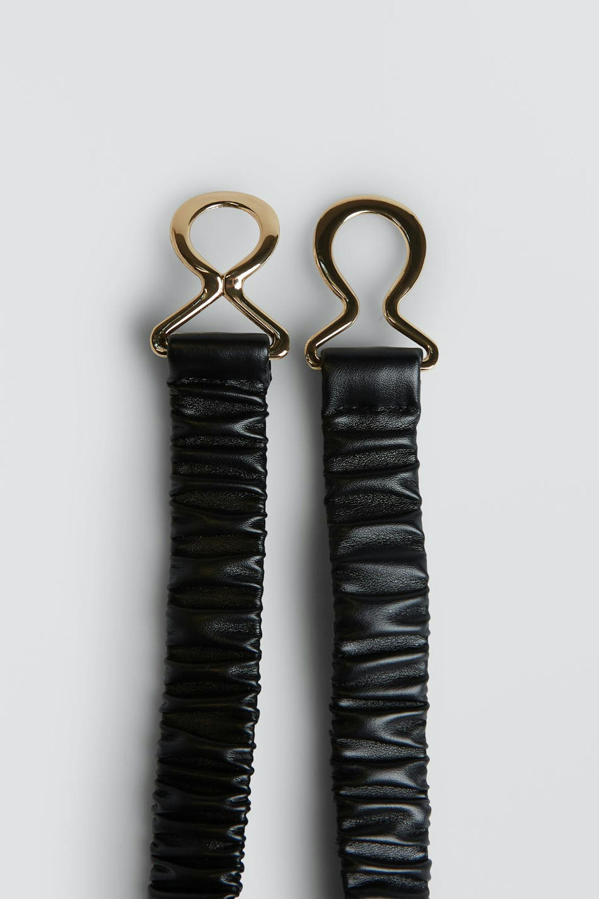 Midjebälte med en rynkad effekt. Skärpet är svart. Det är gjort av PU.
