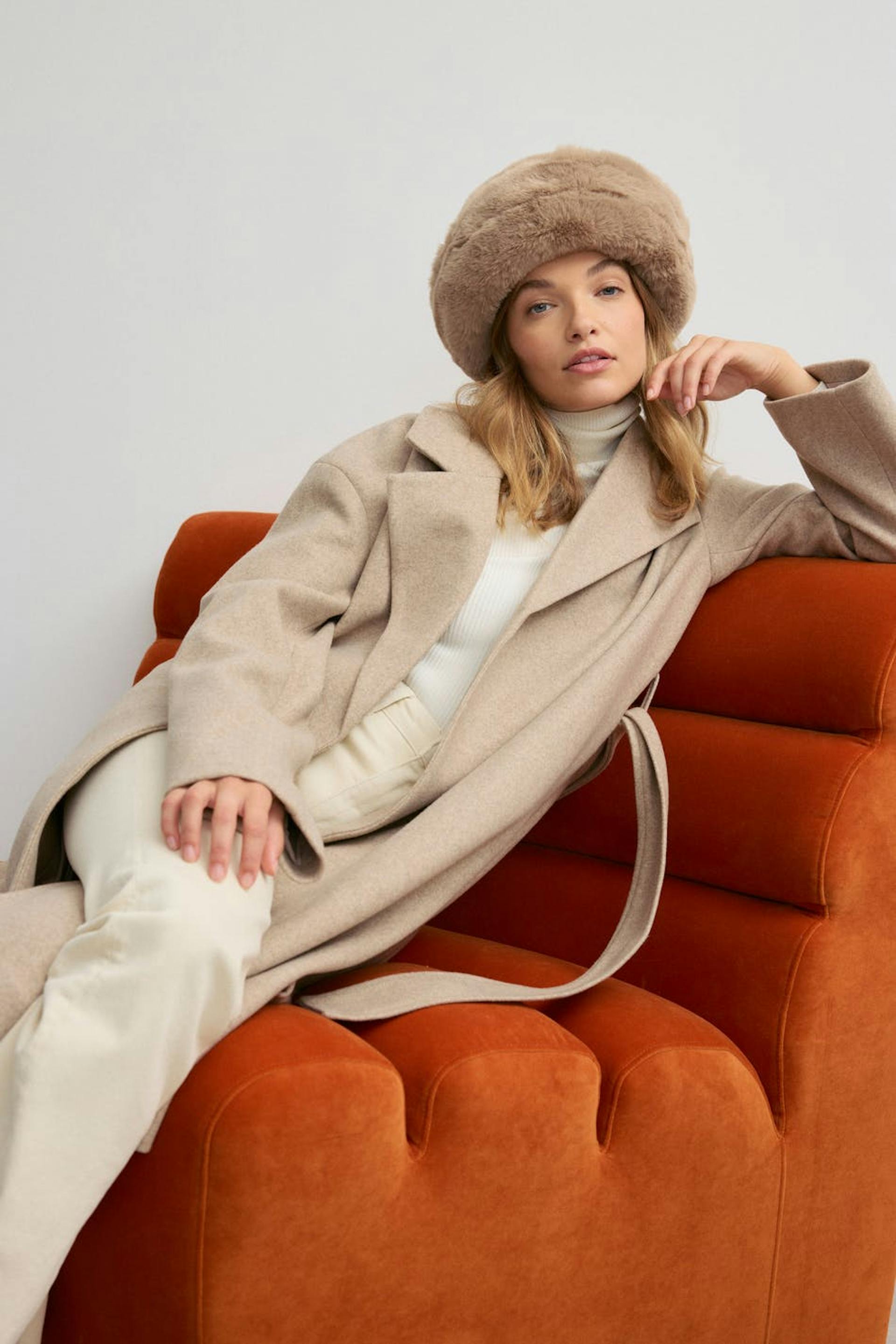 Mössa i fuskpäls.