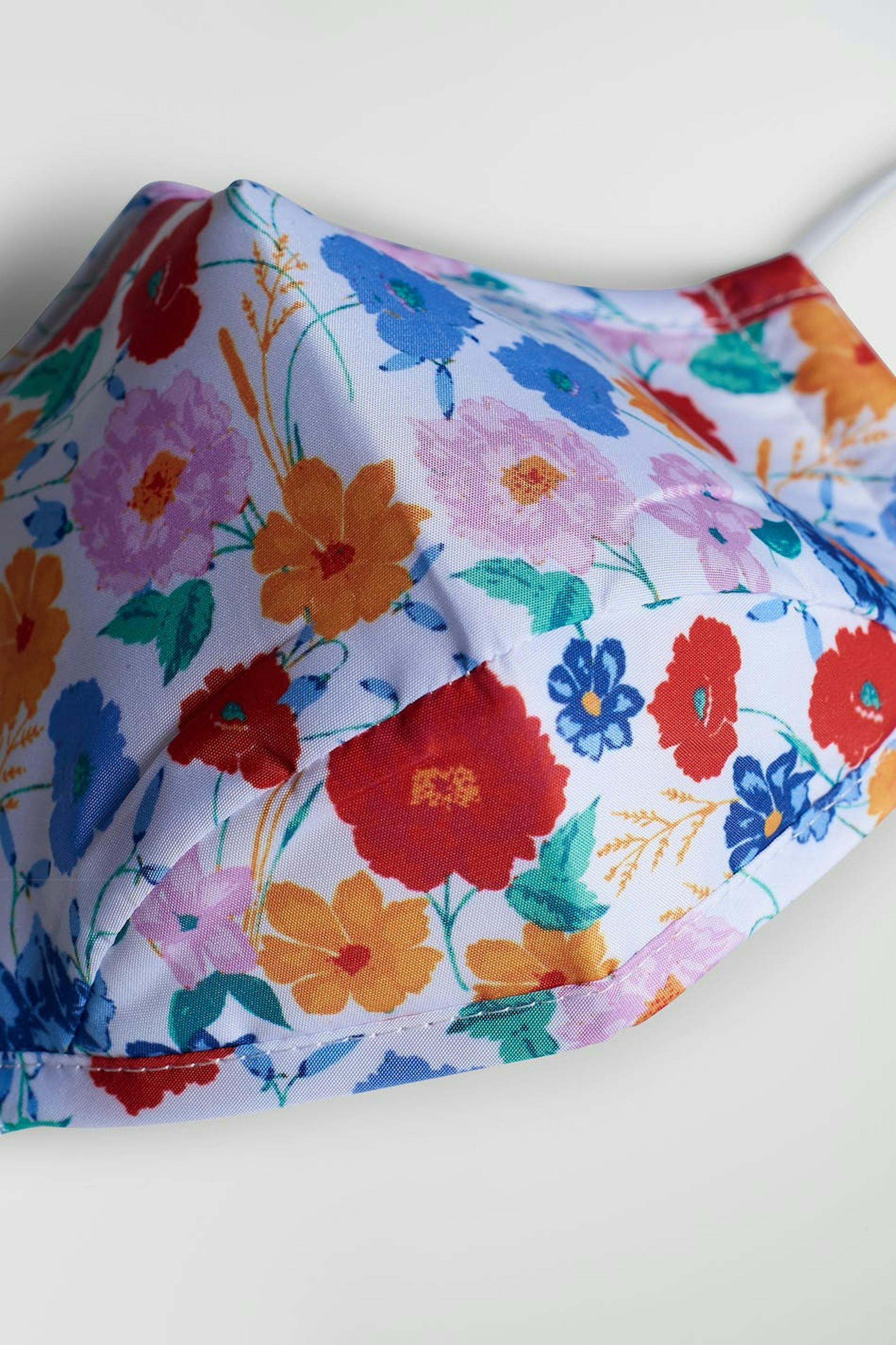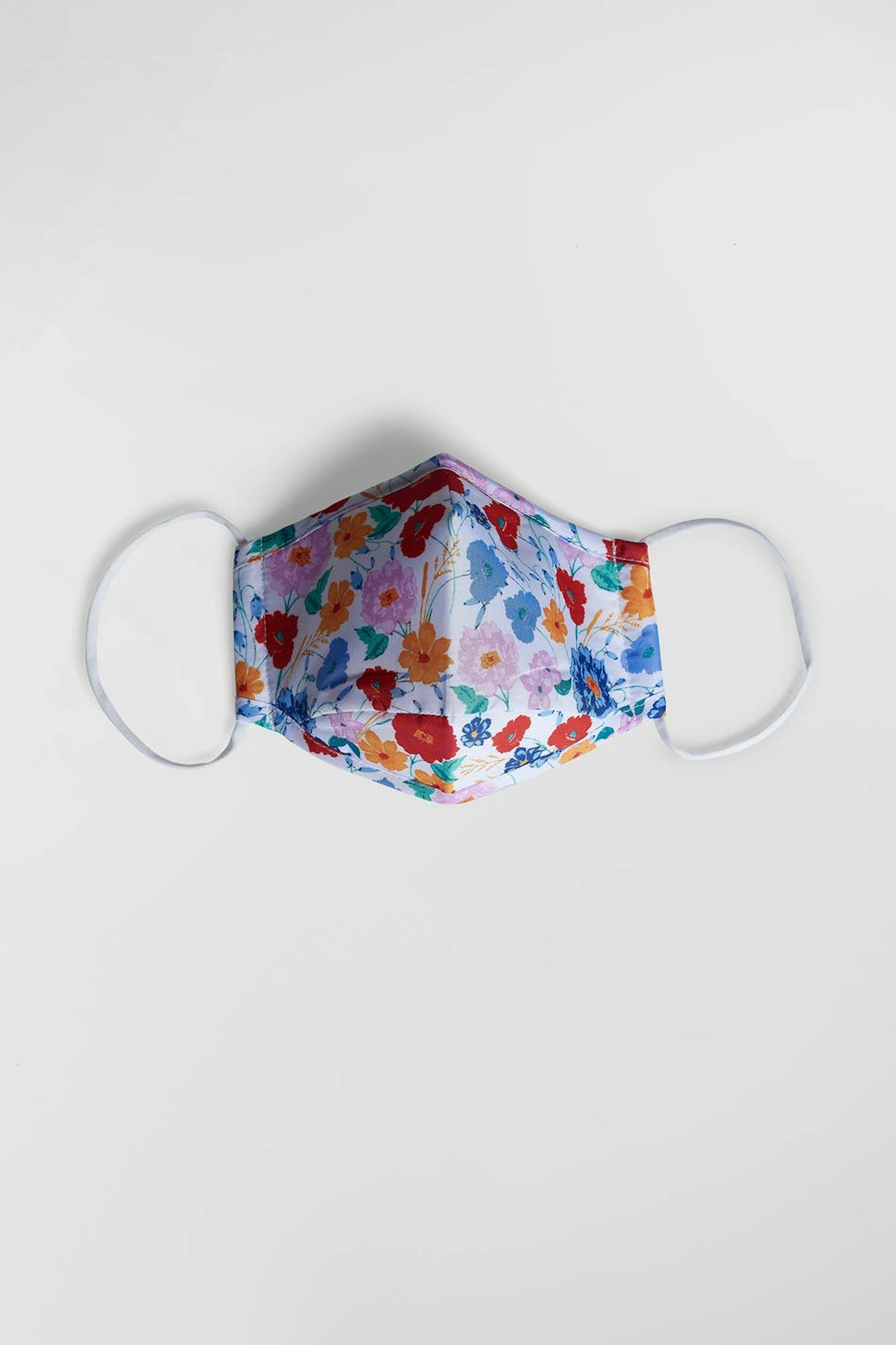 Blommigt munskydd för personligt bruk med resårband på sidorna. Rött, blått, rosa och oranget. VARNING! Detta är en icke-medicinsk produkt och skyddar inte mot infektion av bakteriell eller annan härkomst. Viktigt att övriga rekommendationer kring minskad smittspridning följs. För personligt bruk enbart. Produkten går att tvätta och använda flertalet gånger. Denna vara ingår inte i vår returpolicy. När förseglingen på förpackningen har brutits anses produkten vara använd och kan inte återlämnas, detta av hygienskäl.