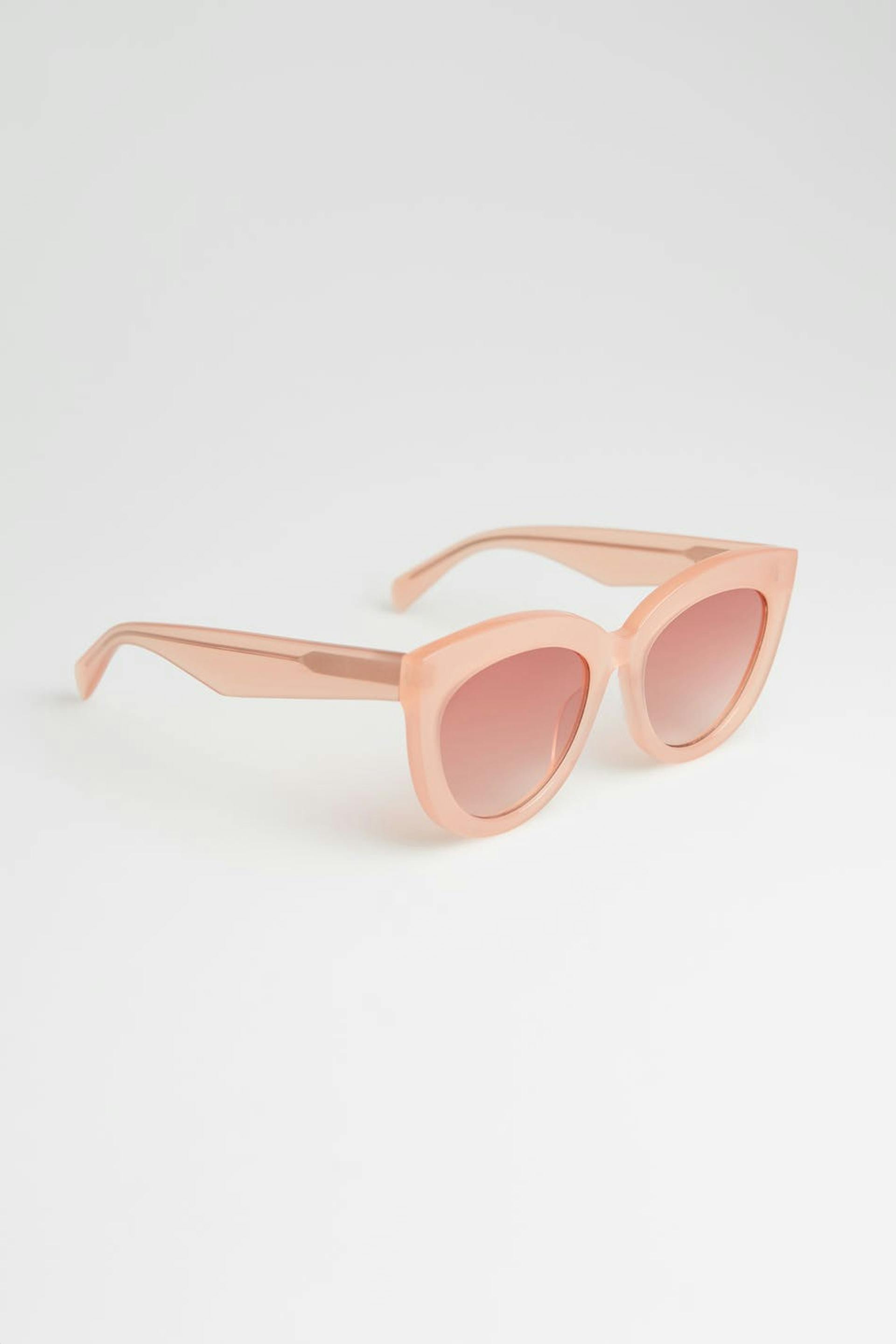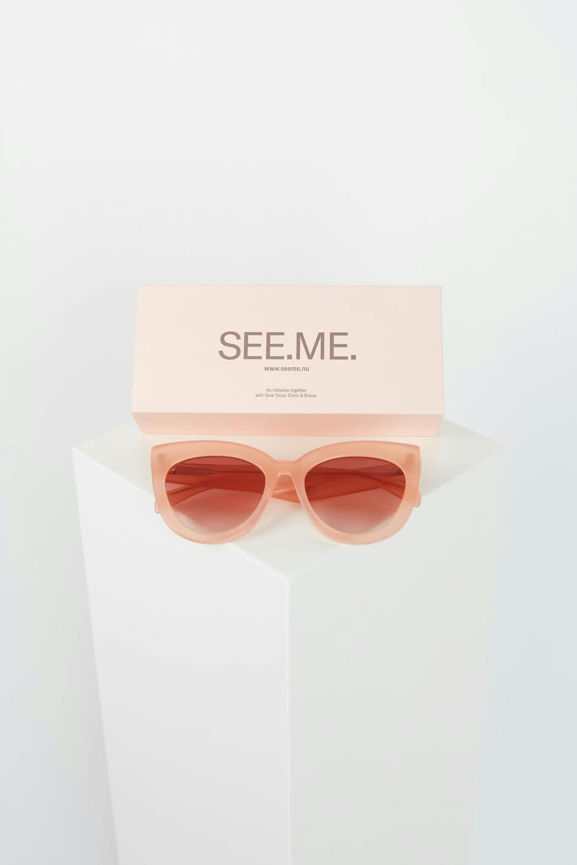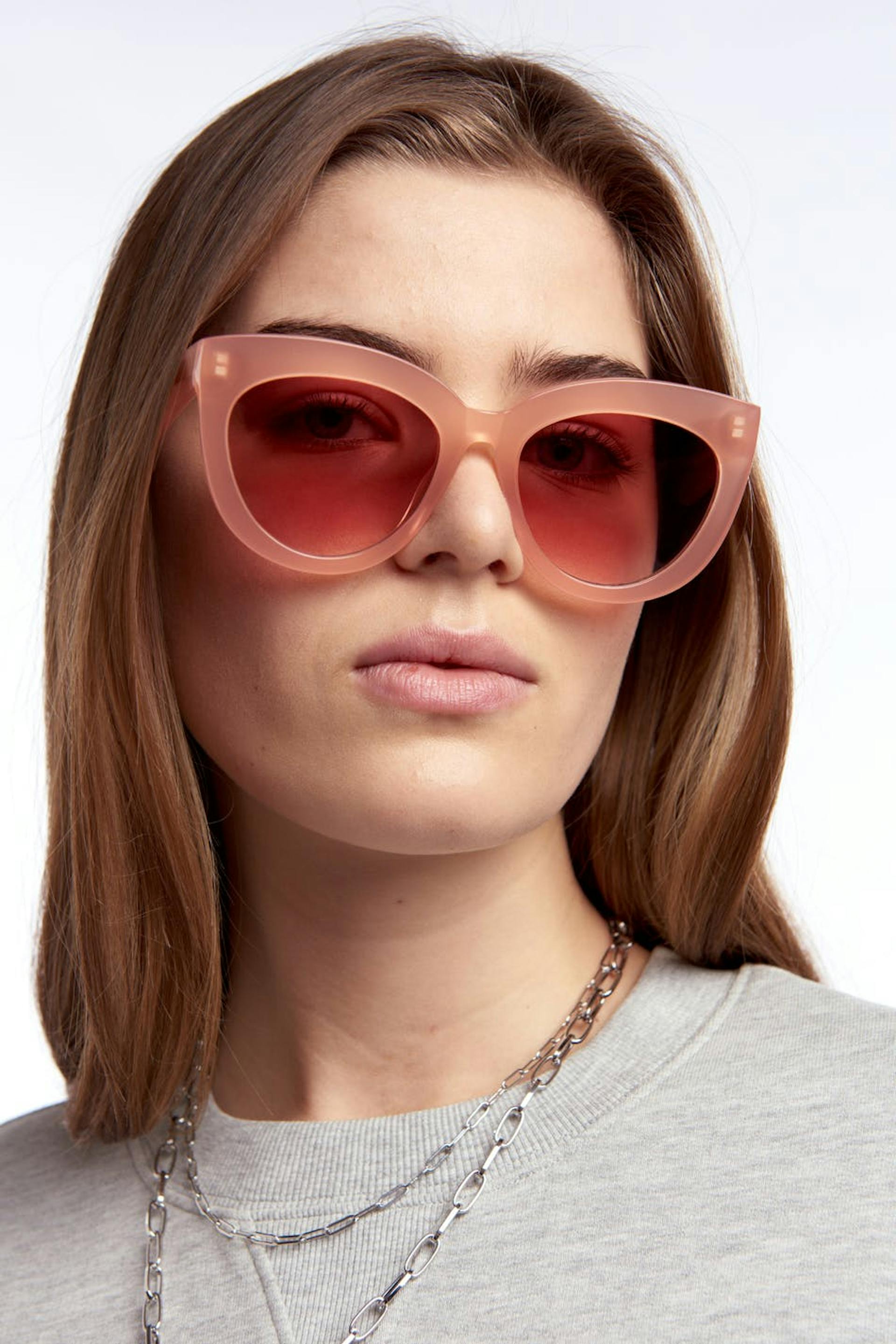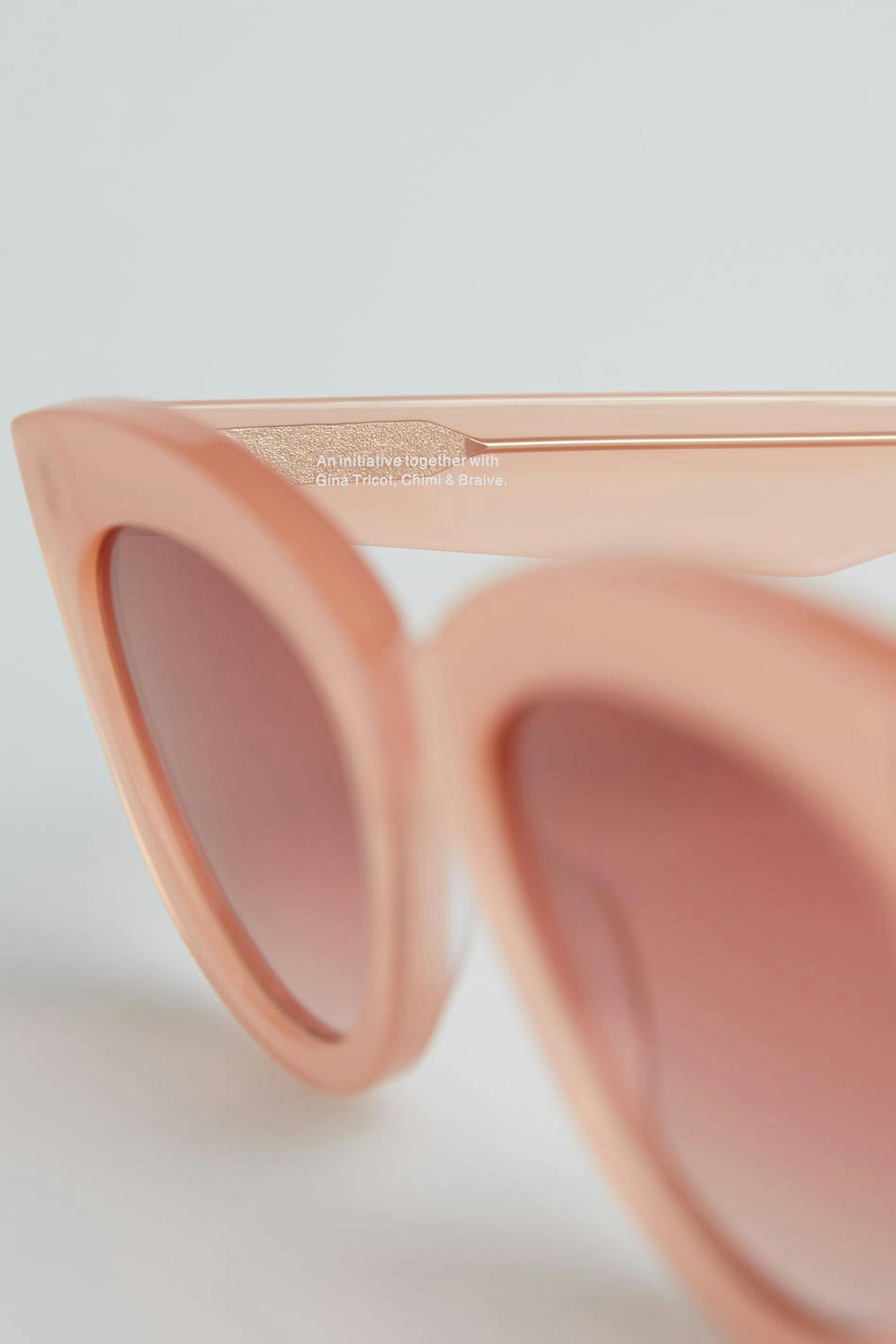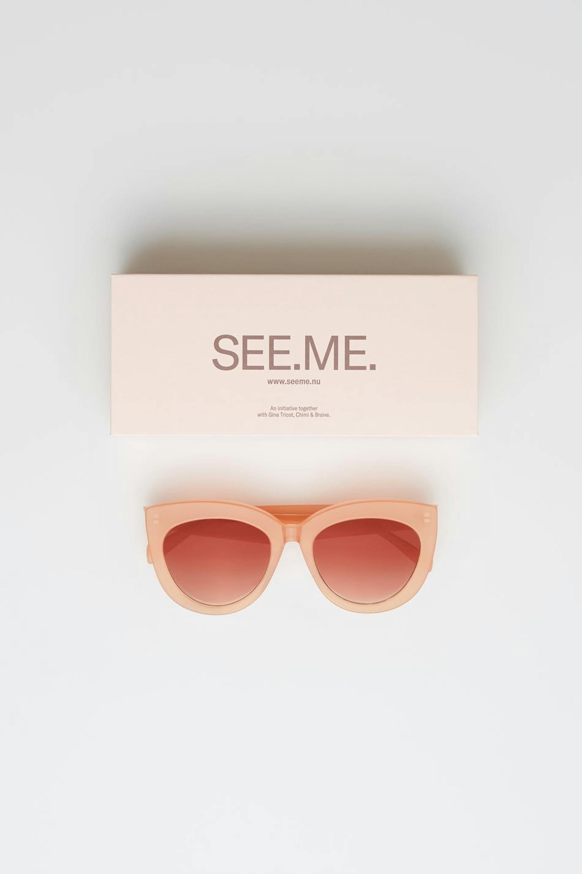 Chimi X Gina tricot. Solglasögon i samarbete med Chimi & Braive. Solglasögon. Solglasögonen är rosa.