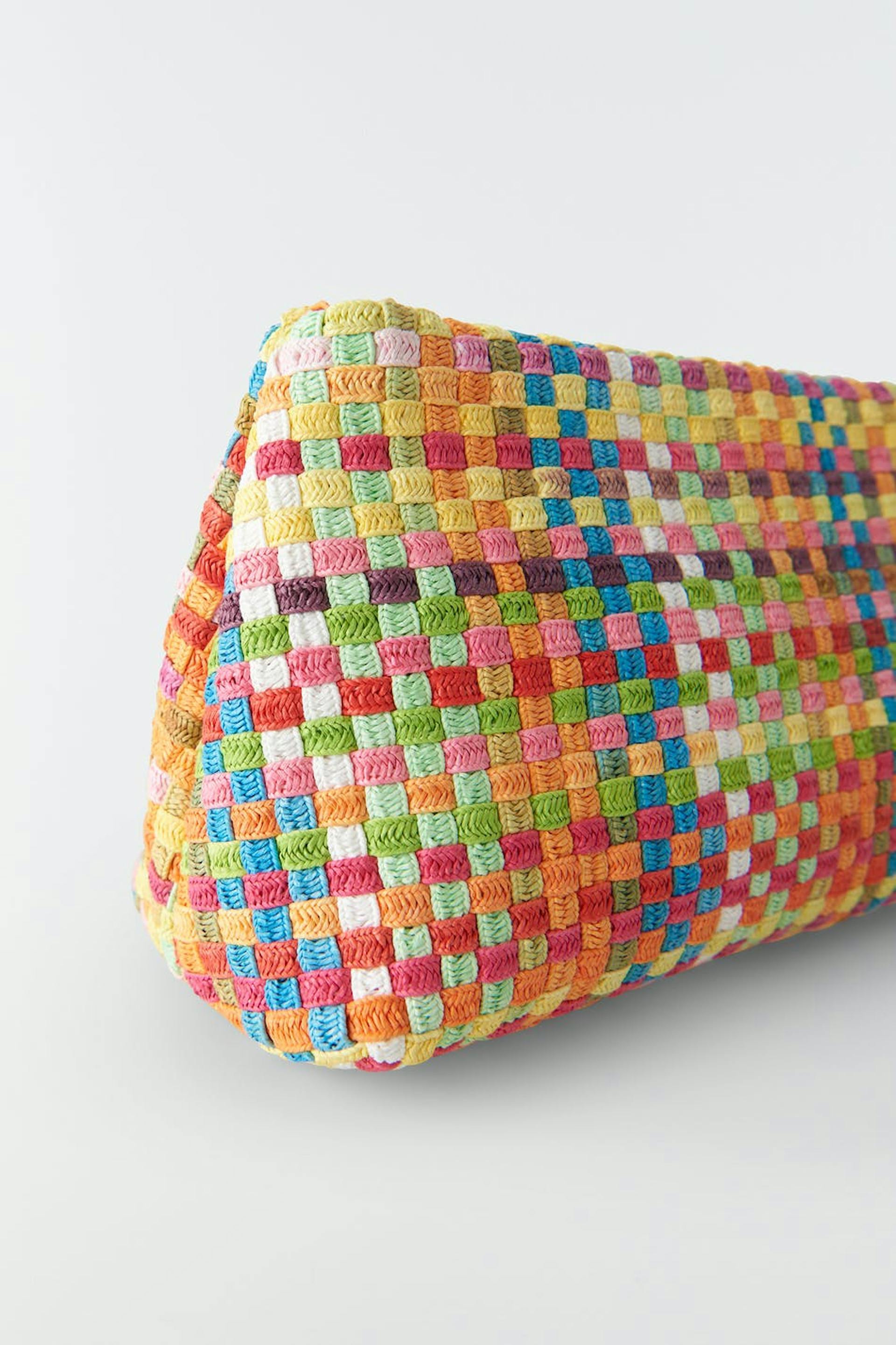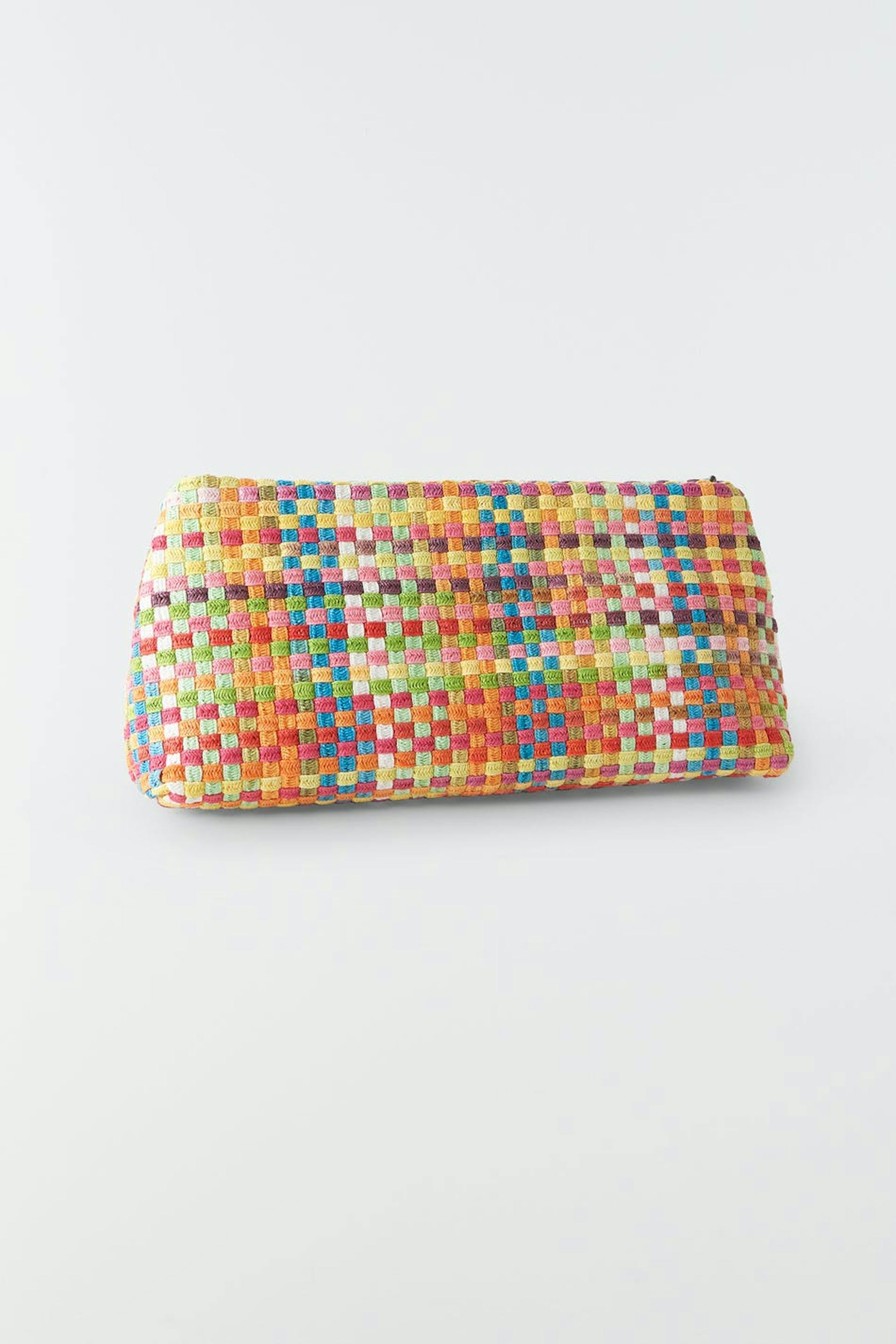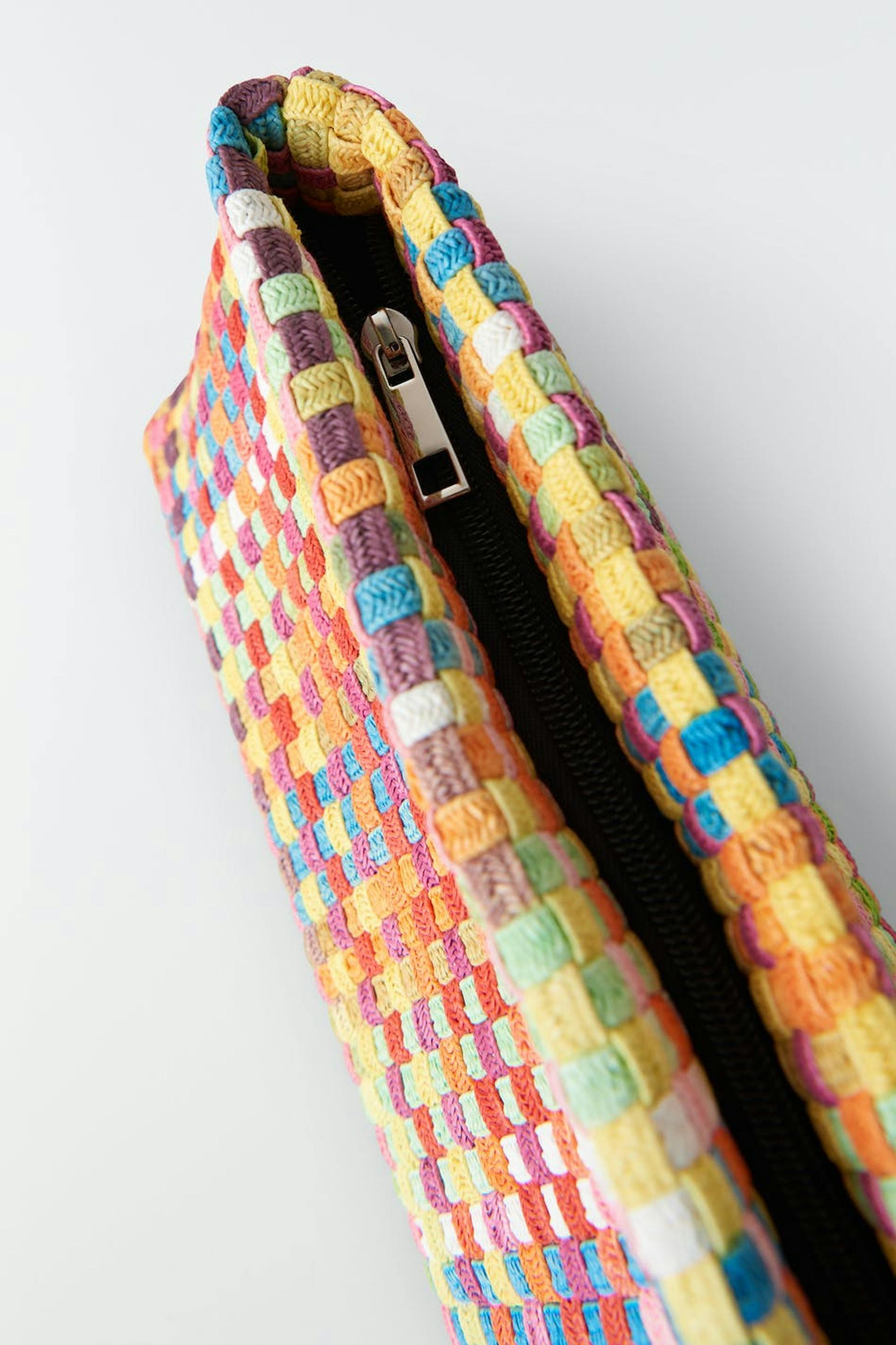 Färgglad väska med en dragkedja. Väskan är rutig.