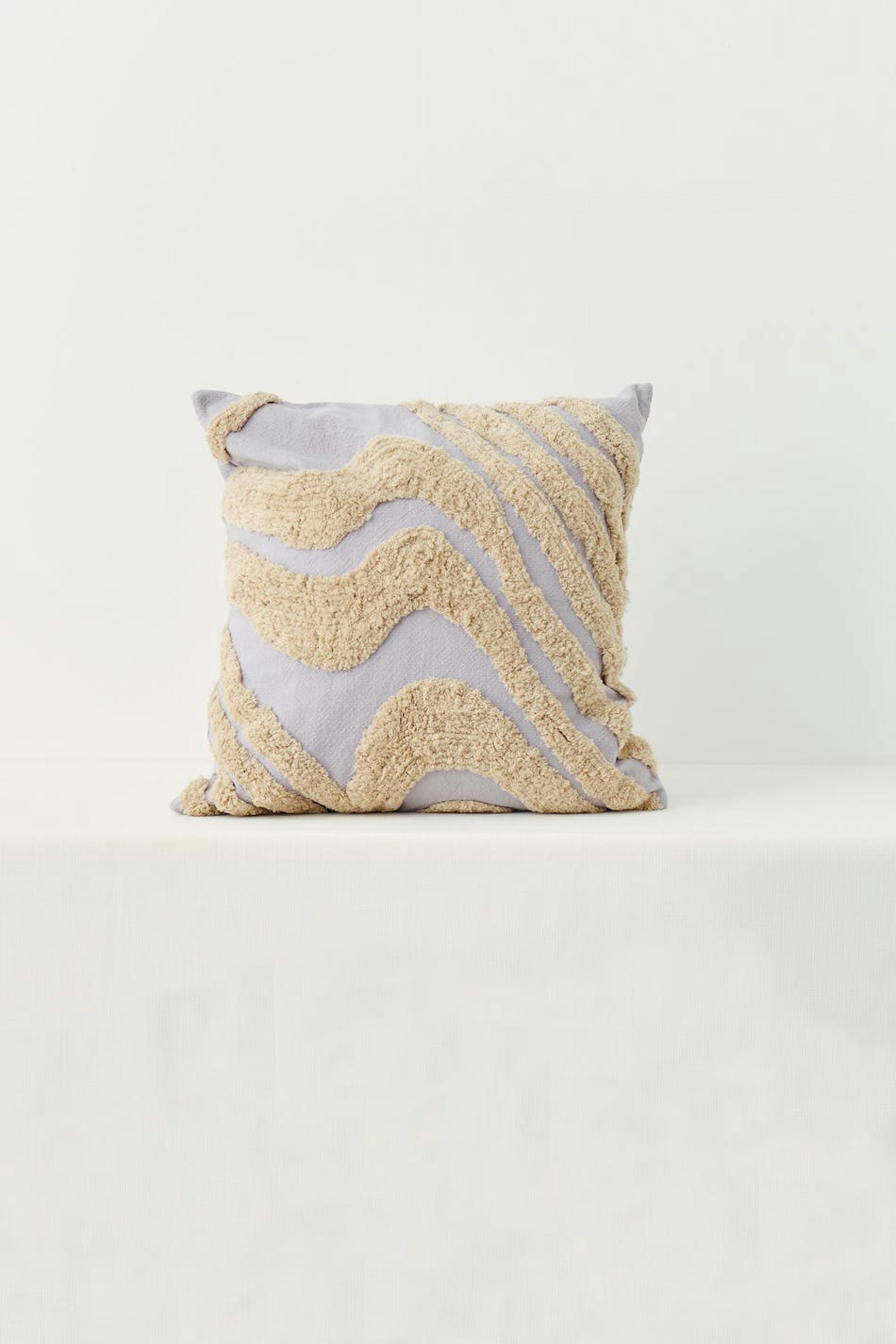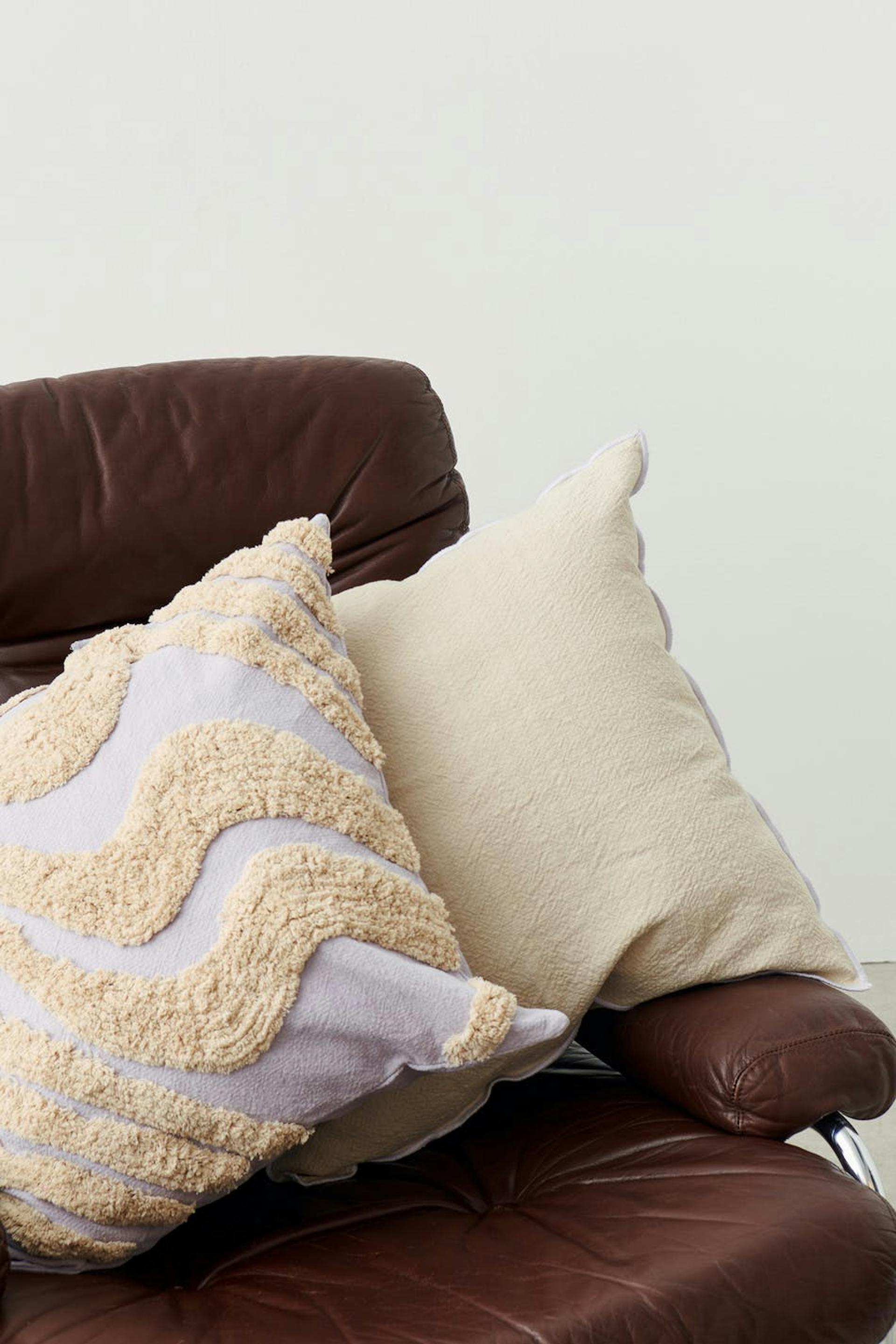 Kuddfodral från Gina Home med tuftat motiv. Fodralet är lila och beige och har ett mjukt material i bomull. Det har en dold dragkedja baktill.