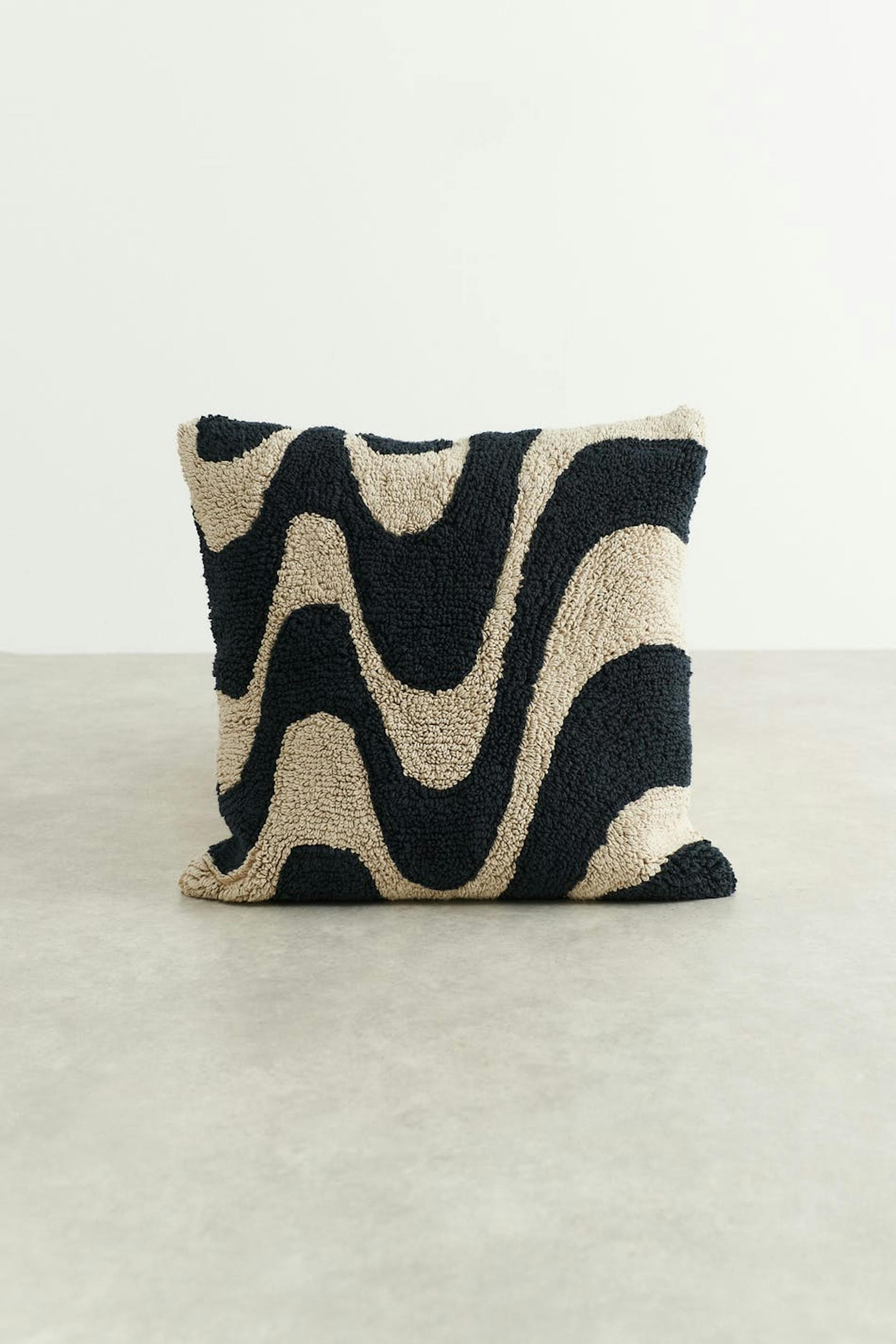 Tuftat kuddfodral från Gina Home med ett strukturerat material i bomull. Fodralet är svart och har en dold dragkedja på baksidan.
