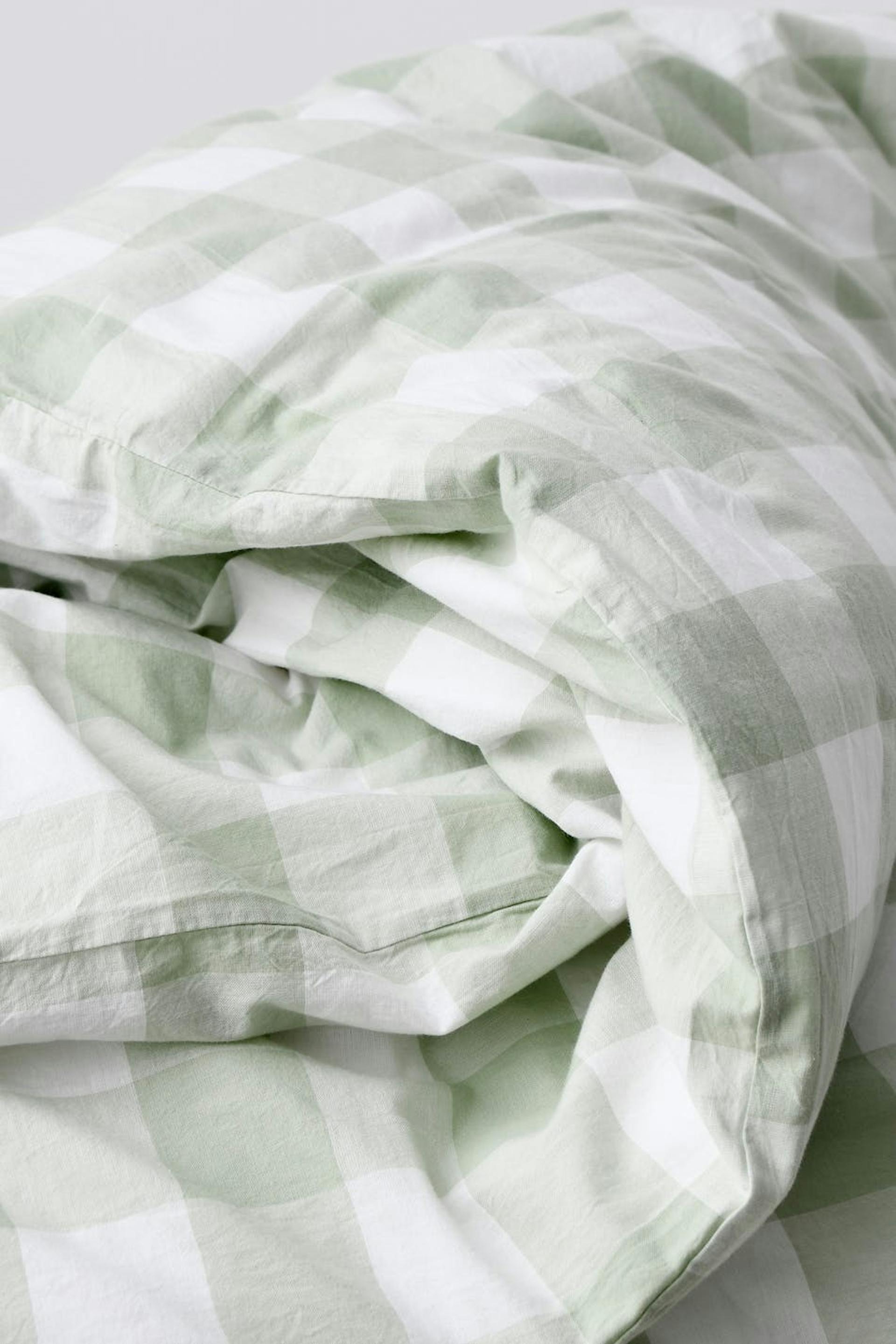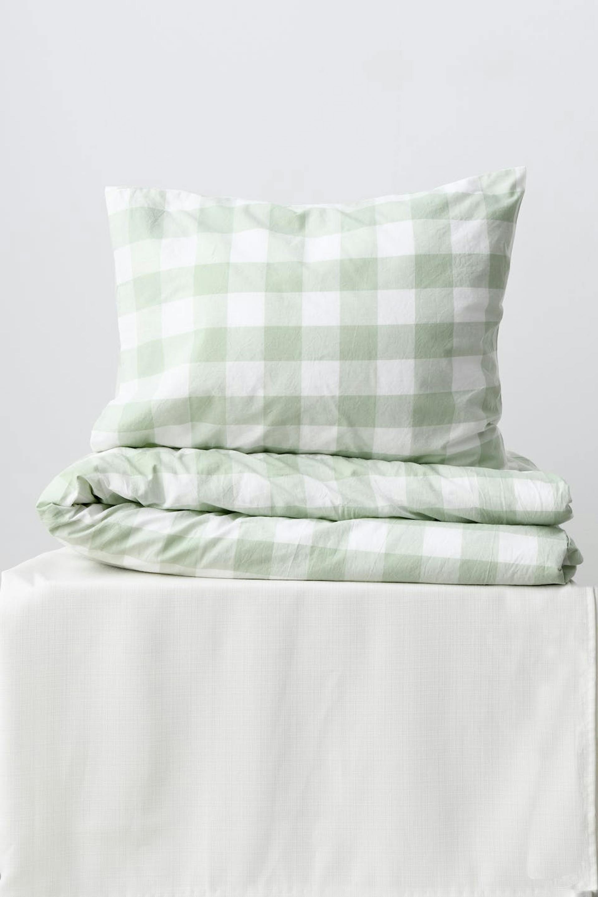 Dubbelt påslakanset från Gina Home med ett mjukt material i bomull. Påslakansetet är grönt och har ett stort påslakan med två matchande örngott.