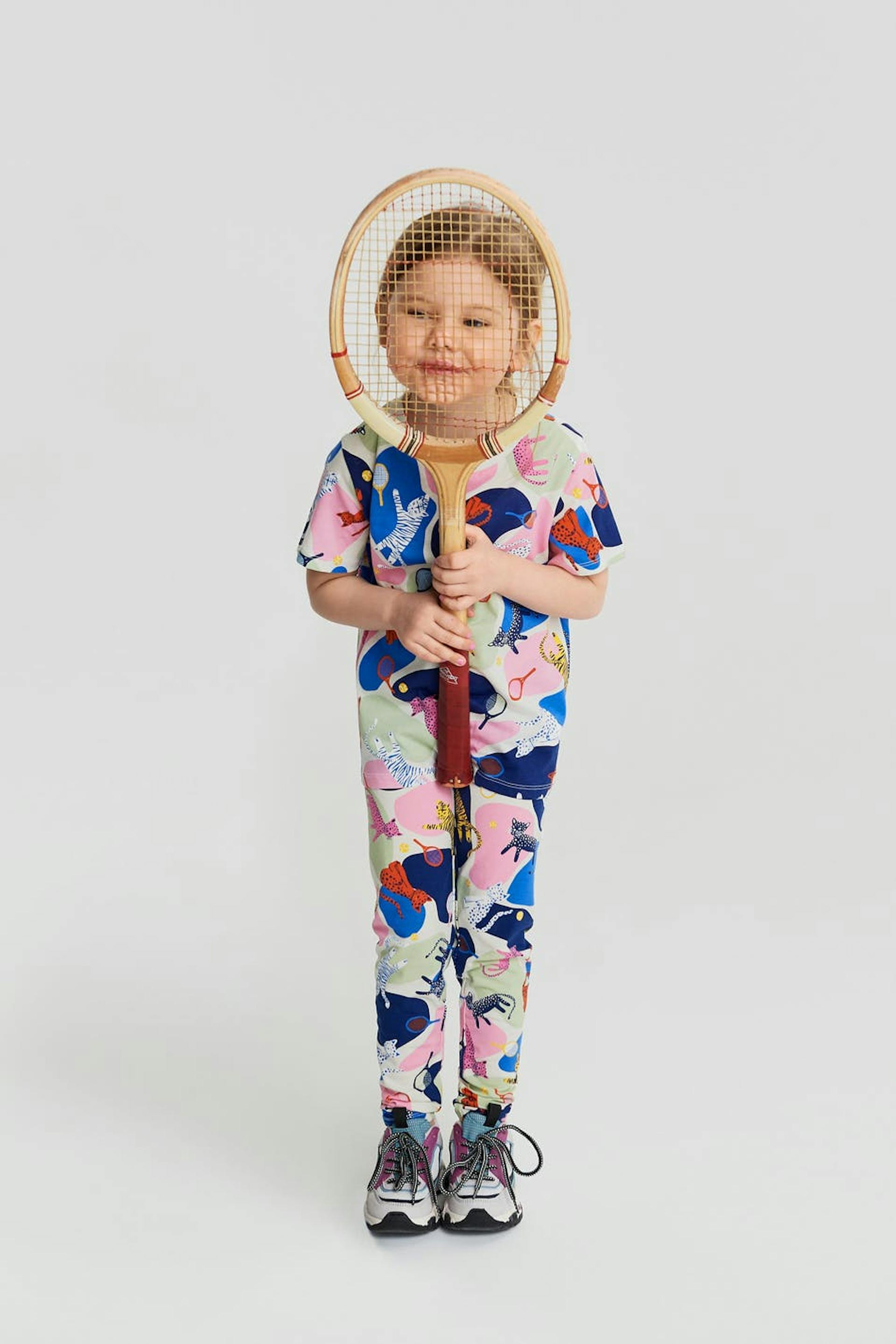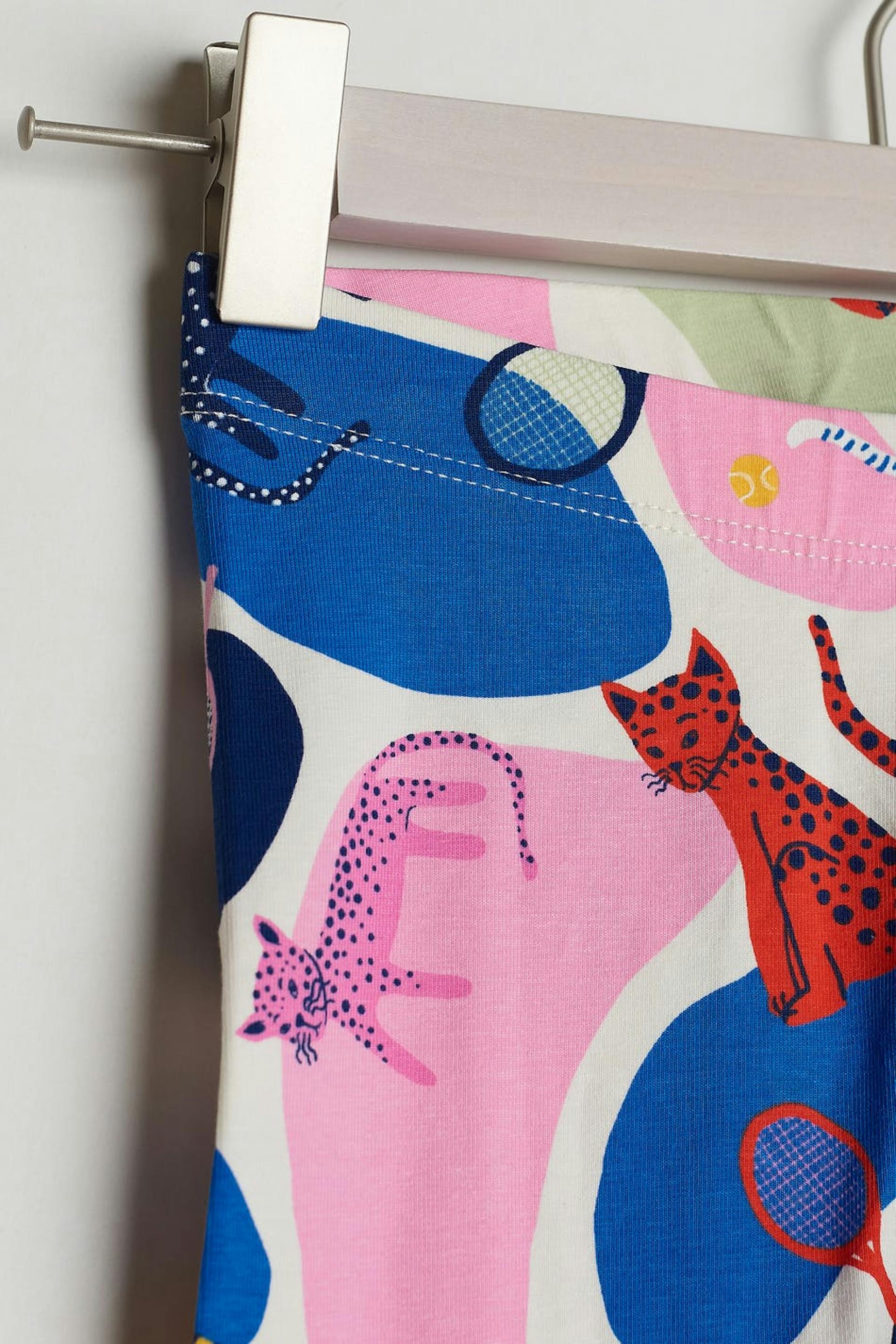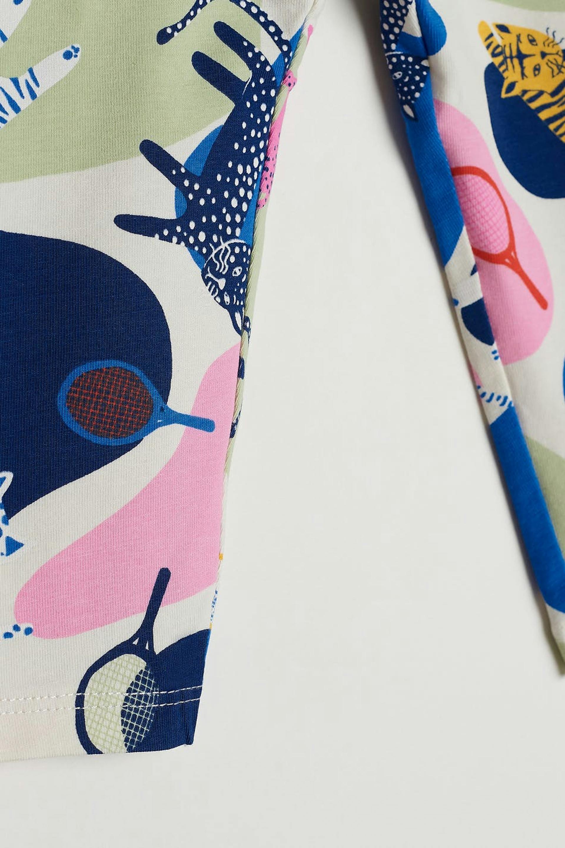 Unisex leggings för bebisar med ett blått, grönt, rosa mönster.