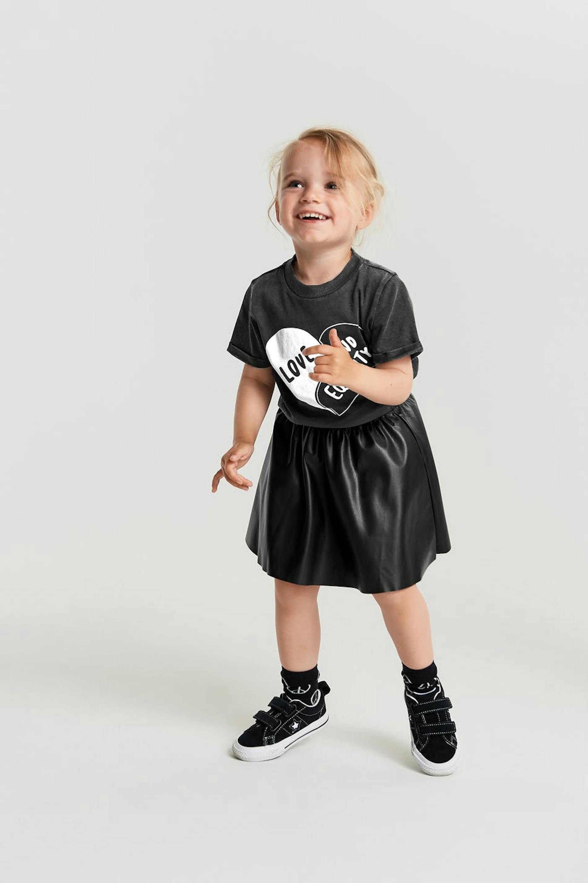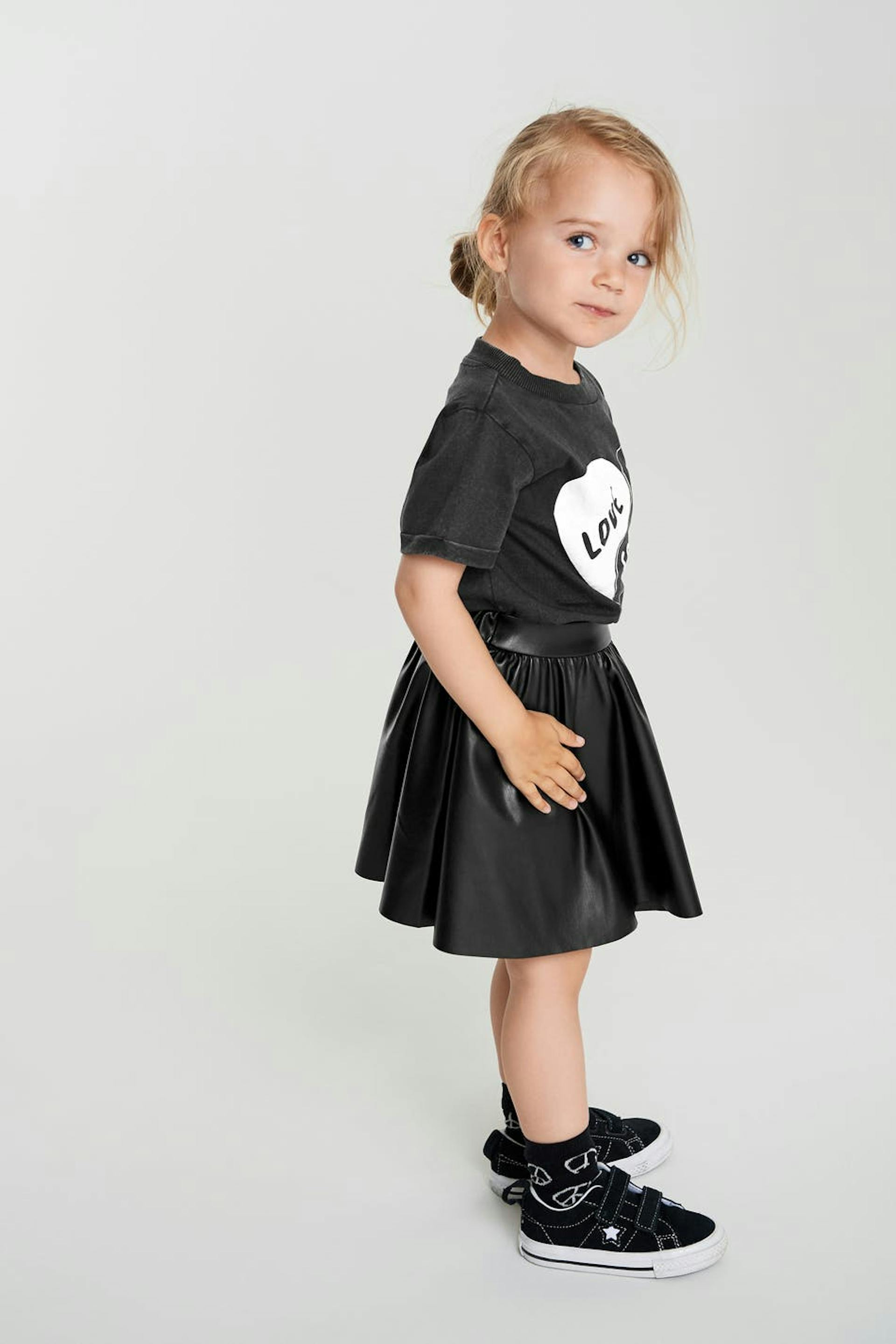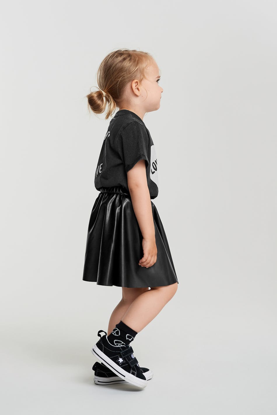 Kjol för barn. Kjolen är svart. Den är gjord av PU.