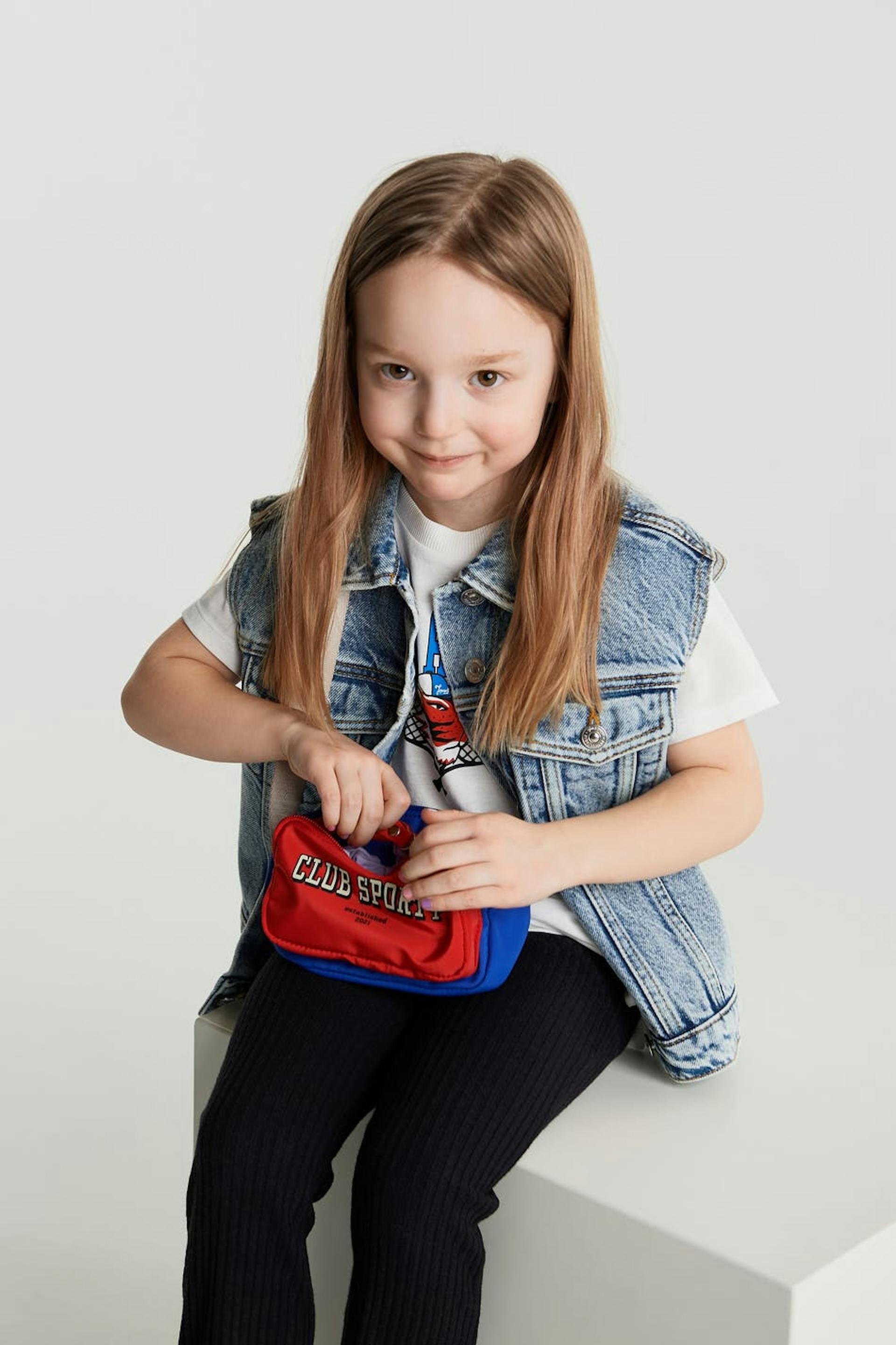 Ärmlös väst för barn med oversize fit. Västen är blå och unisex. Den är gjord av denim.