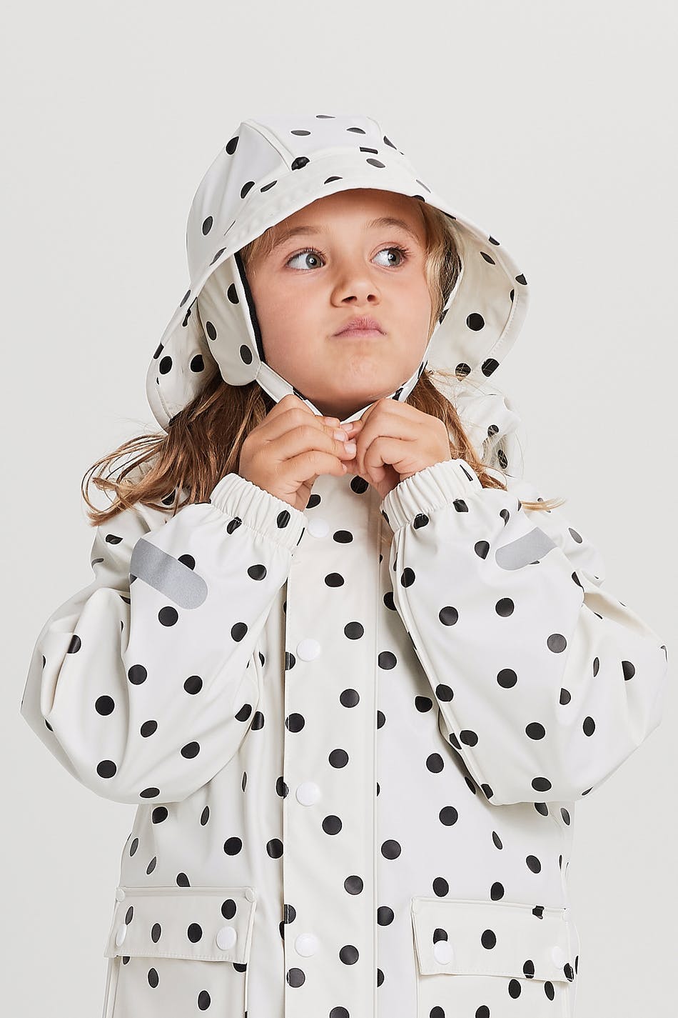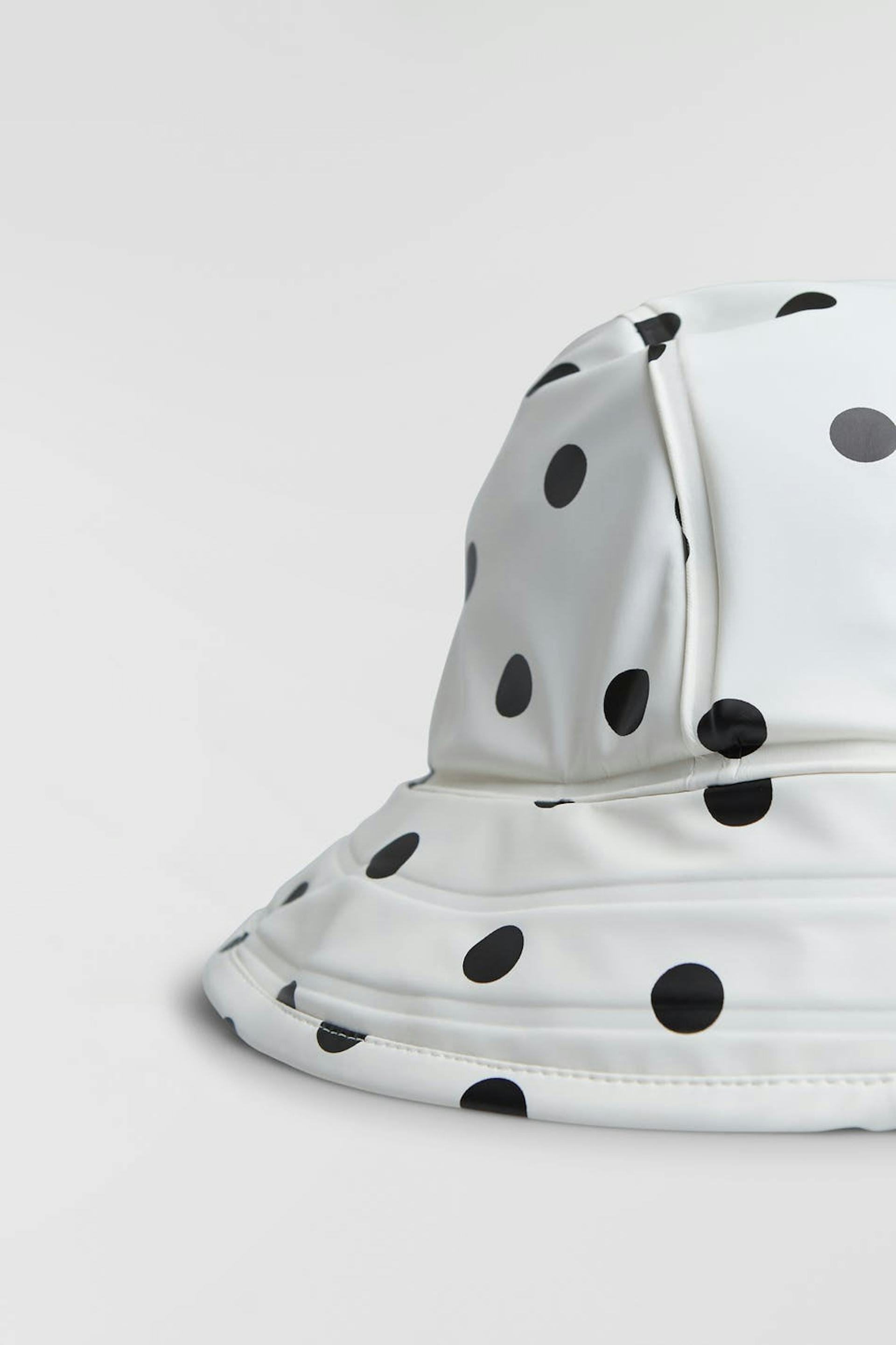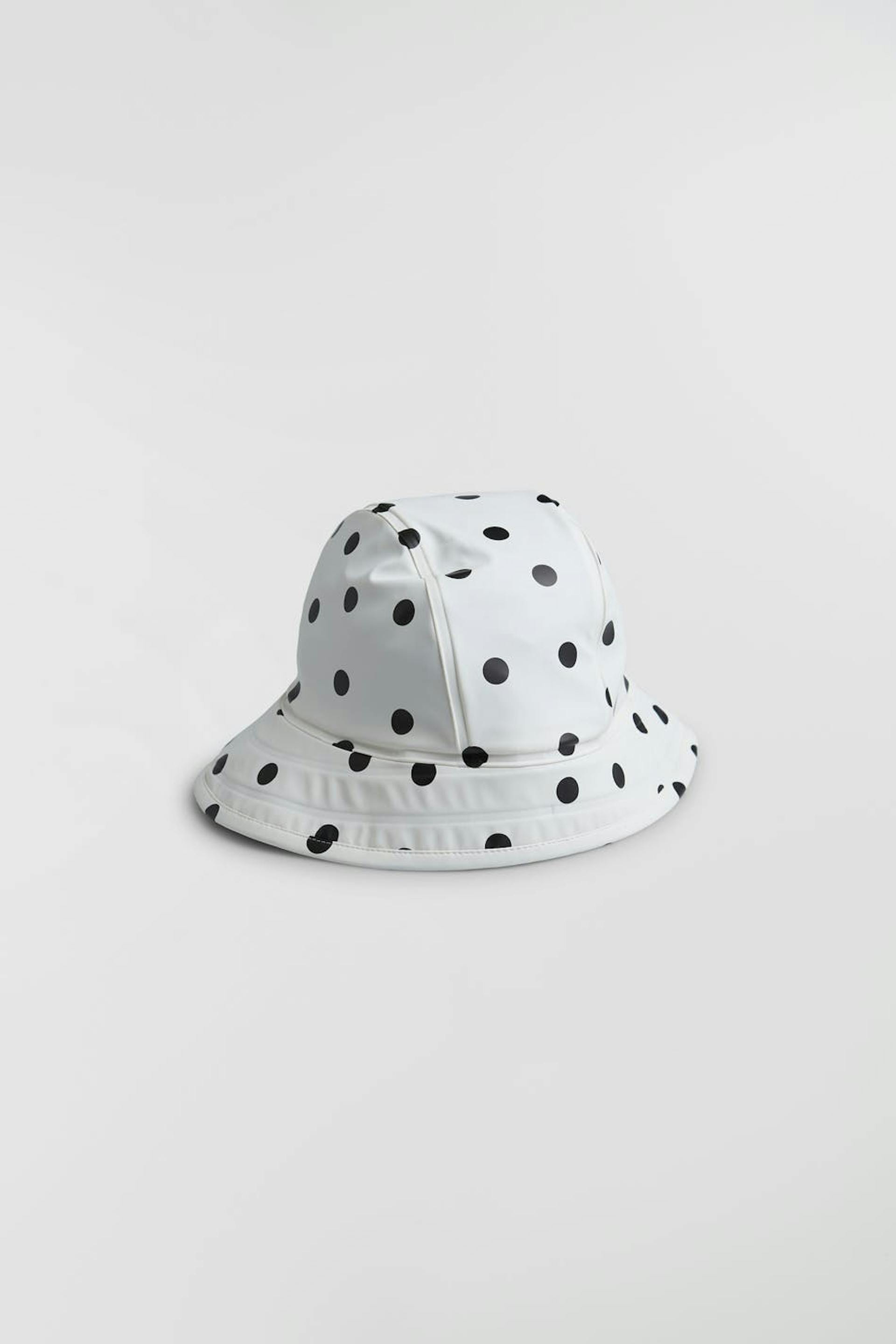 Tretorn X Gina tricot. Hatt i samarbete med Tretorn. Prickig hatt med svetsade sömmar. Vit, vattenavvisande och vindtät och fri från pfc och pvc. Den har ett bekvämt, mjukt foder i fleece och en justerbar knappstängning vid halsen. Vattenpelare: 5000 mm.
