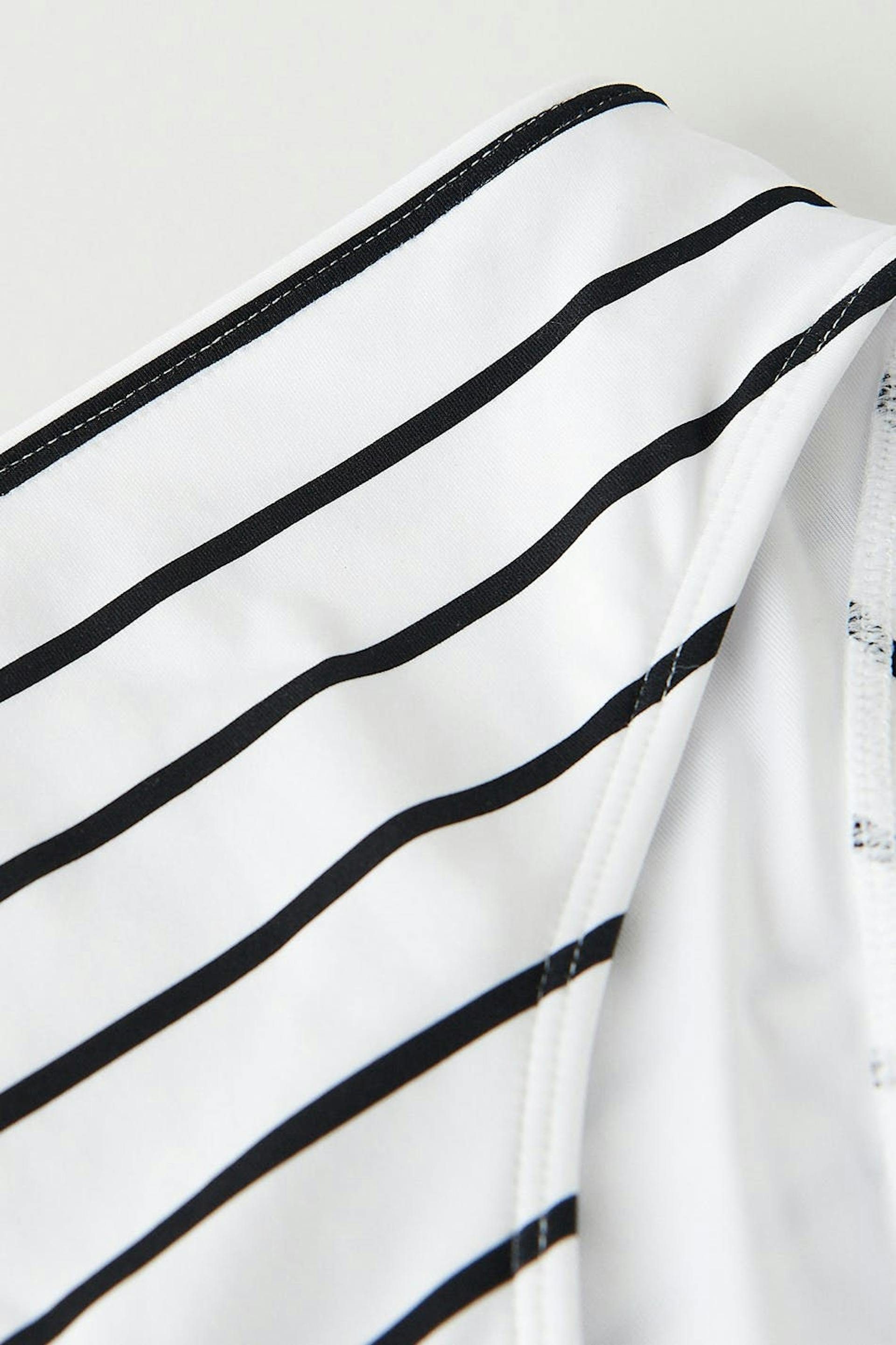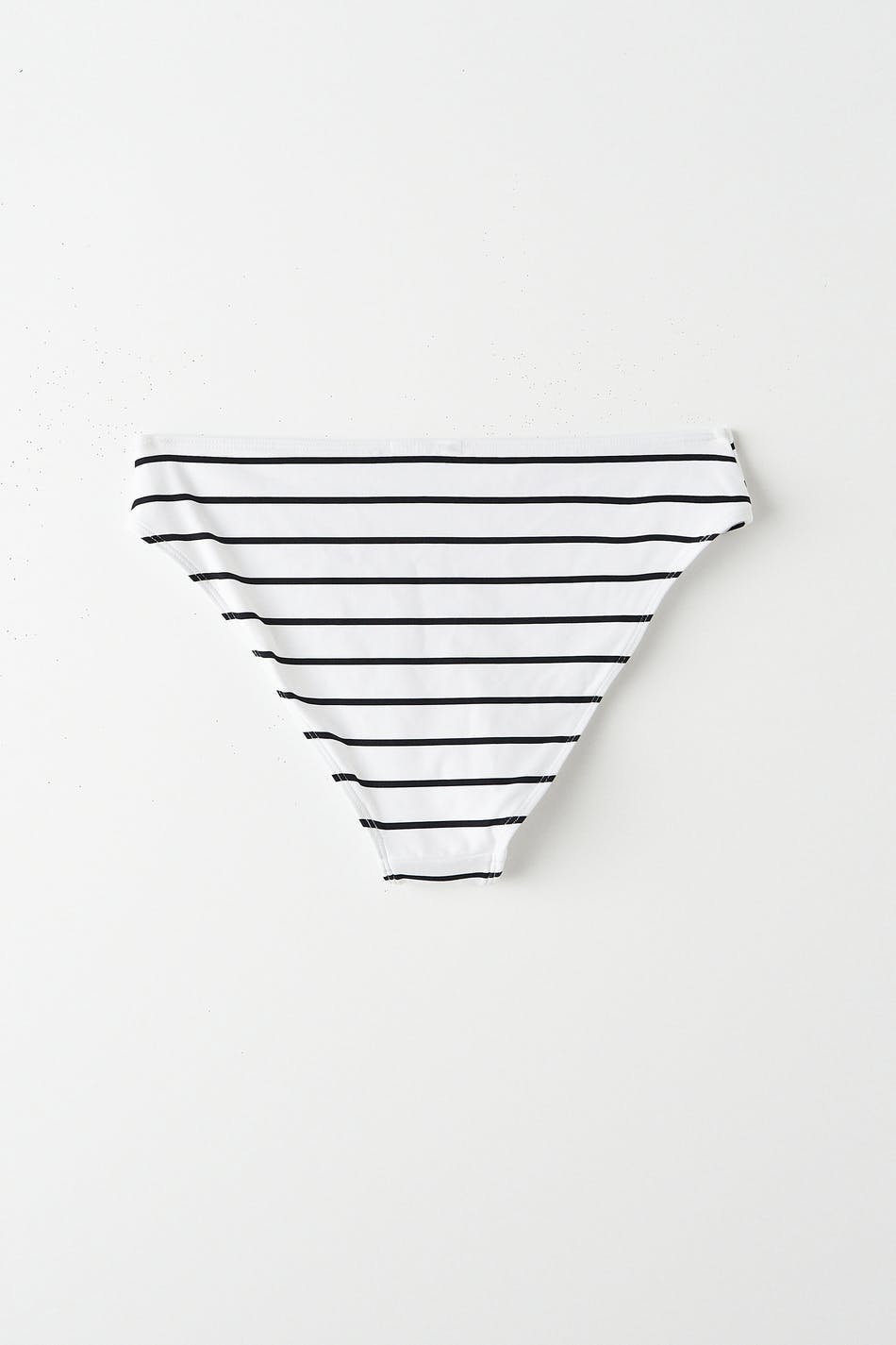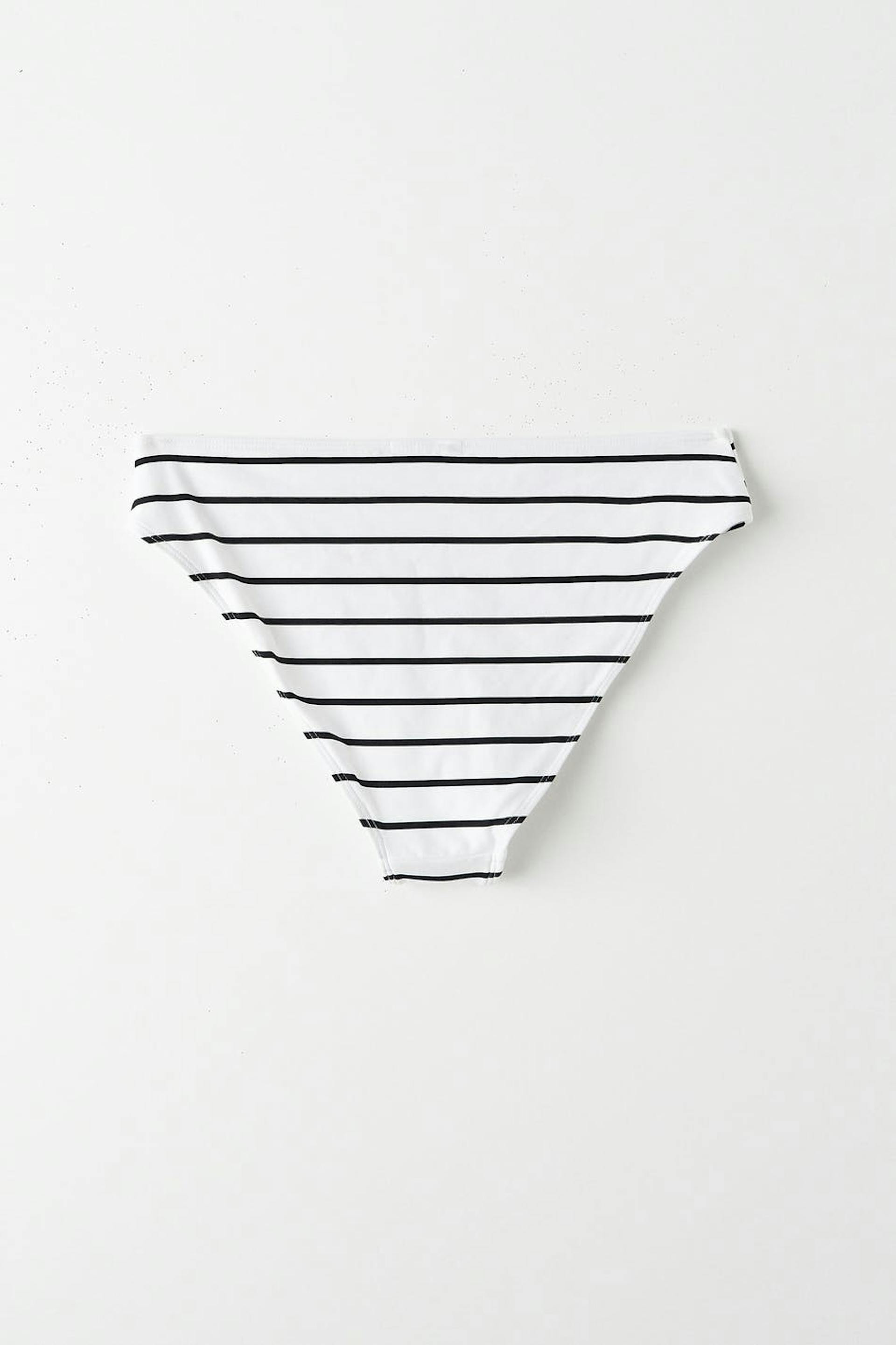 Randiga bikinitrosor med mjuk resår i midjan och vid benöppningarna. Trosorna är vita, svarta och helfodrade.