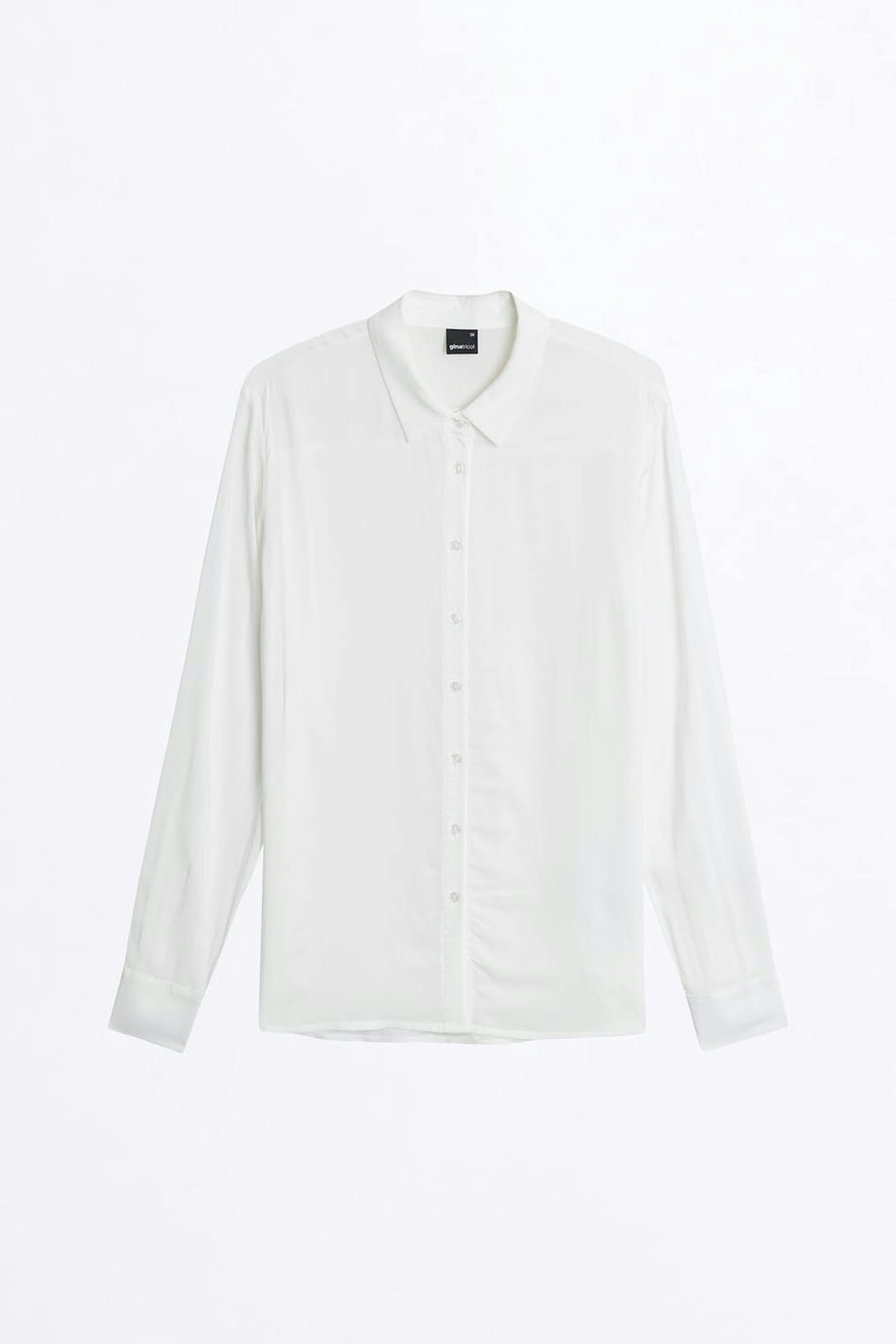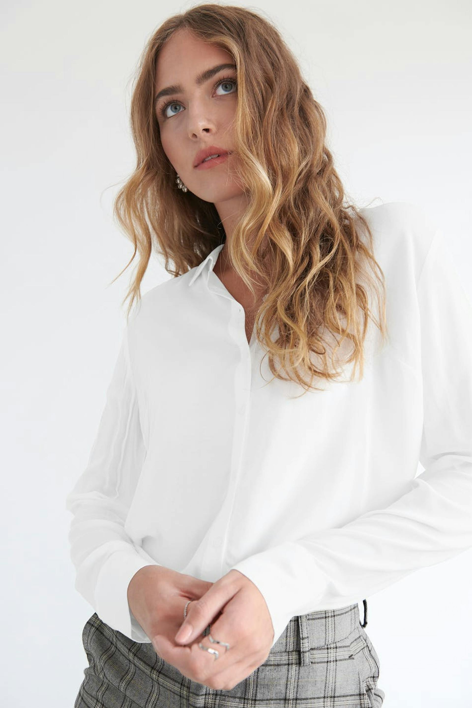 Mjuk skjorta med en normal passform. Skjortan är benvit, något längre baktill och långärmad.