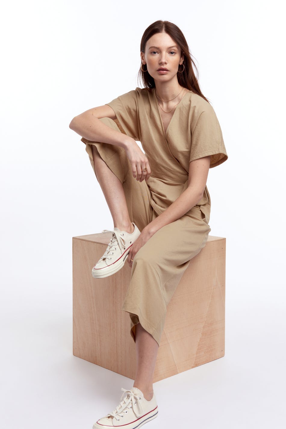 Modellen är 172 cm lång och bär storlek S.